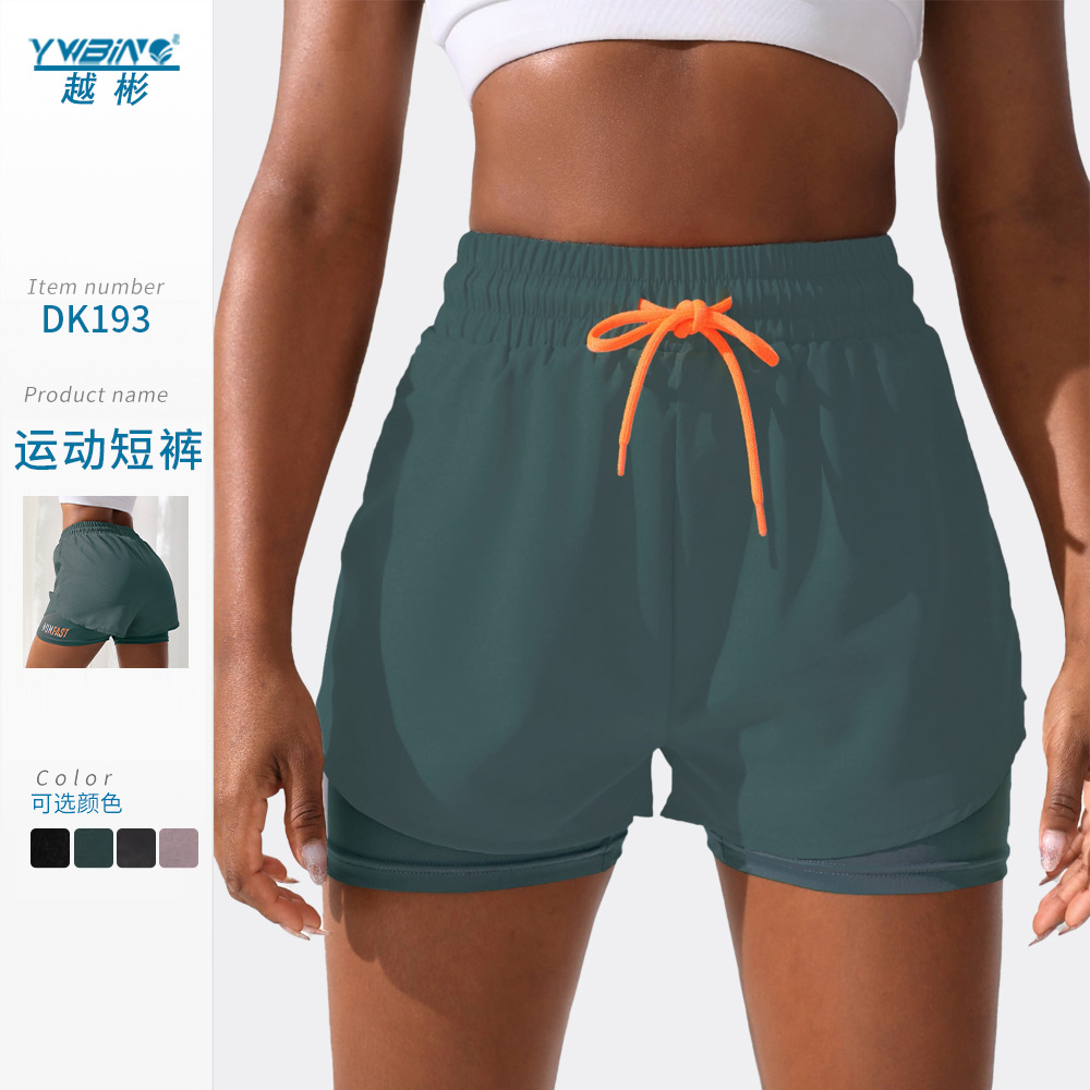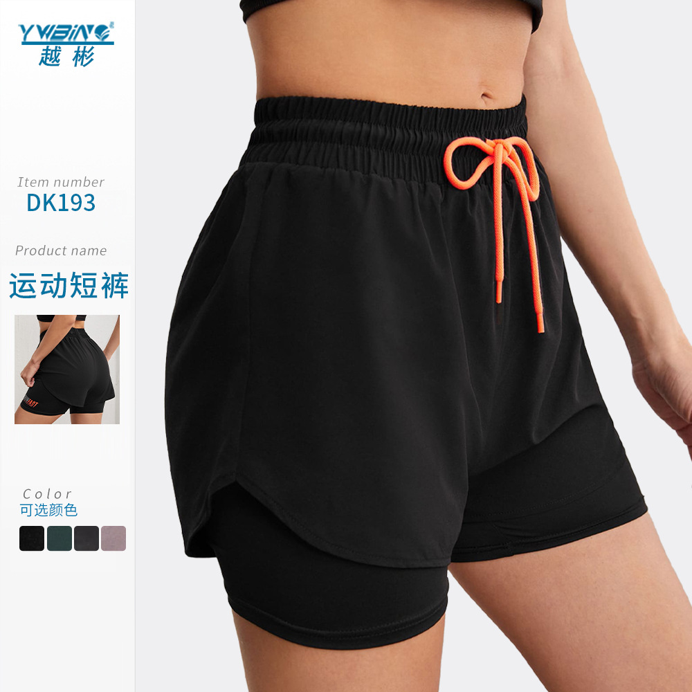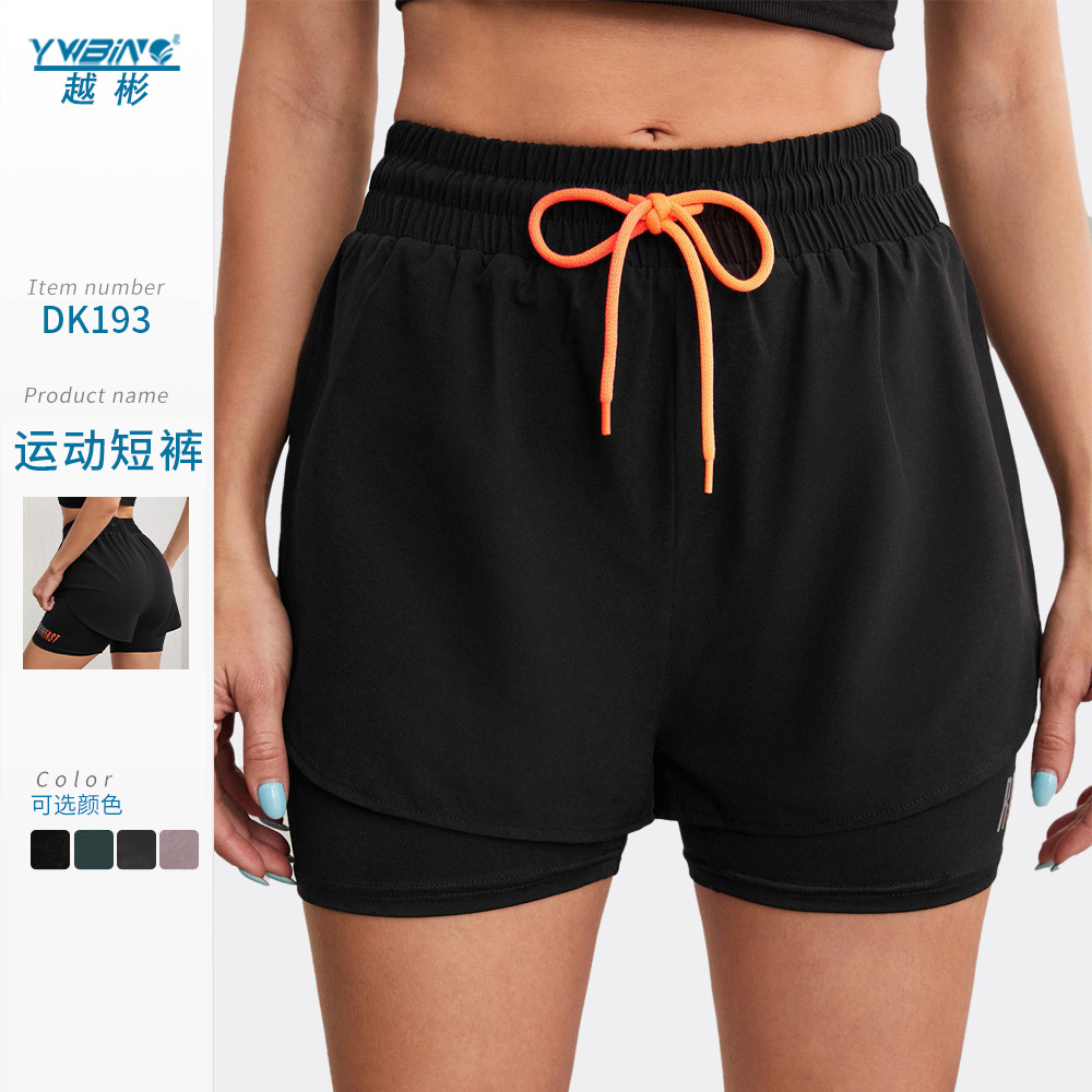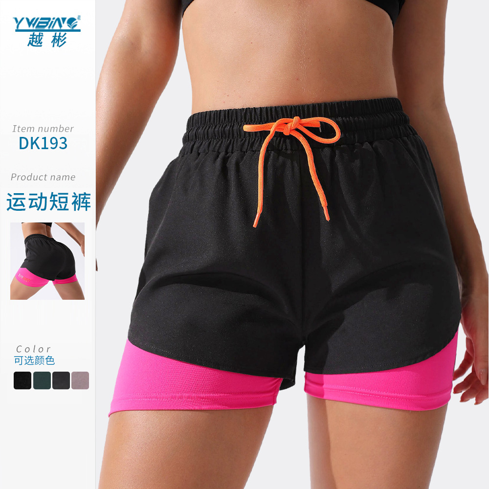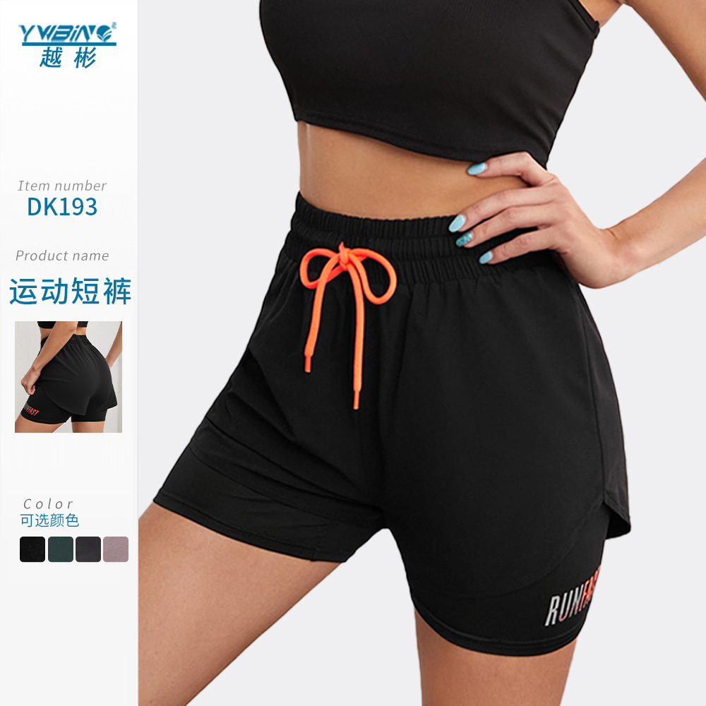 Pantalones cortos con cordón de color de contraste falsos de dos piezas pantalones cortos de tres letras deportivos casuales transpirables anti-exposición de las mujeres pantalones de yoga fitness