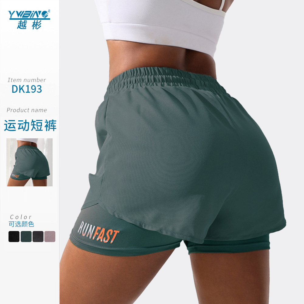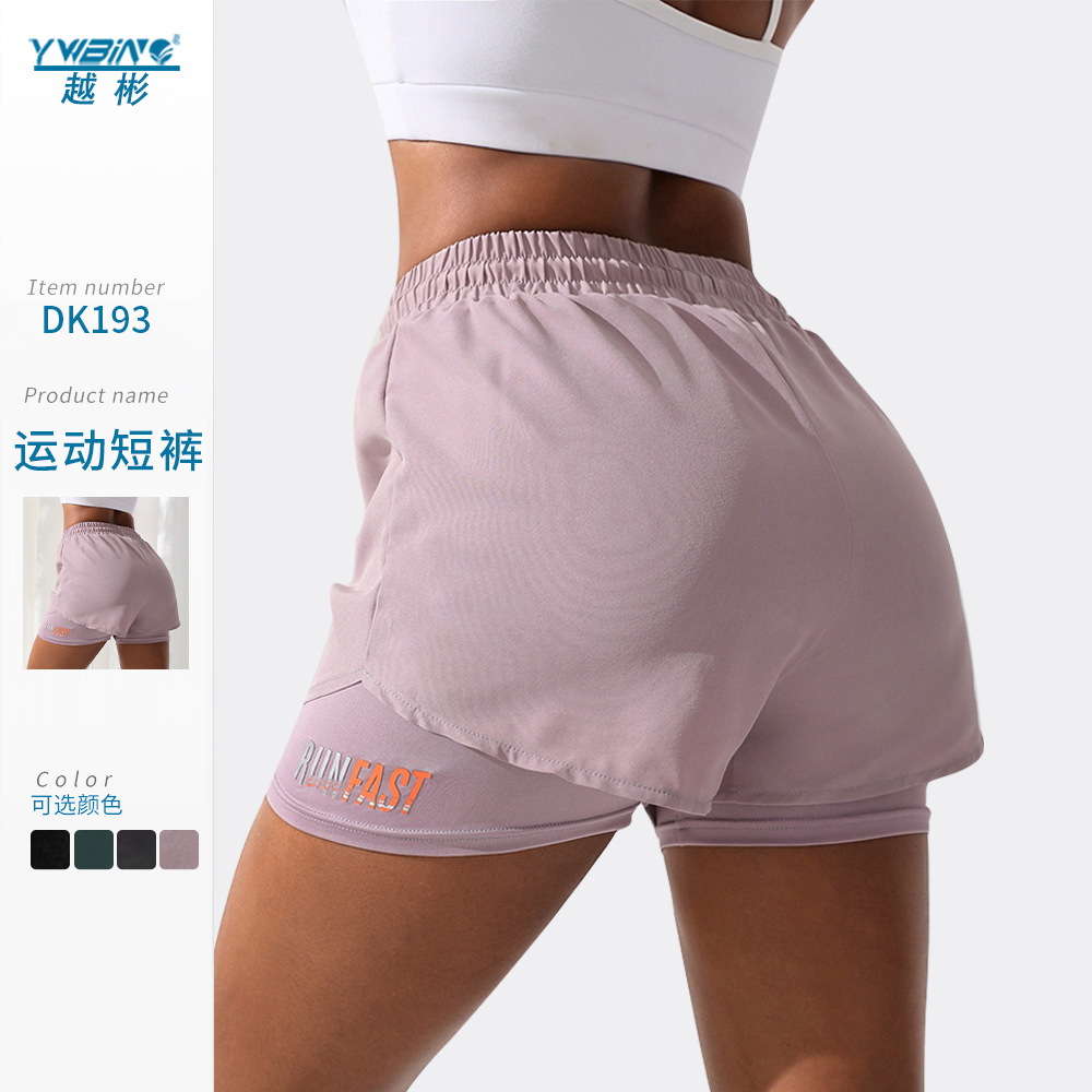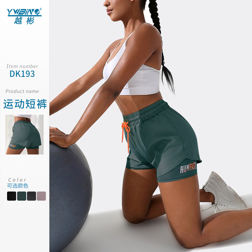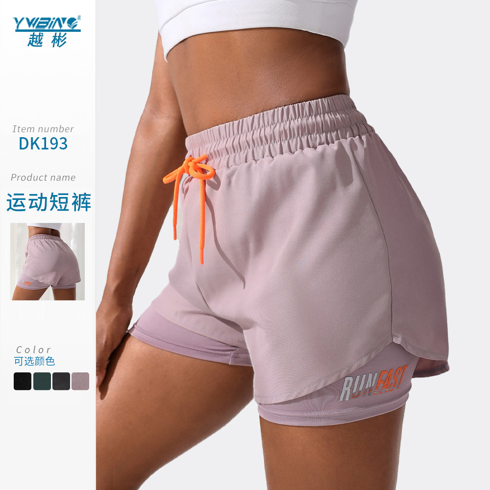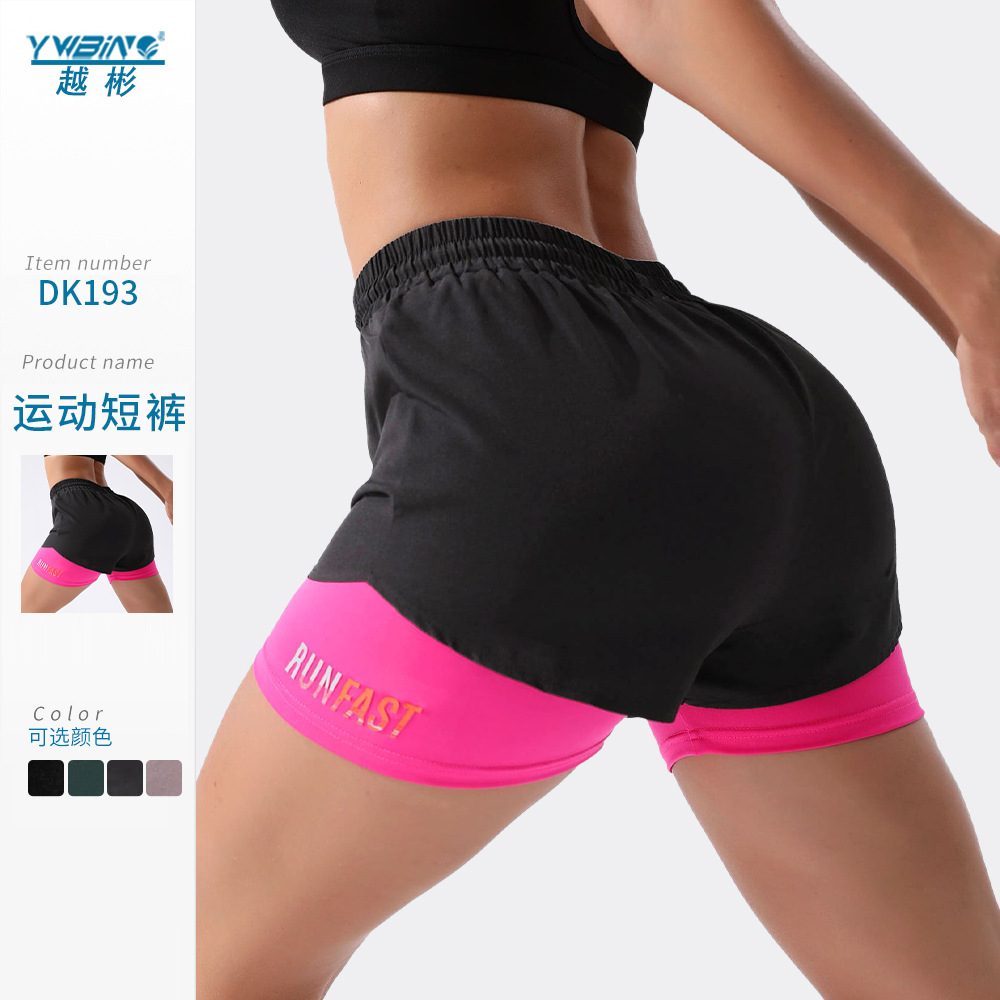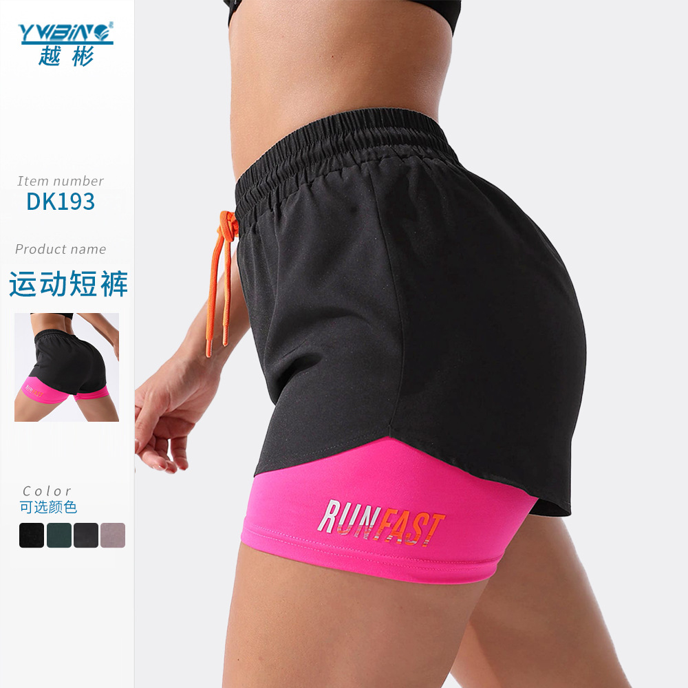 Pantalones cortos con cordón de color de contraste falsos de dos piezas pantalones cortos de tres letras deportivos casuales transpirables anti-exposición de las mujeres pantalones de yoga fitness