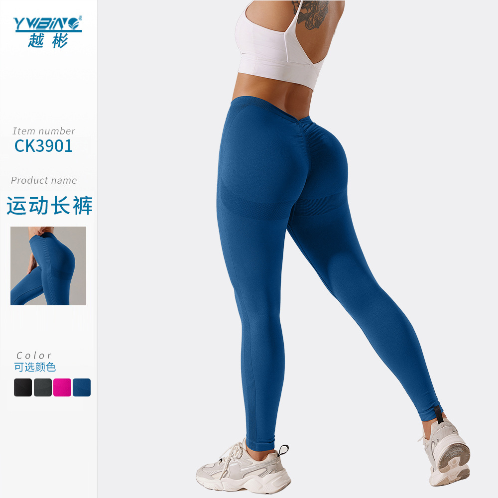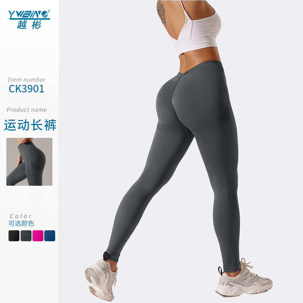 Cruz-frontera espalda V arruga cintura cabeza cadera elevación desnuda pantalones de yoga color sólido más tamaño cintura alta vientre contracción pantalones de fitness para mujeres