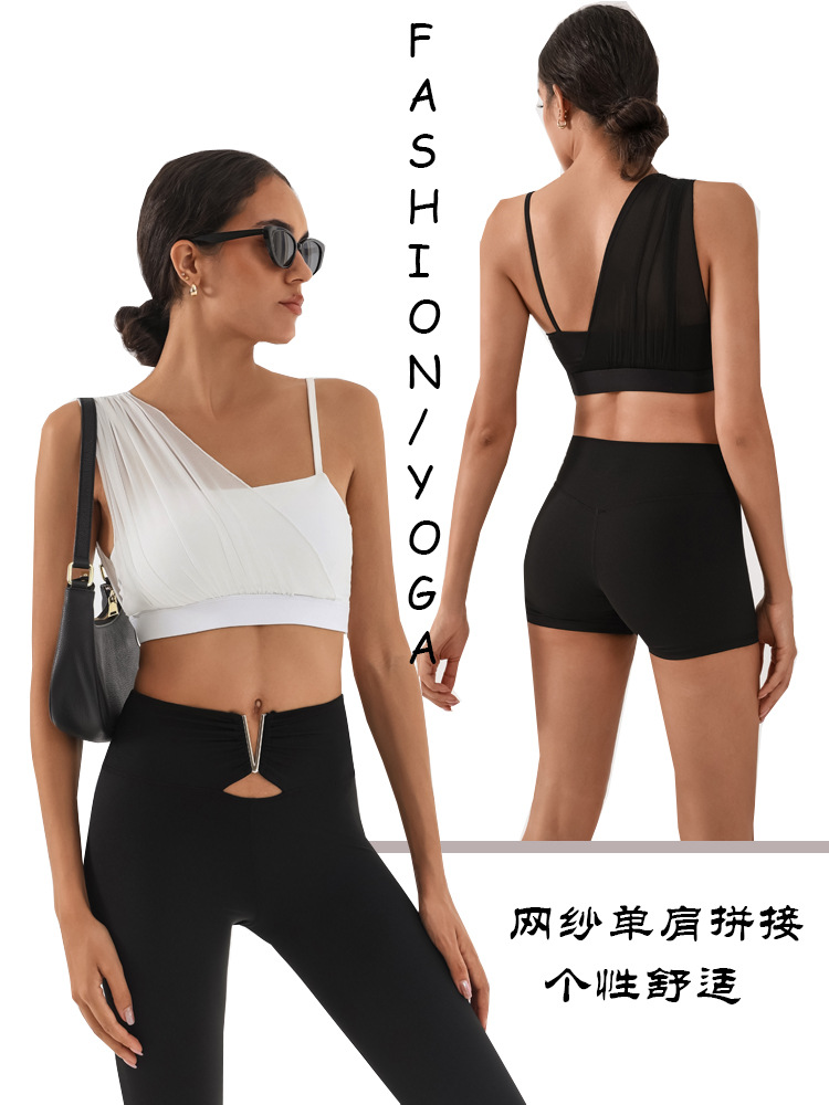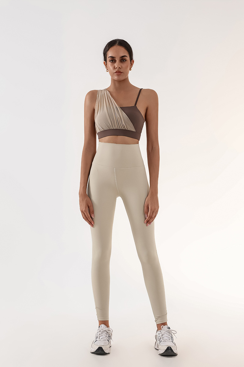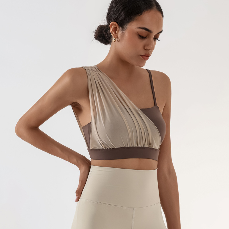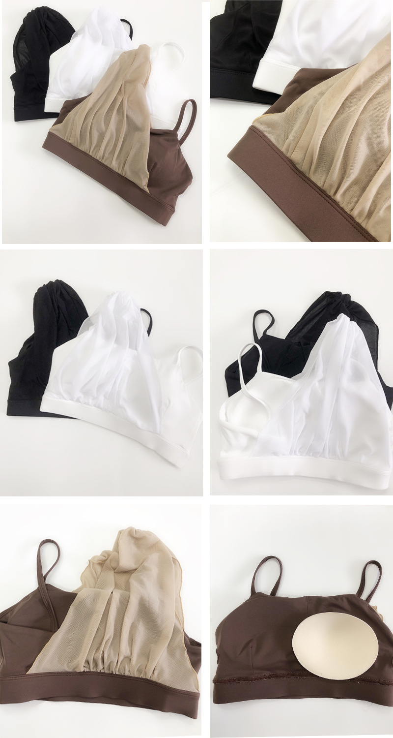 Sujetador deportivo transfronterizo para mujer con almohadilla para el pecho Yoga entrenamiento de fitness costura de malla color de contraste alta elasticidad secado rápido nude sujetador