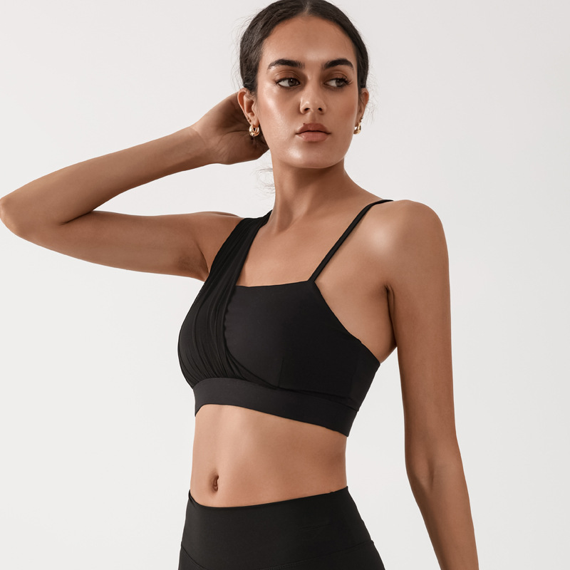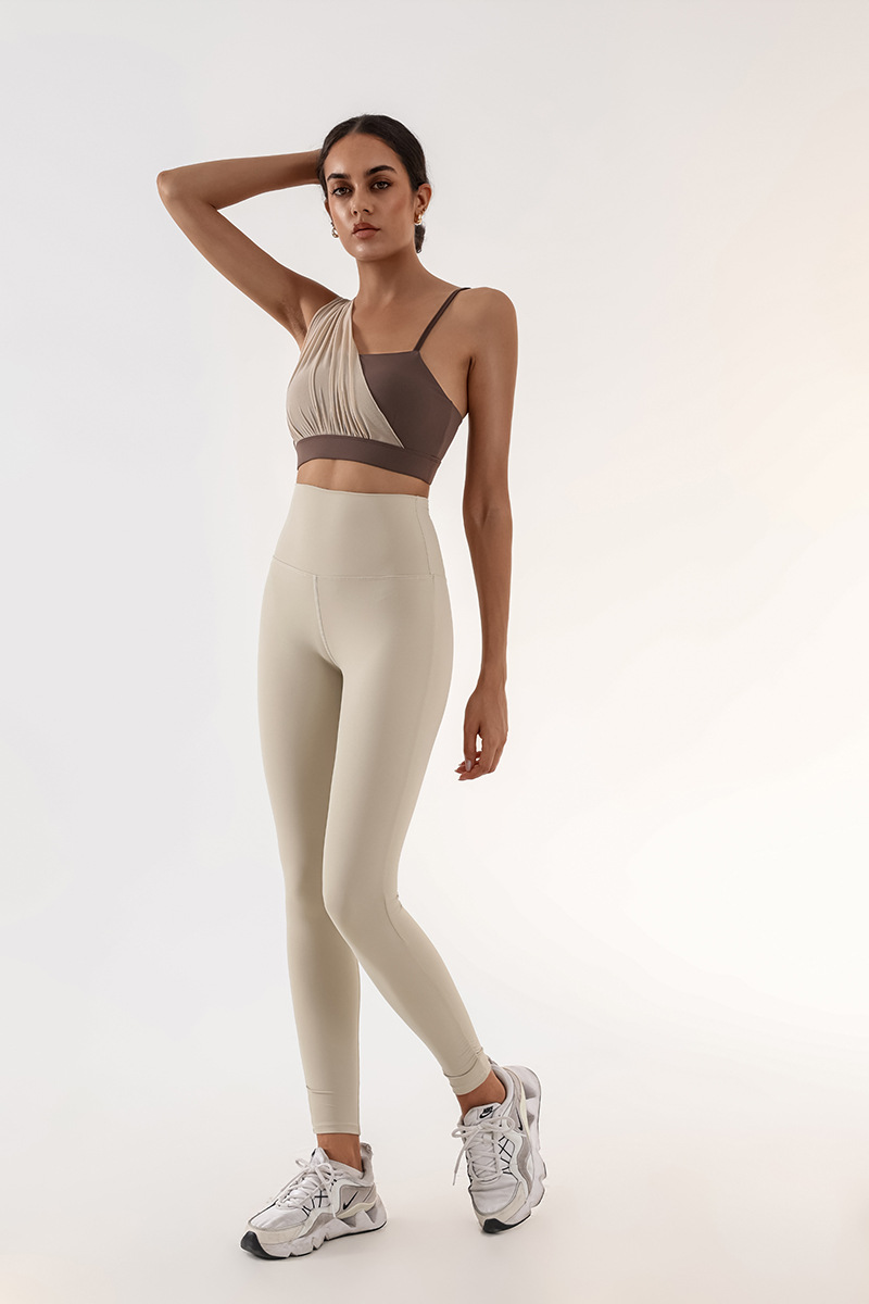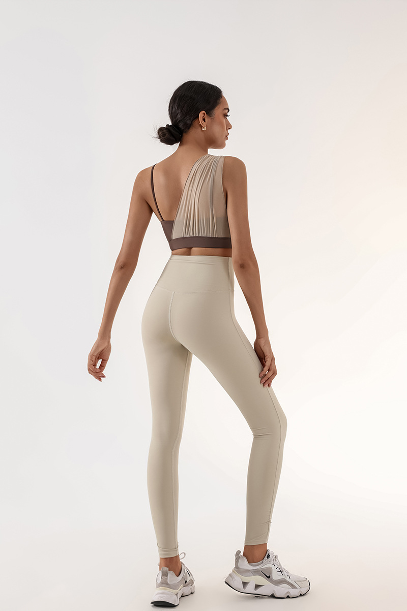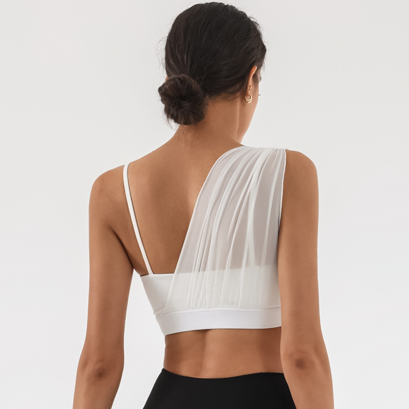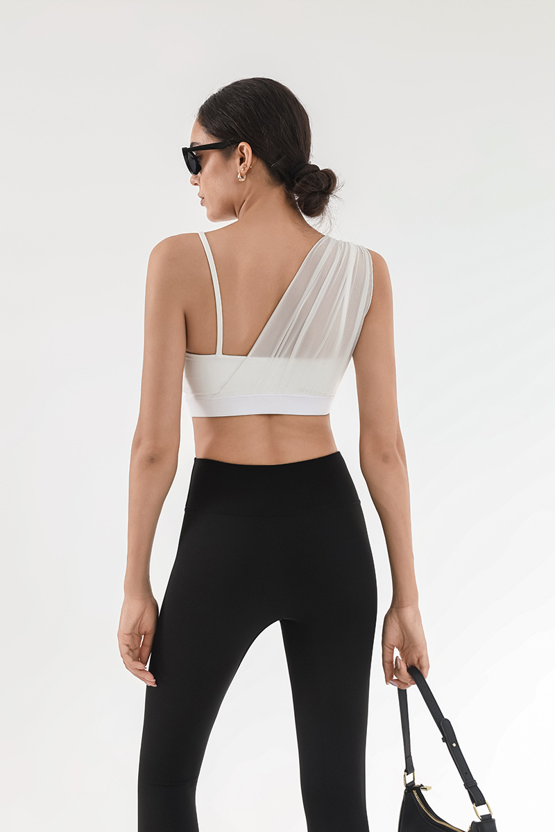 Sujetador deportivo transfronterizo para mujer con almohadilla para el pecho Yoga entrenamiento de fitness costura de malla color de contraste alta elasticidad secado rápido nude sujetador