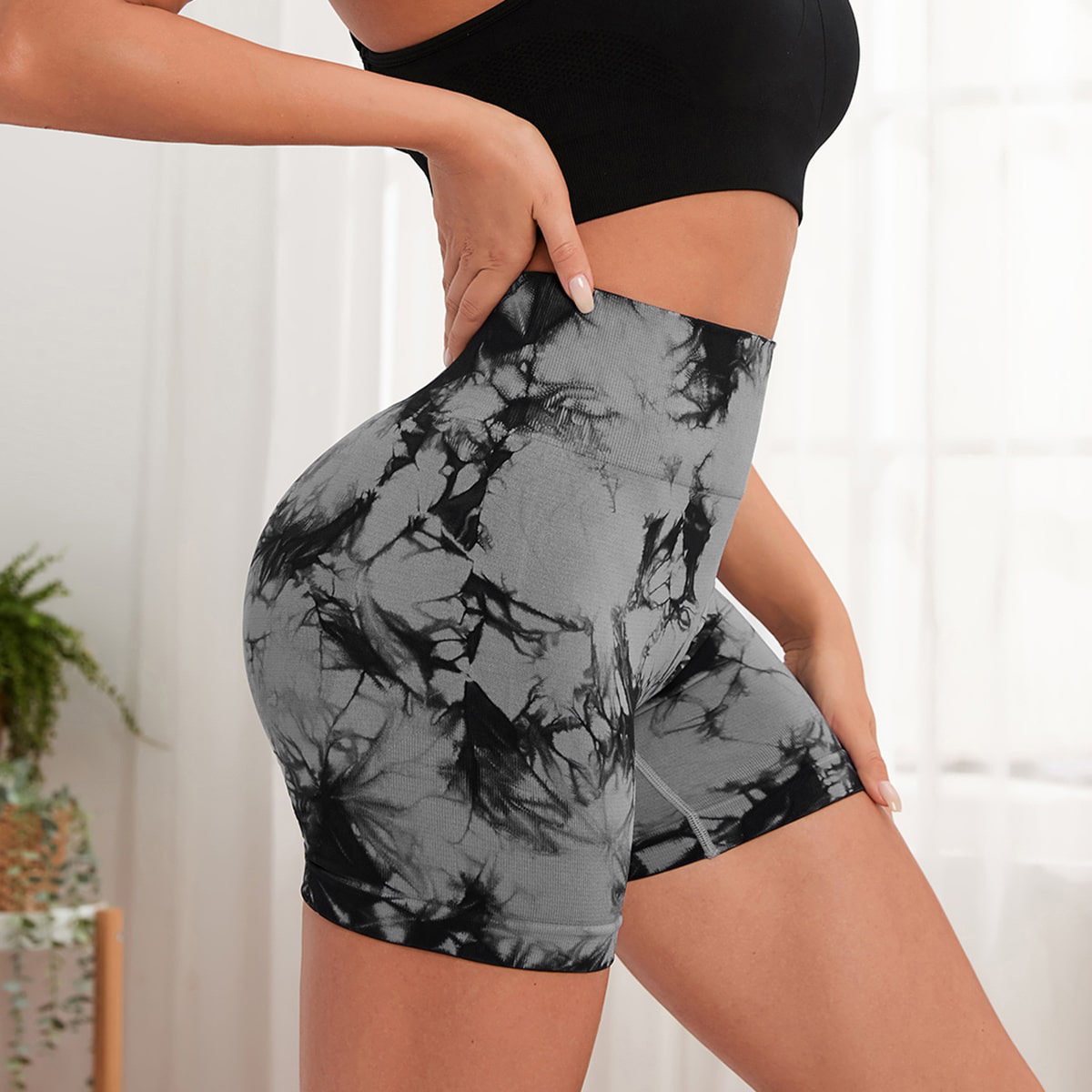 ¡En stock! Pantalones de yoga teñidos de punto sin costuras transfronterizos pantalones cortos de Yoga de contracción del vientre de cintura alta melocotón pantalones de levantamiento de cadera para mujeres