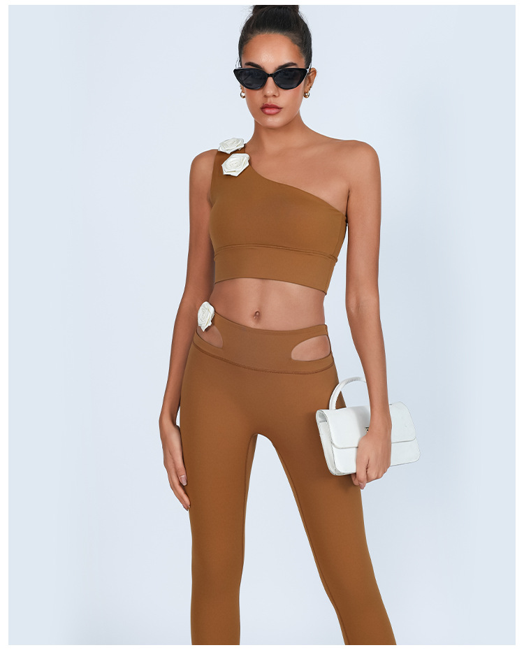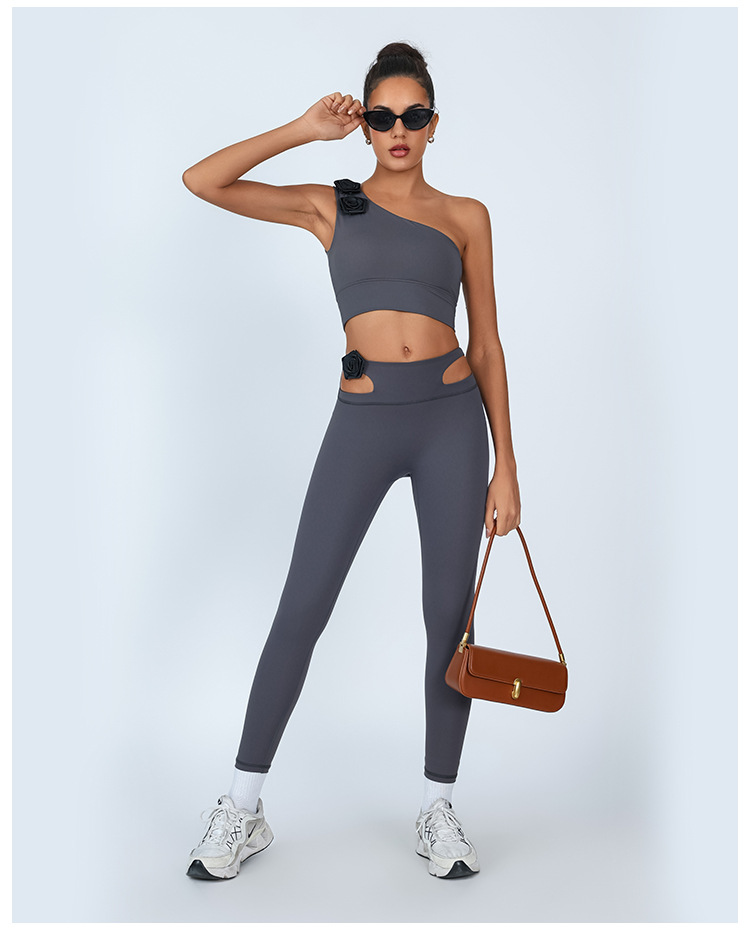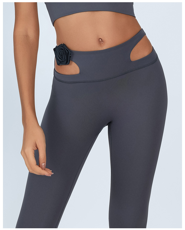 Nuevos pantalones de yoga transfronterizos europeos y estadounidenses, flores tridimensionales, cintura alta apretada, abdomen cerrado, pantalones de gimnasio