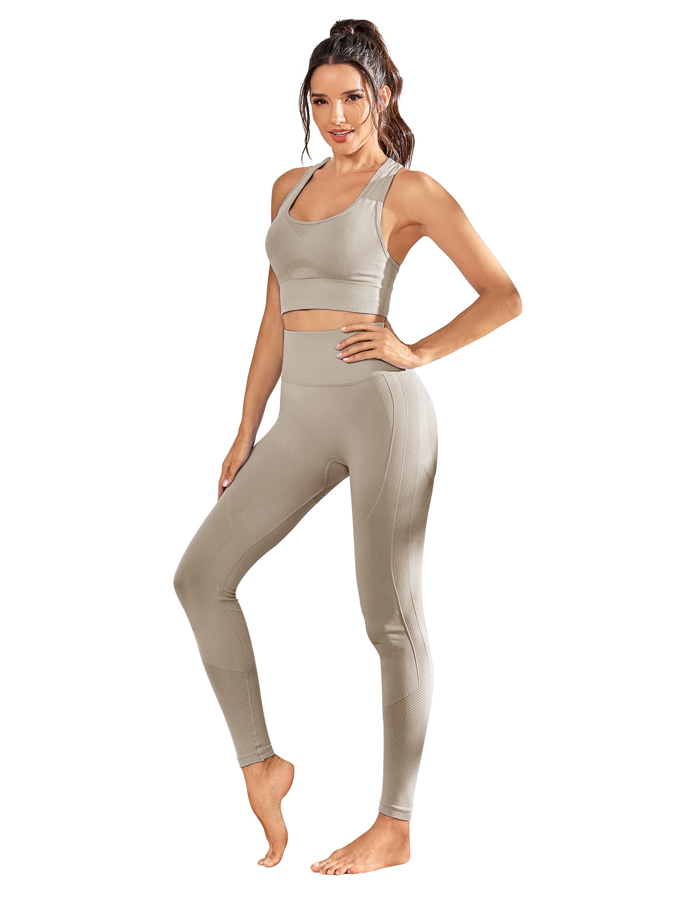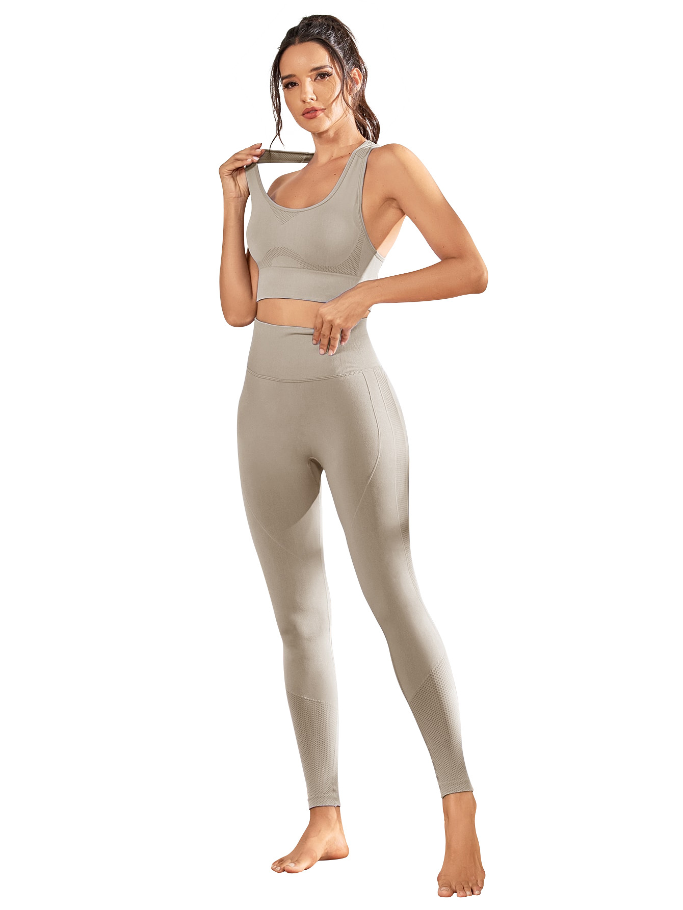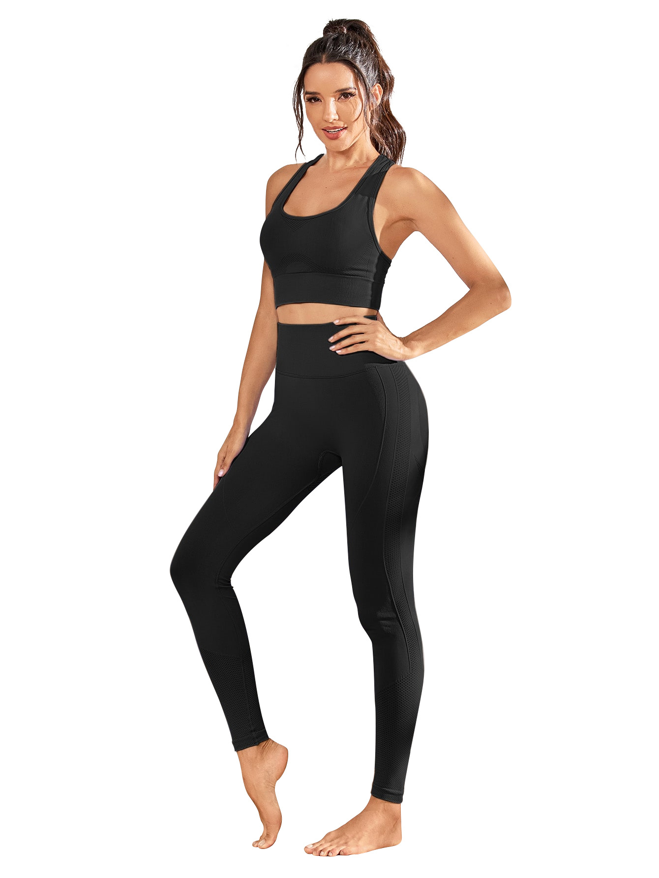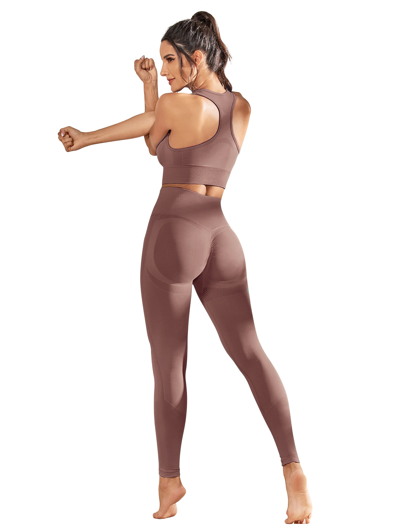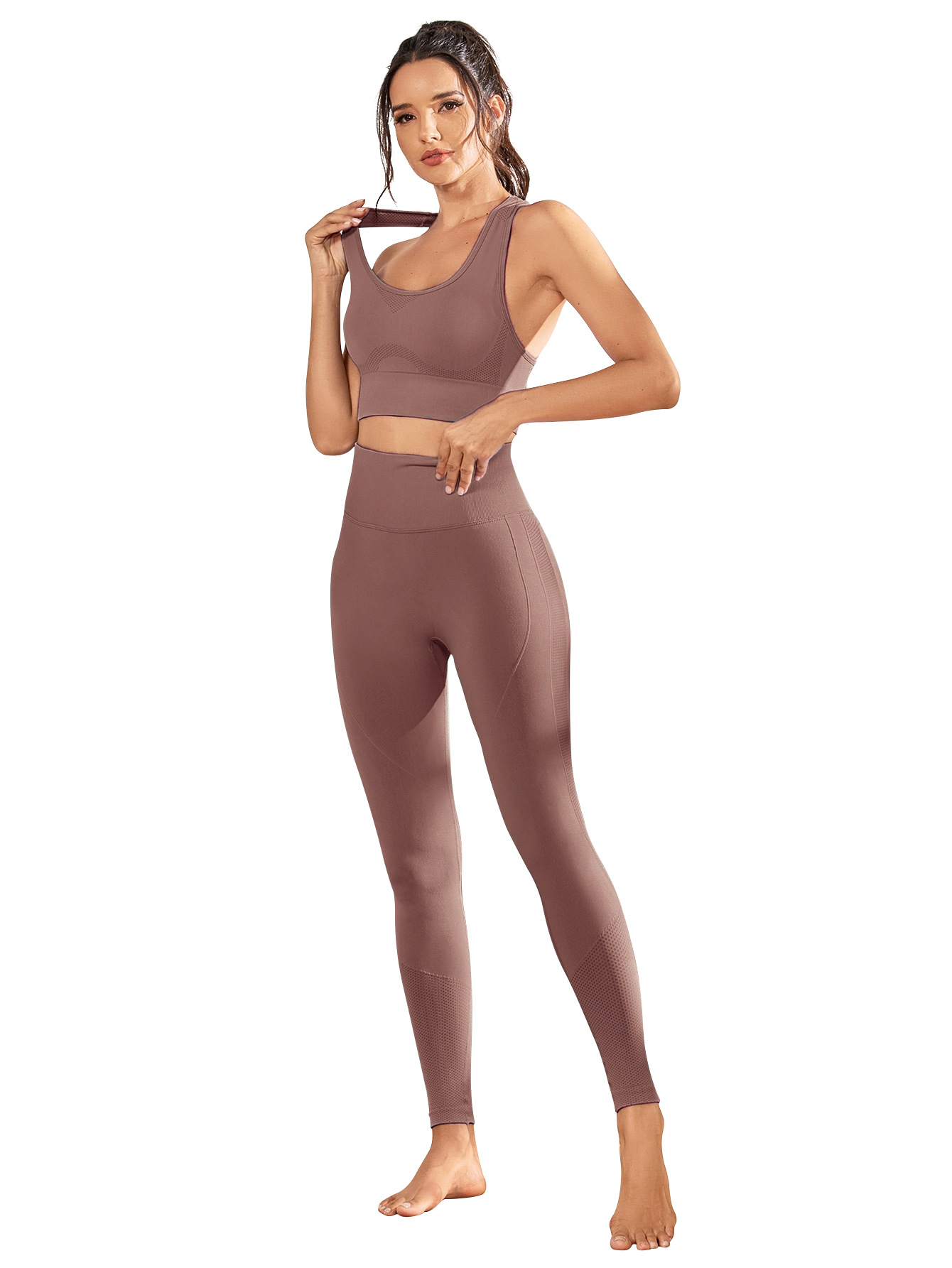 Deportes yoga ropa de entrenamiento de dos piezas alta elástica transpirable desmontable pecho pad ropa de entrenamiento cintura alta cadera levantamiento ropa para correr para mujeres