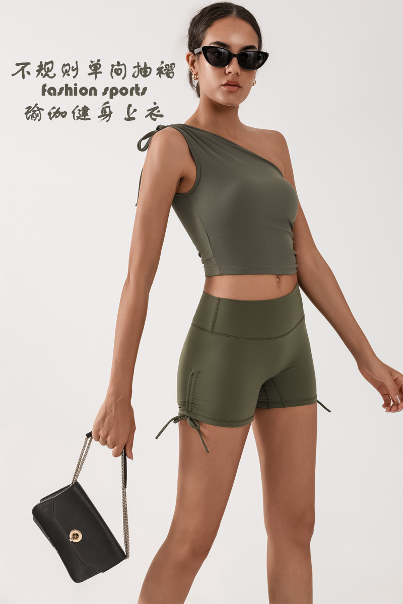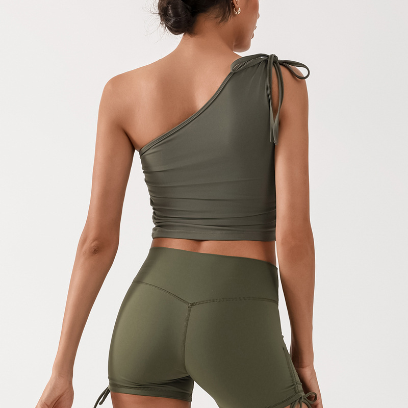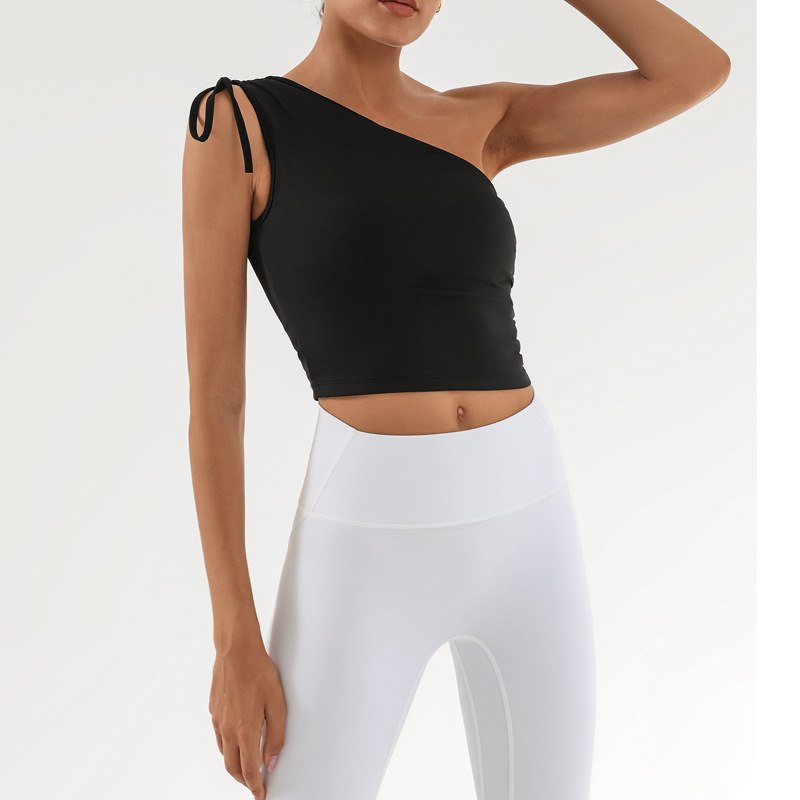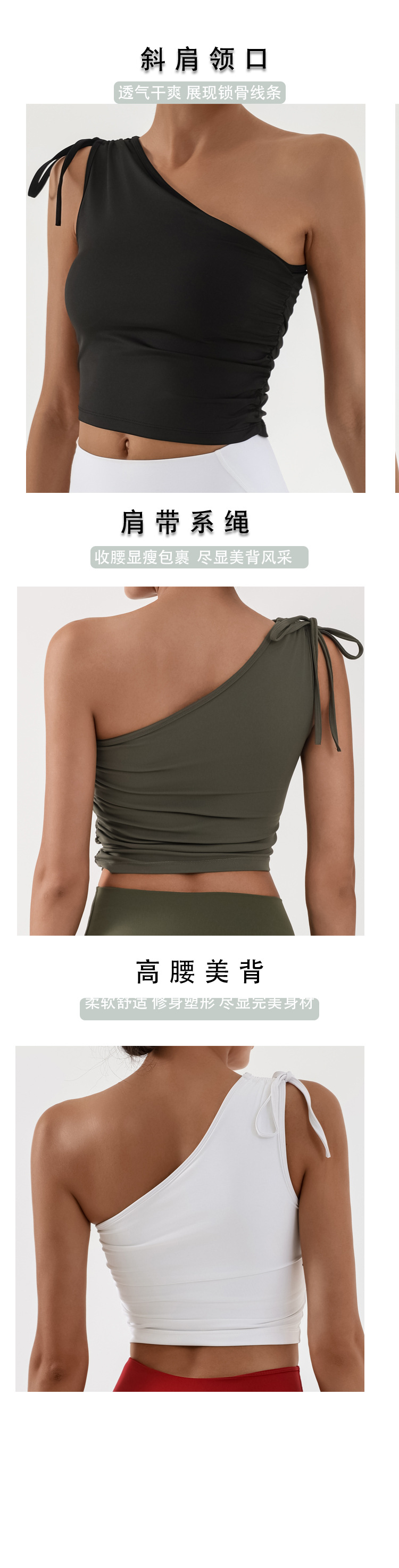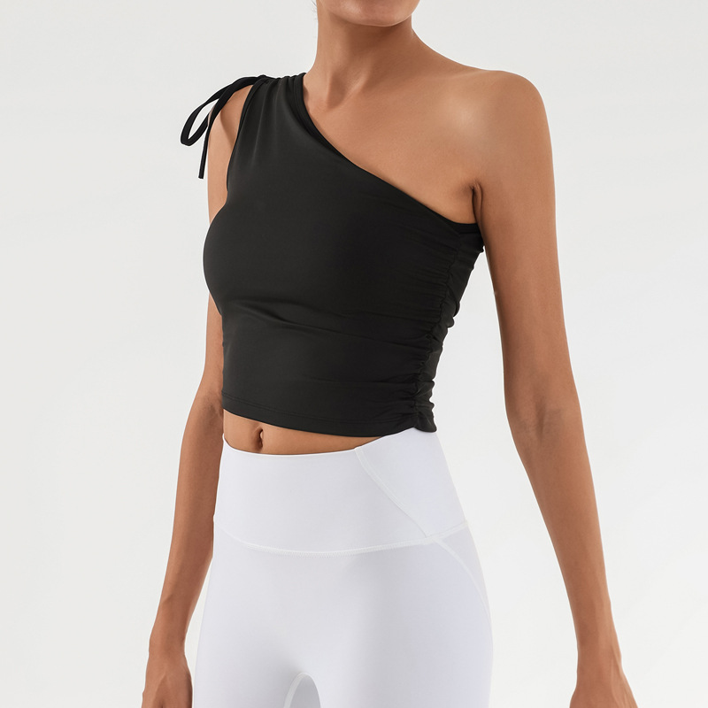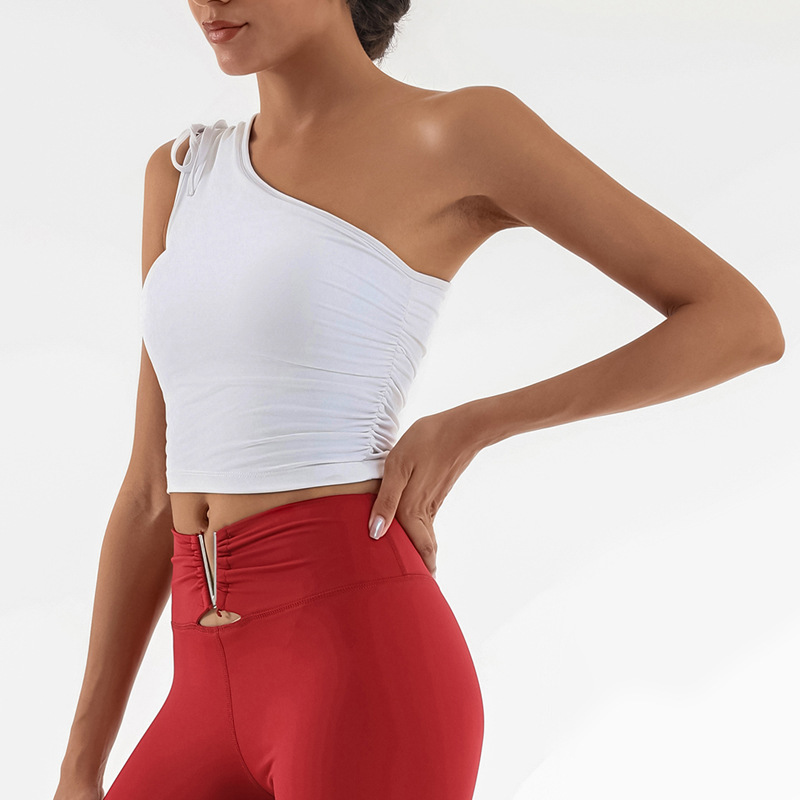 Nuevo chaleco de yoga para mujer plisado de un solo hombro con almohadilla para el pecho