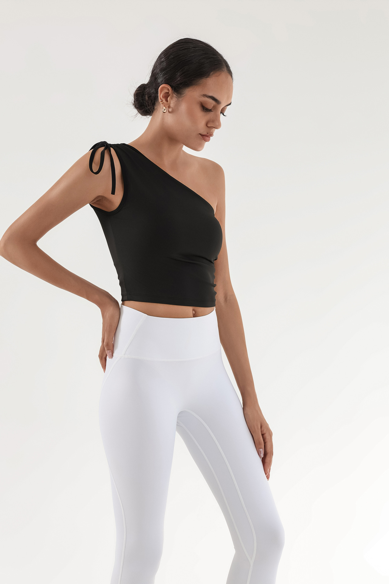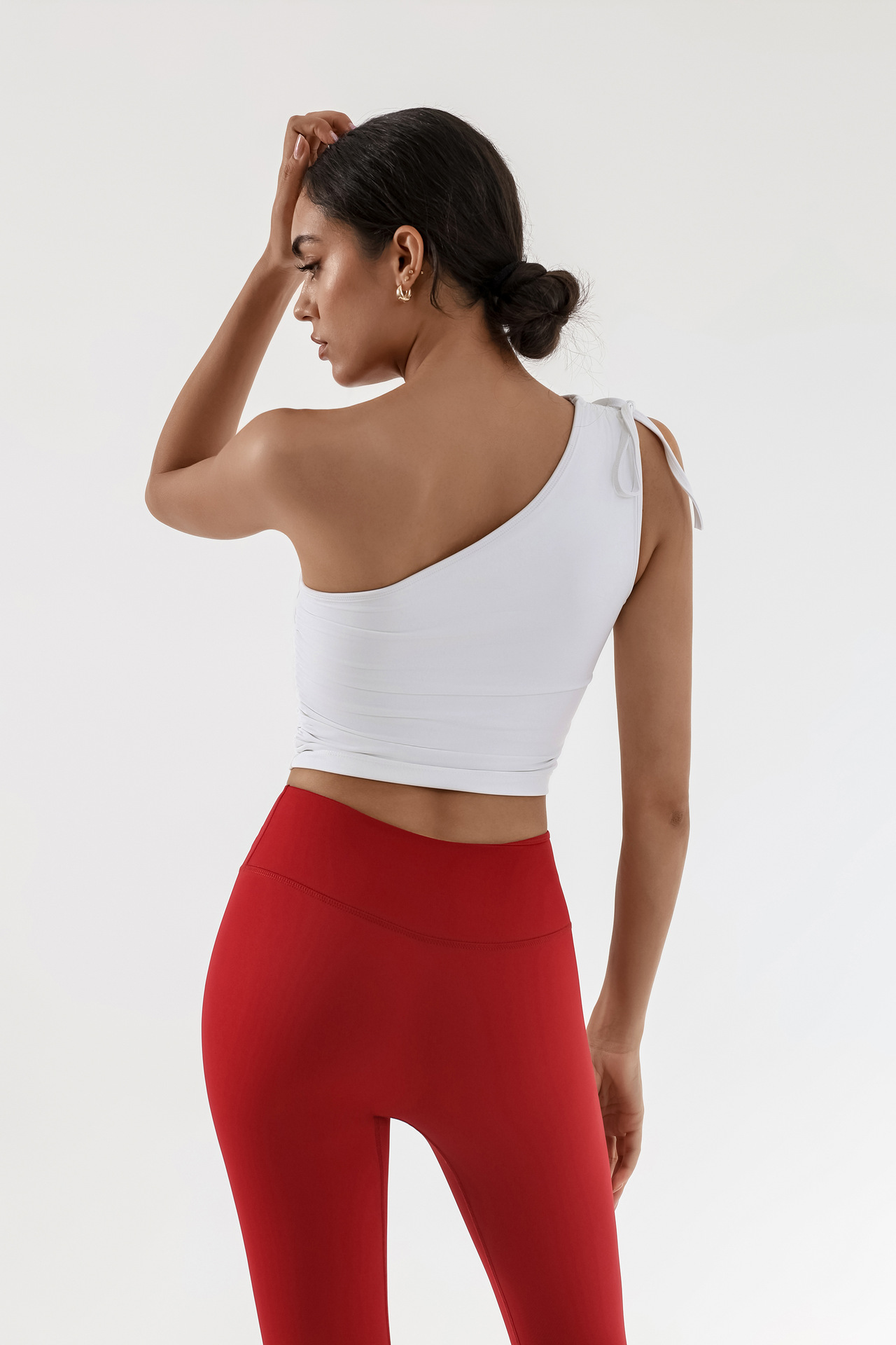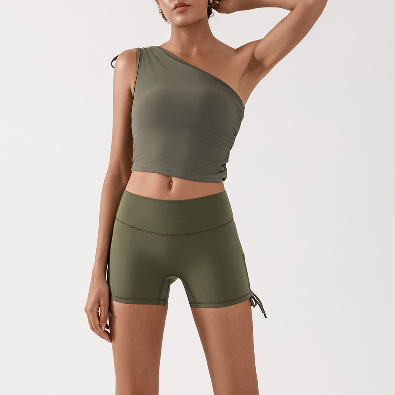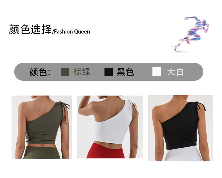 Nuevo chaleco de yoga para mujer plisado de un solo hombro con almohadilla para el pecho