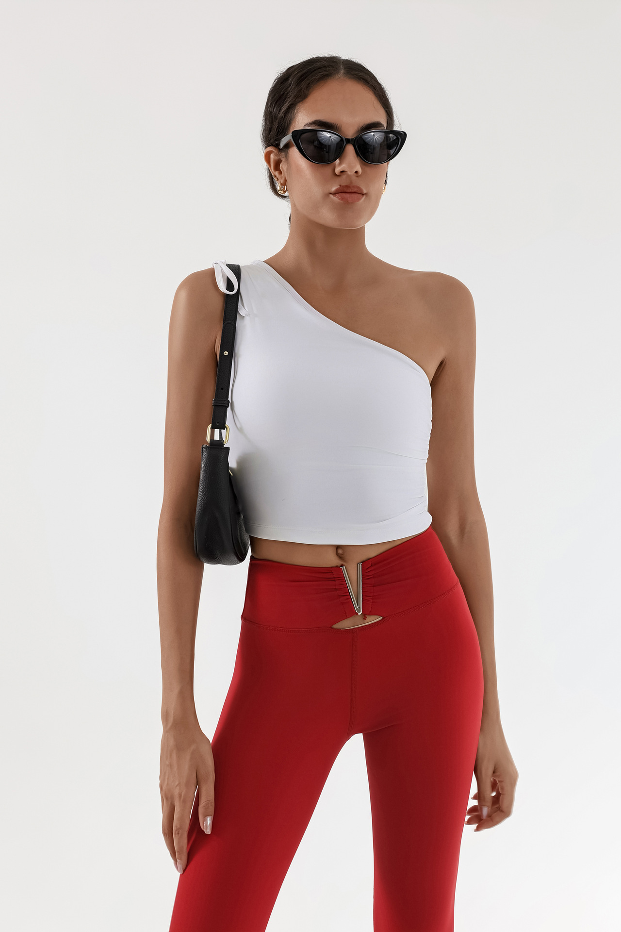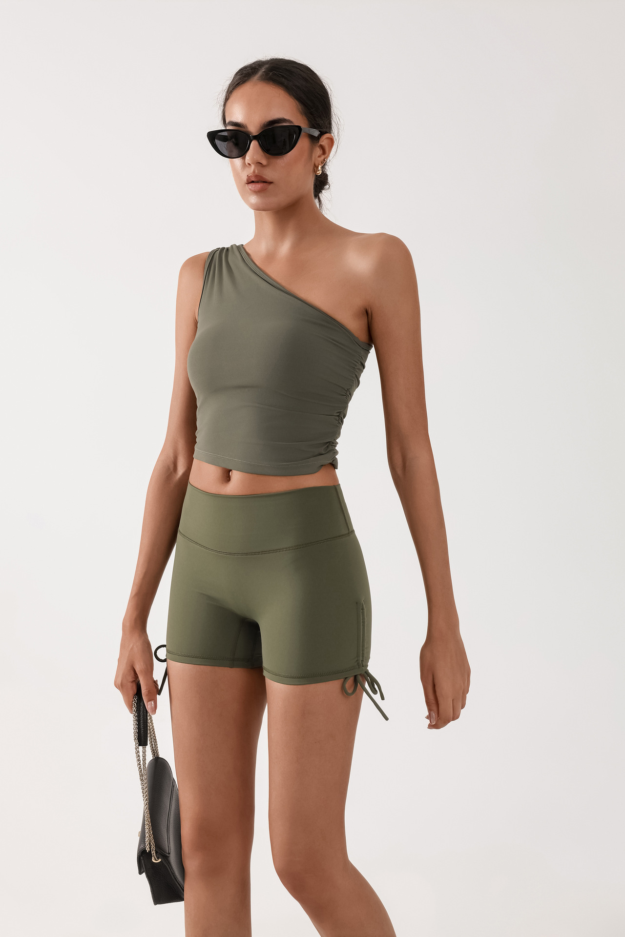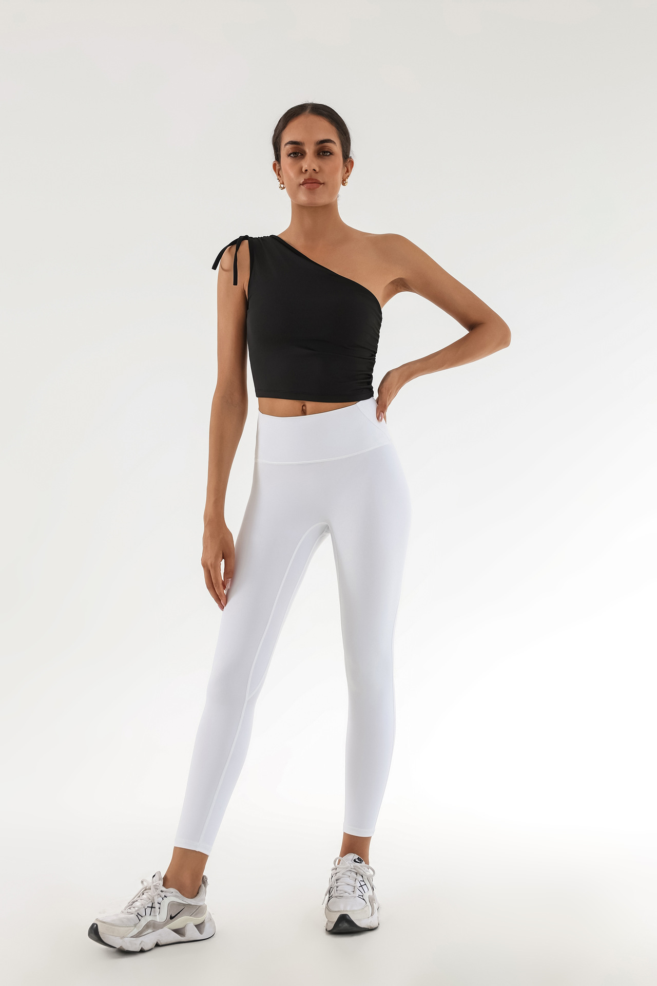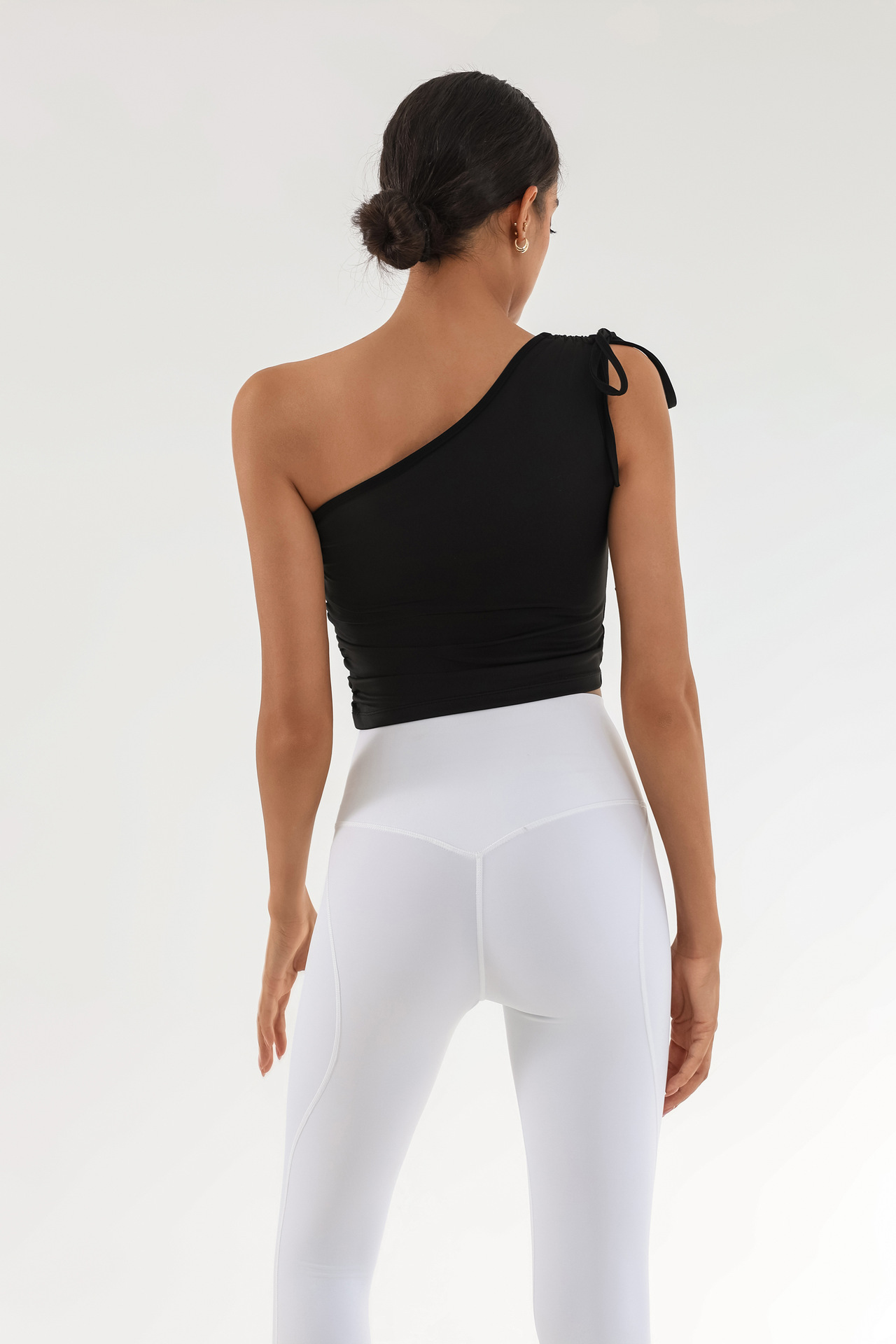 Nuevo chaleco de yoga para mujer plisado de un solo hombro con almohadilla para el pecho