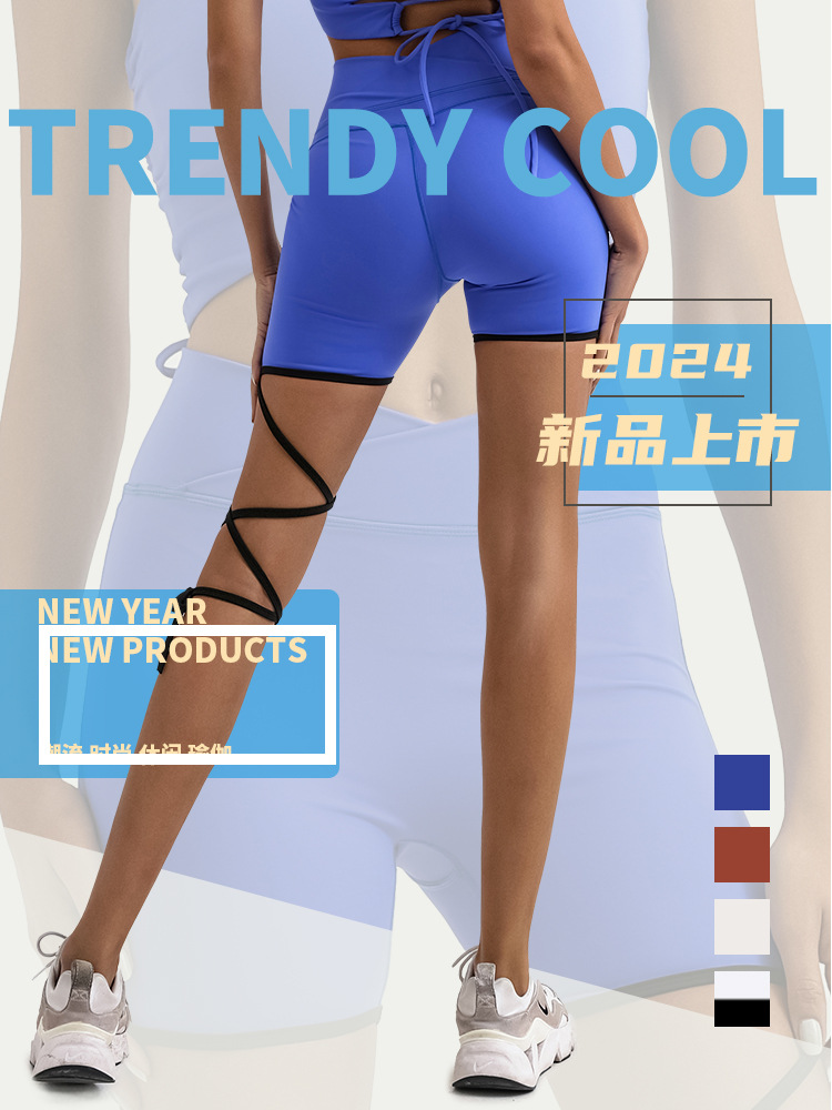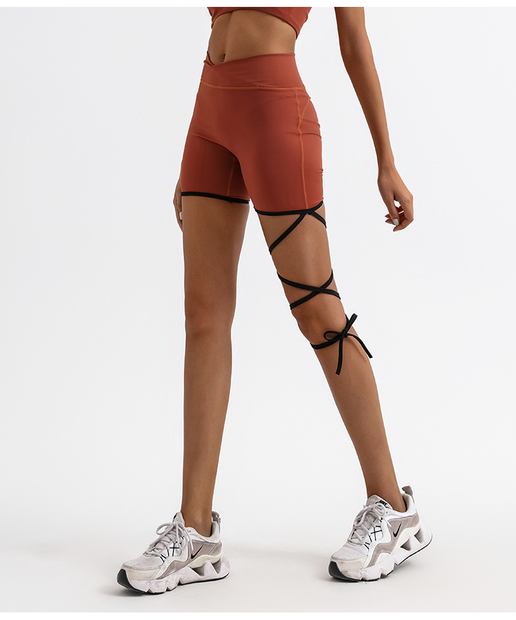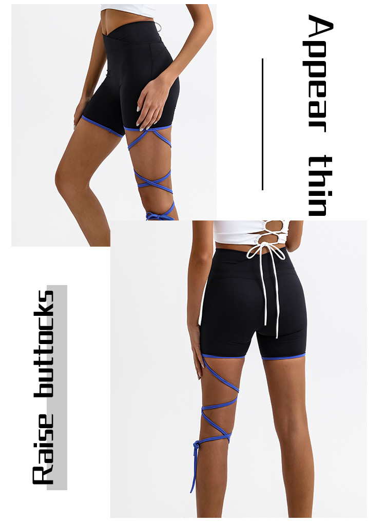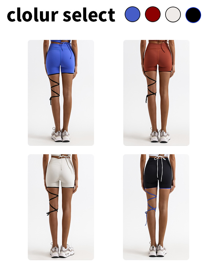 Comercio exterior transfronteriza yoga deportes pantalones cortos de fitness de color a juego con cordones desnudos de alta elástico de secado rápido de entrenamiento de tres puntos calientes