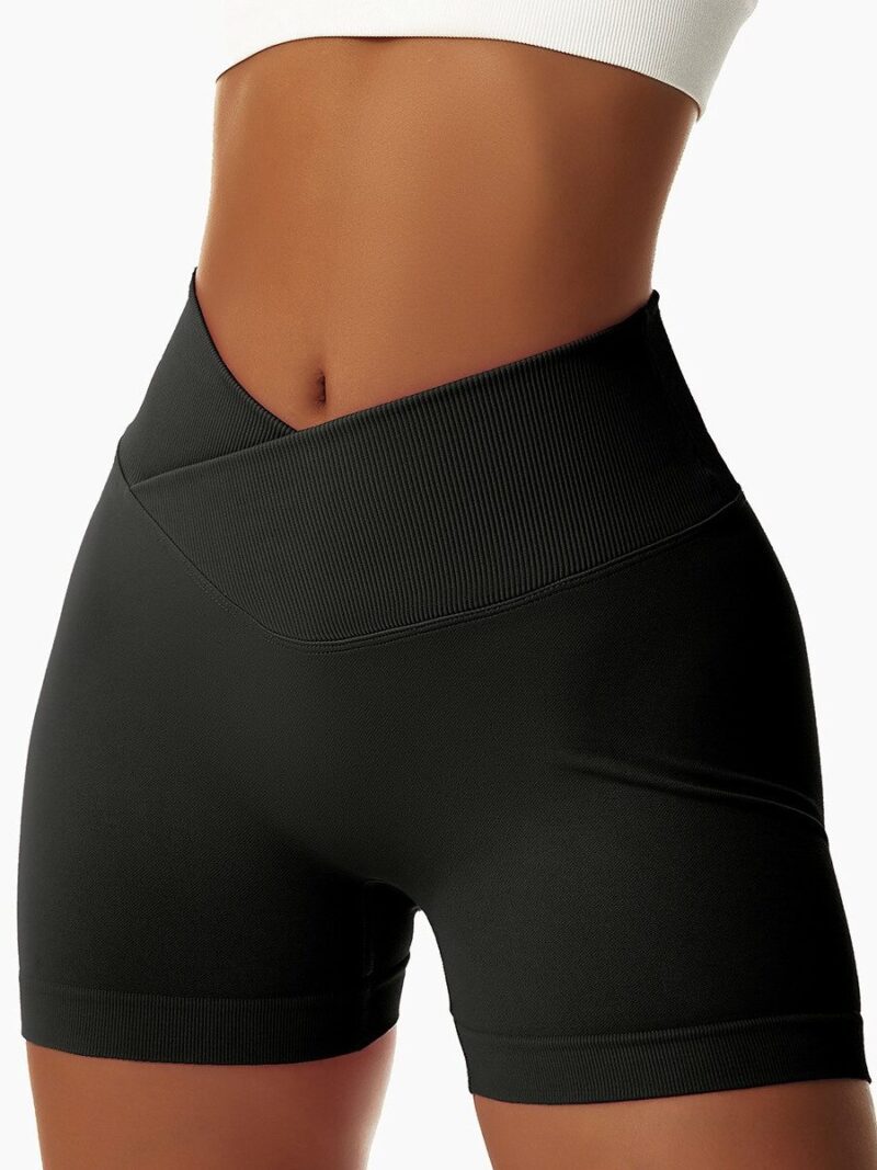 Pantalones de cintura cruzada para mujeres, pantalones cortos de cintura alta elásticos, pantalones de entrenamiento para correr, pantalones deportivos ajustados sin costuras