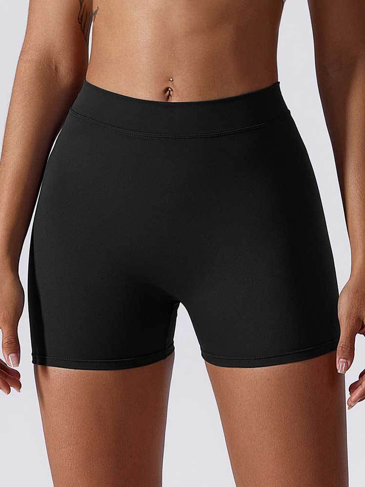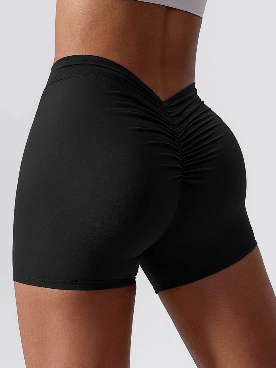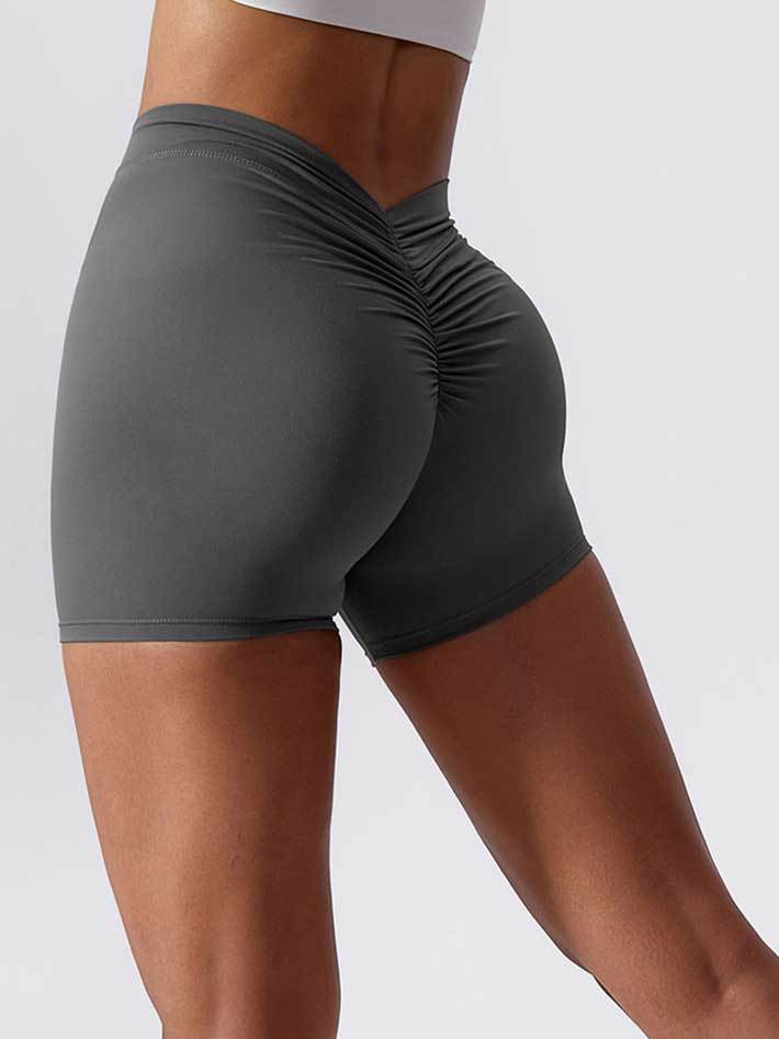 Nuevo producto personalizado cintura de color sólido espalda V arrugada cadera nude pantalones de tres puntos pantalones de yoga de alta elasticidad pantalones cortos de fitness mujeres