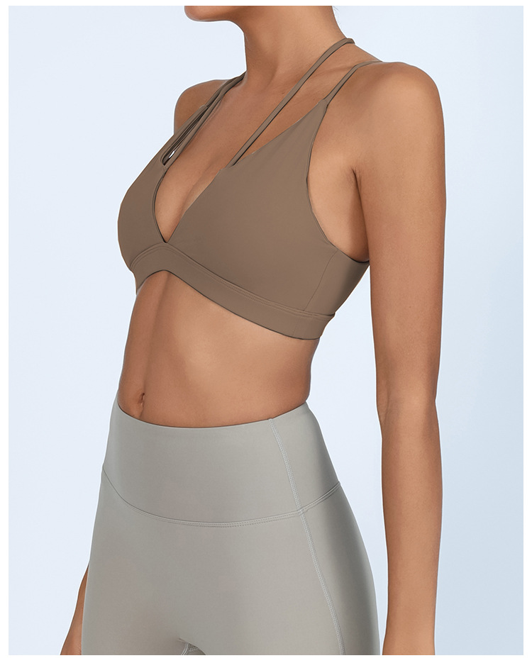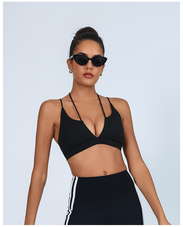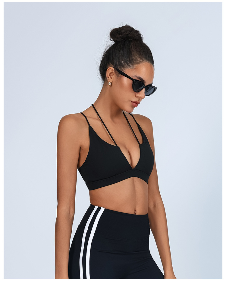 Comercio exterior Yoga transfronterizo Beauty Back Fitness Chaleco Mujer con almohadilla para el pecho Alta elasticidad y secado rápido para envolver el pecho Sujetador de entrenamiento de fitness deportivo