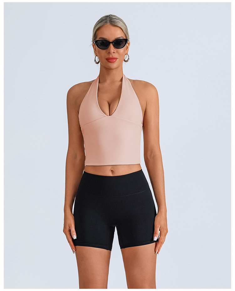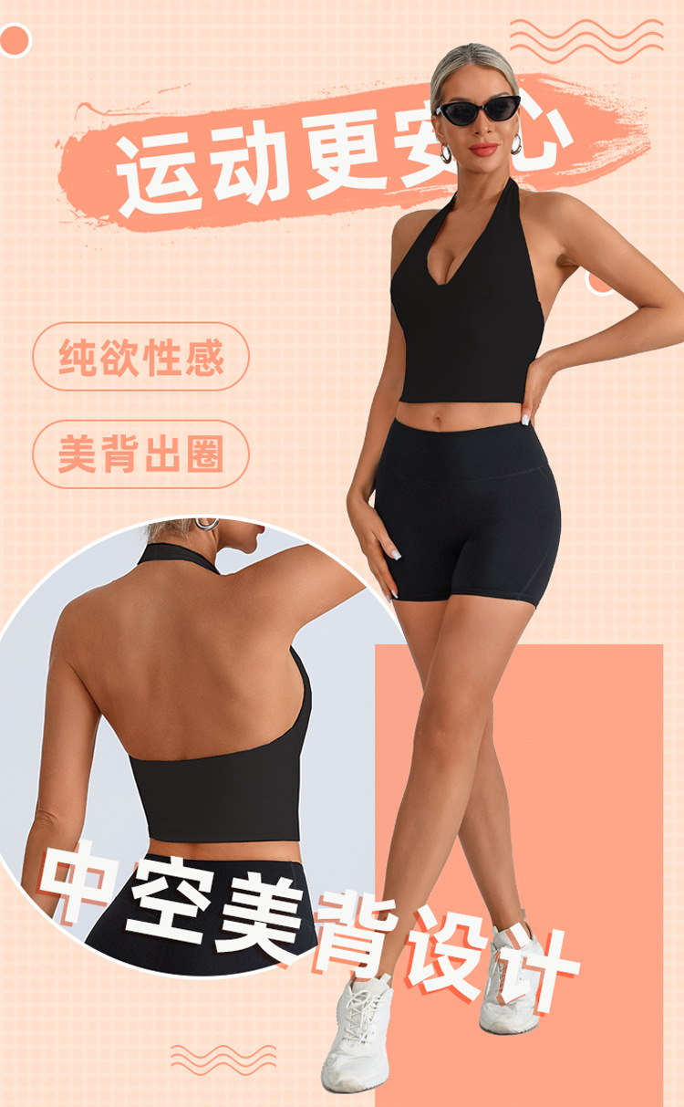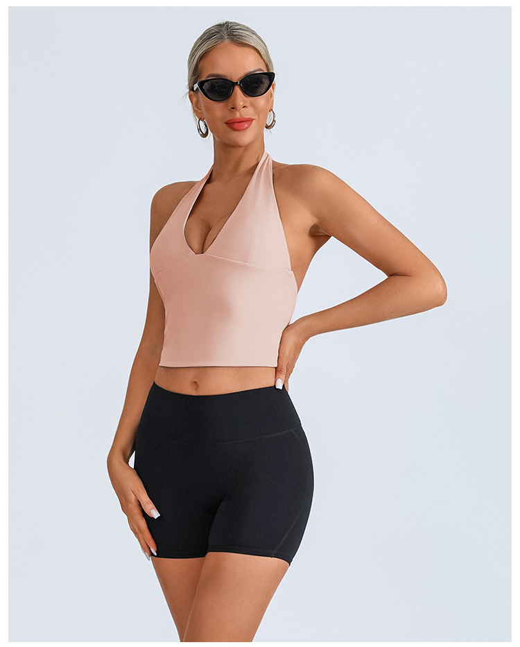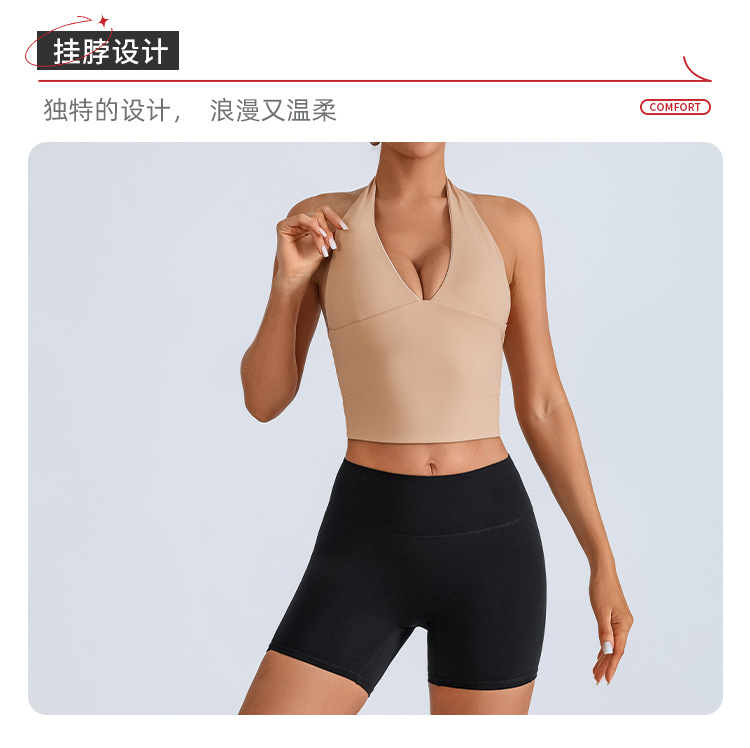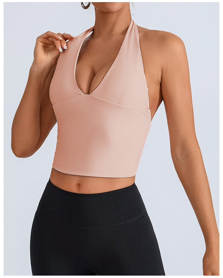 Chaleco deportivo transfronterizo europeo y americano, ropa de yoga, cuello halter femenino, cuello en V, running, fitness, espalda hermosa, top de entrenamiento de secado rápido
