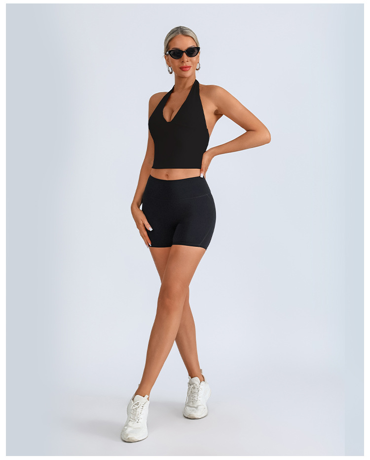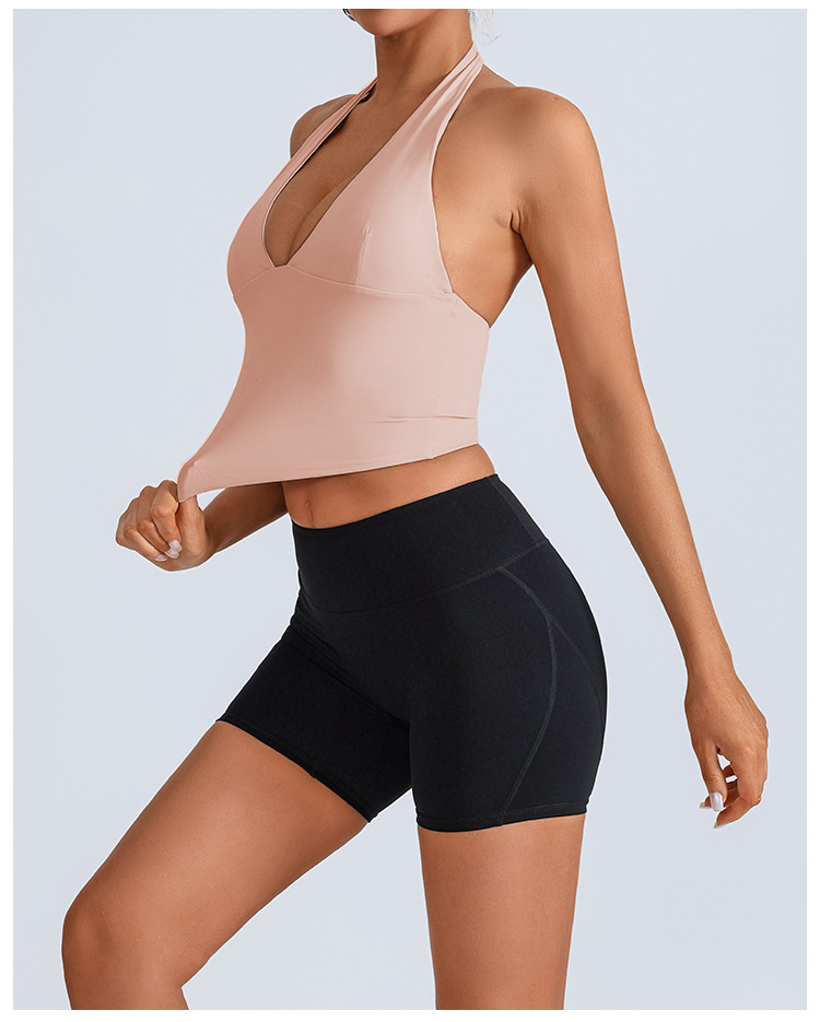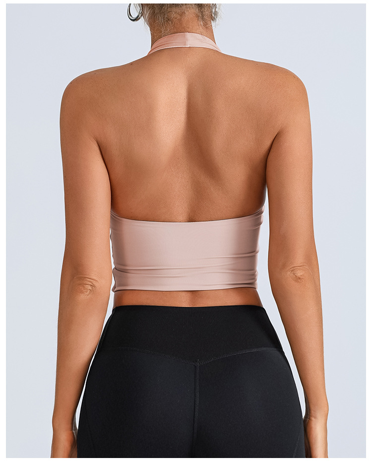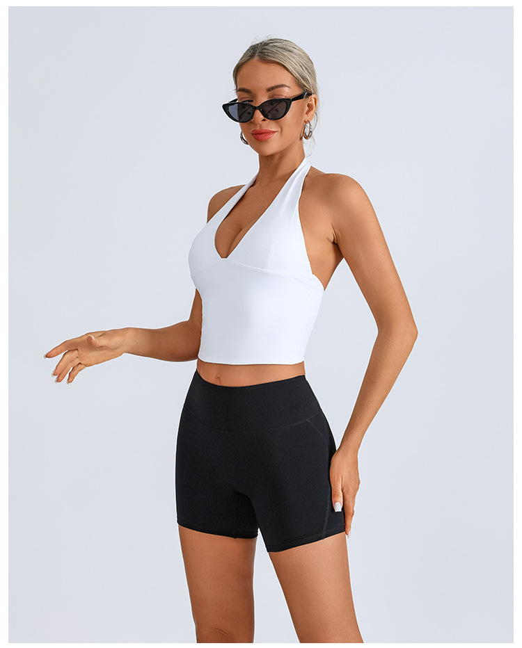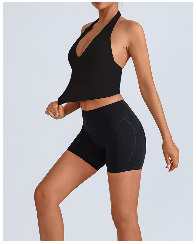 Chaleco deportivo transfronterizo europeo y americano, ropa de yoga, cuello halter femenino, cuello en V, running, fitness, espalda hermosa, top de entrenamiento de secado rápido