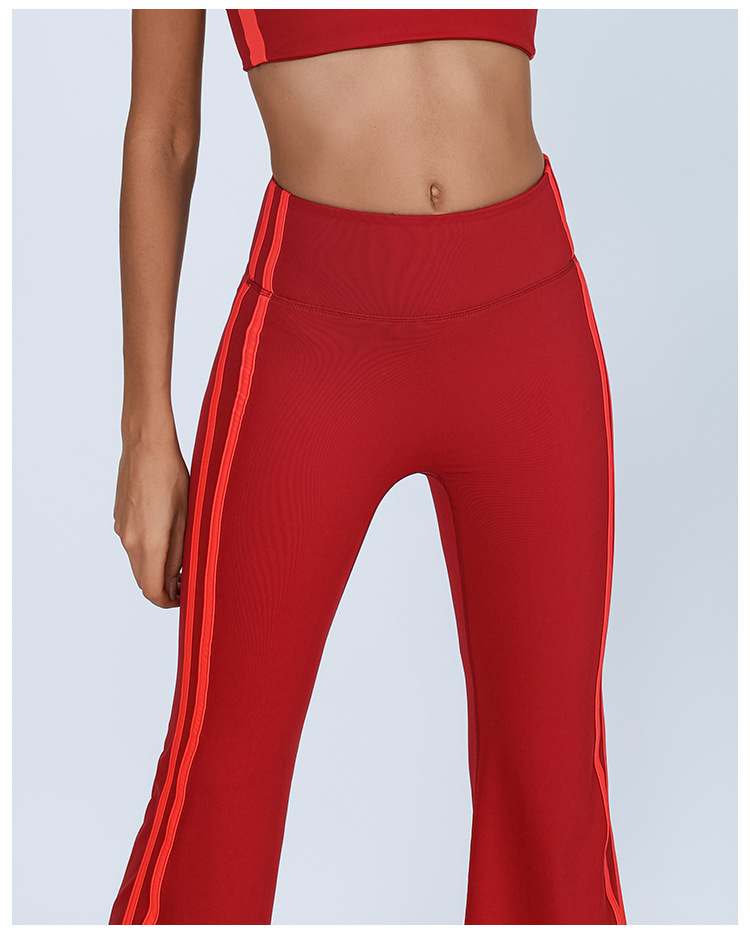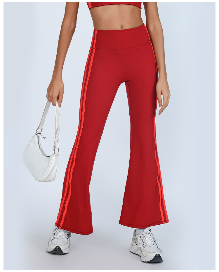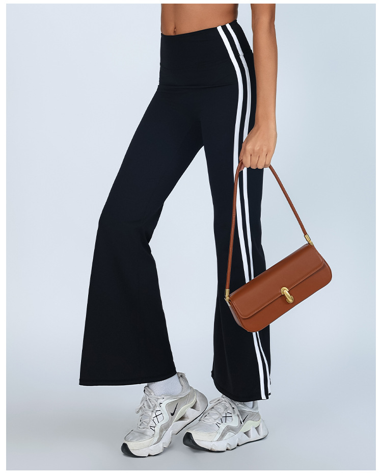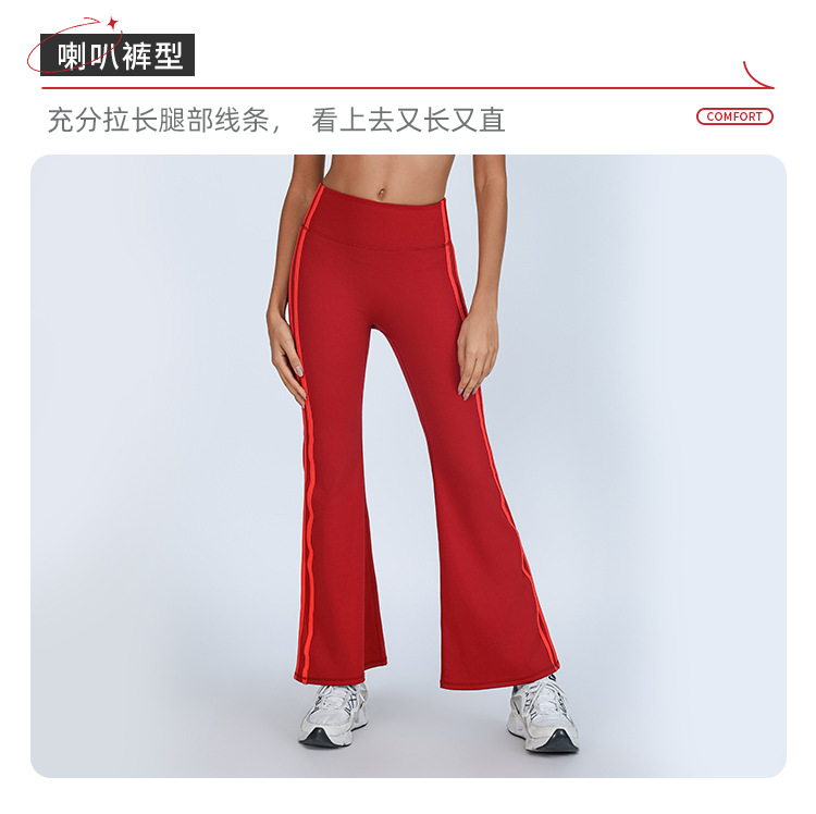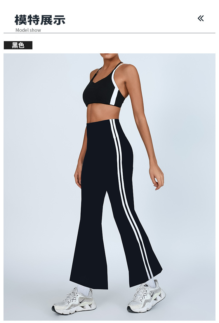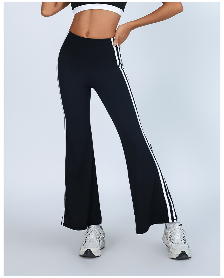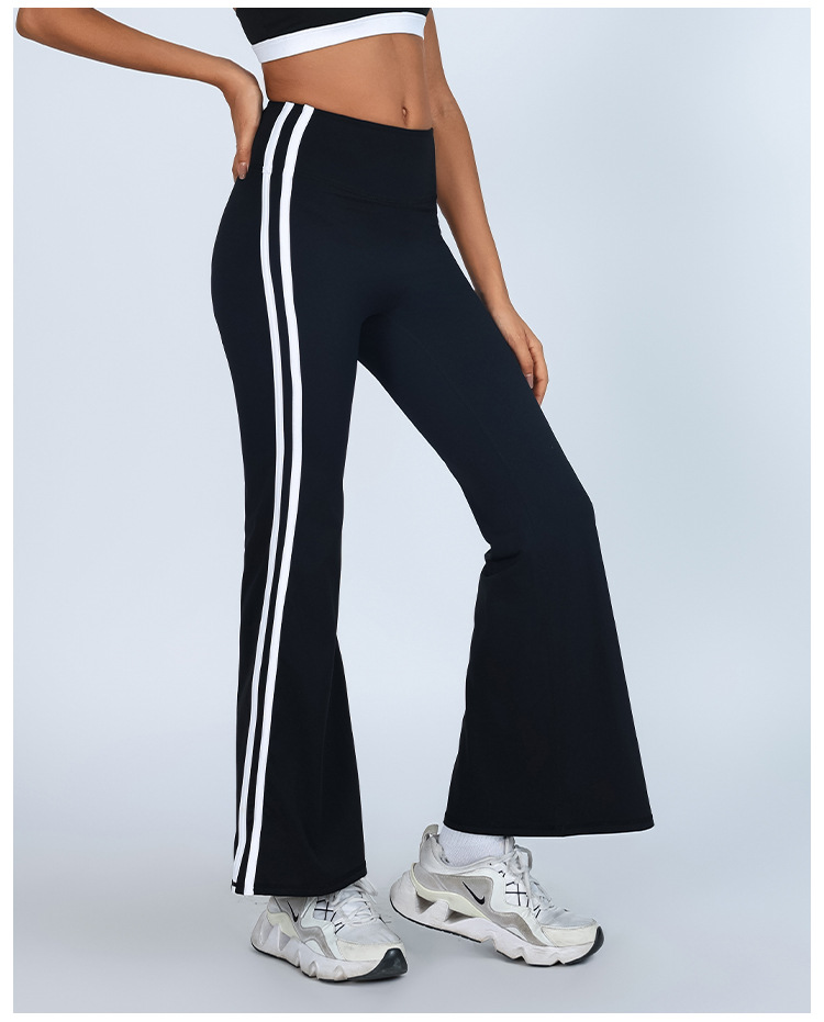 Pantalones de microyoga de cadera de melocotón de estilo europeo y americano, cintura alta, contraste de color blanco, deportes, fitness, pantalones acampanados de secado rápido de alta elasticidad
