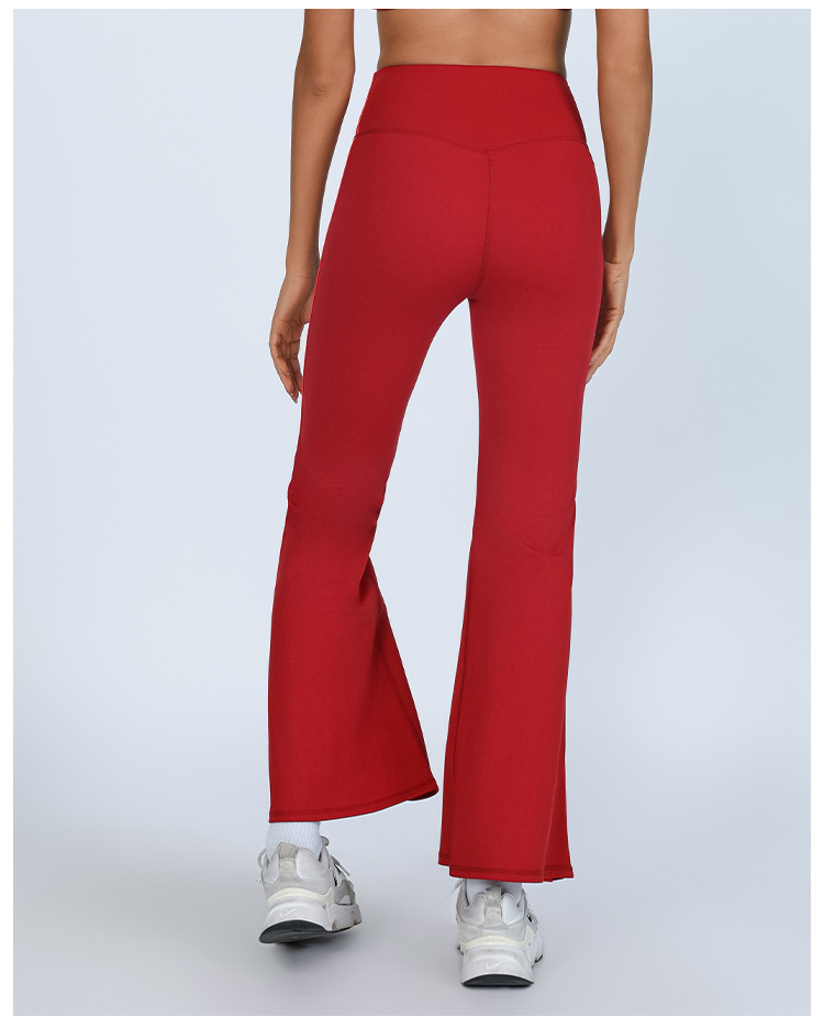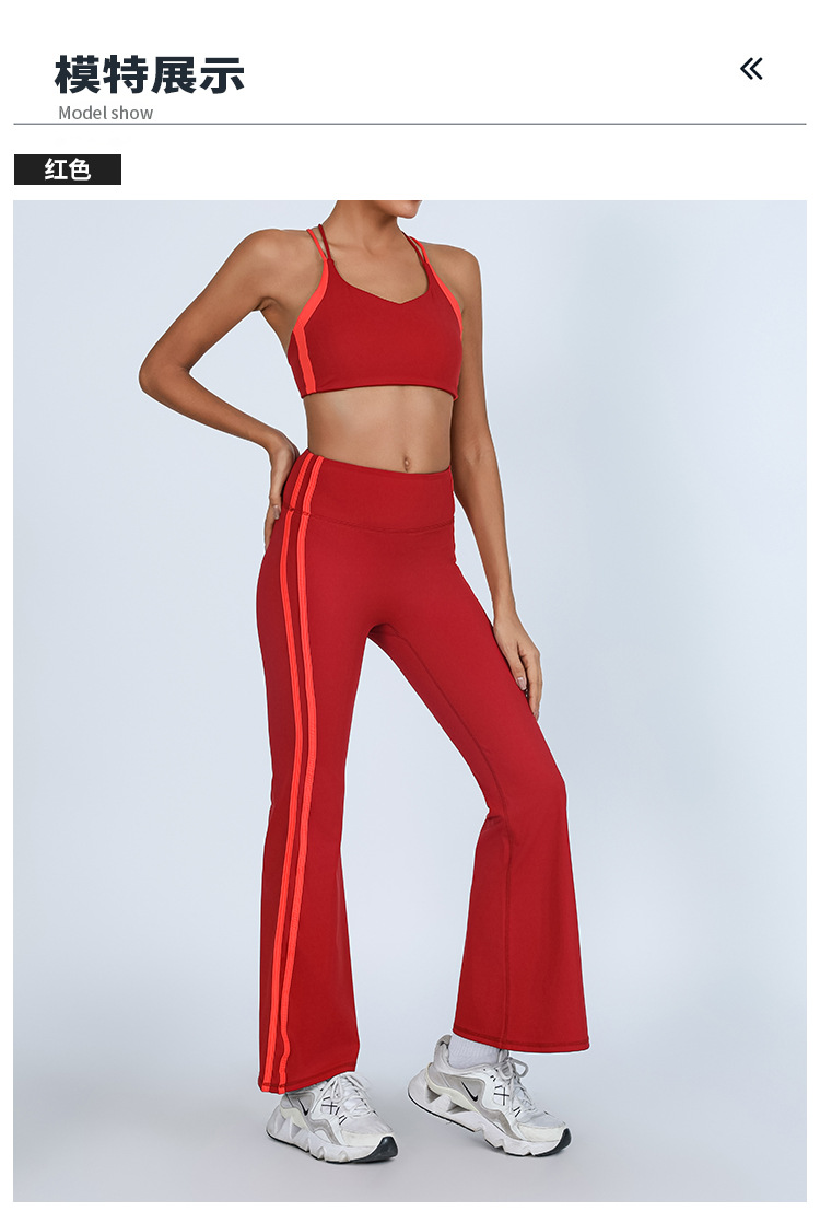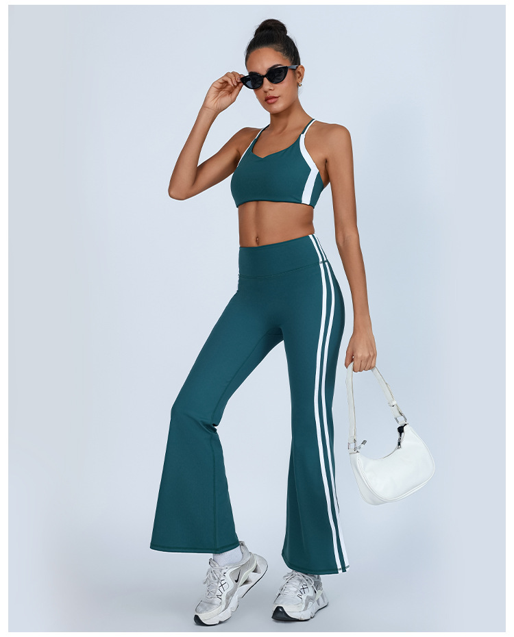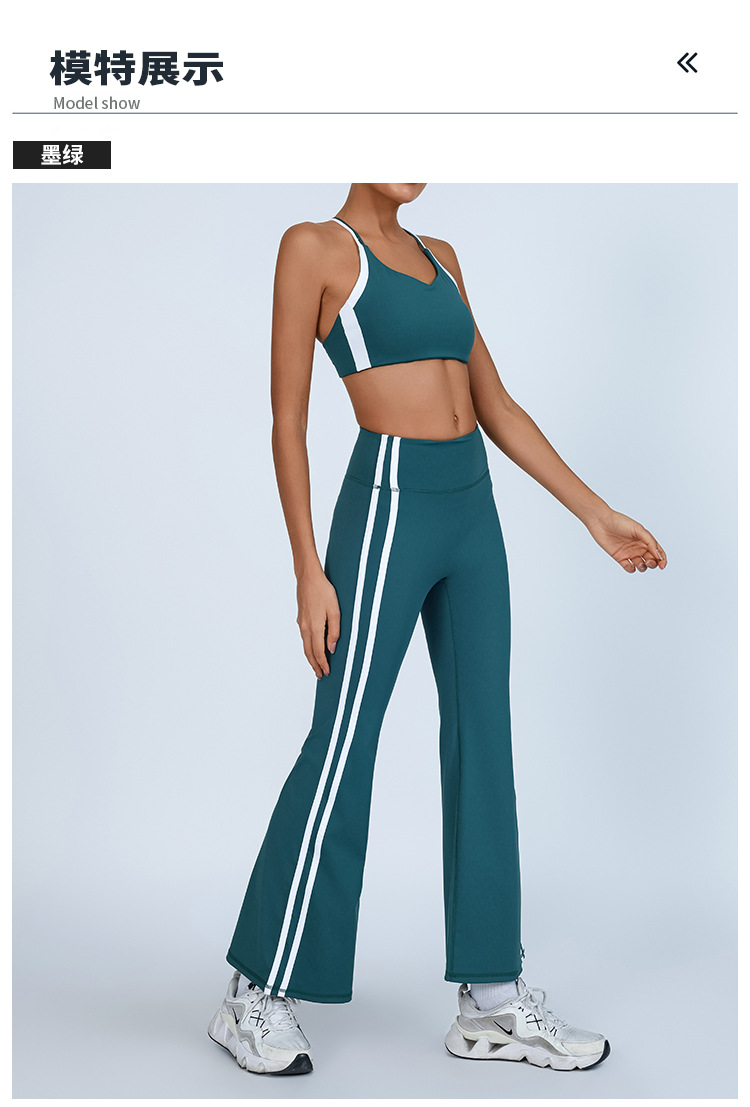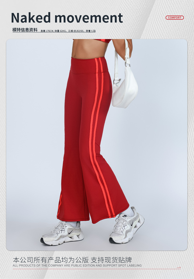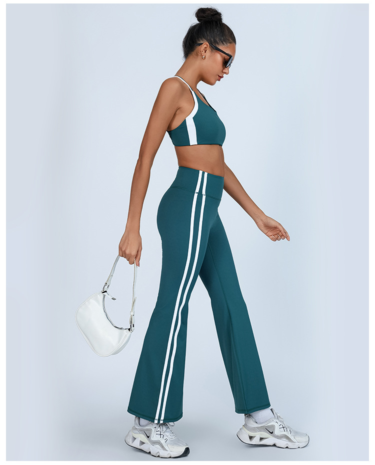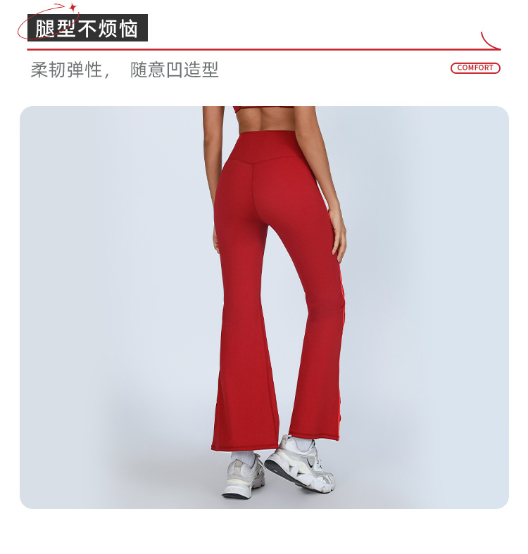 Pantalones de microyoga de cadera de melocotón de estilo europeo y americano, cintura alta, contraste de color blanco, deportes, fitness, pantalones acampanados de secado rápido de alta elasticidad