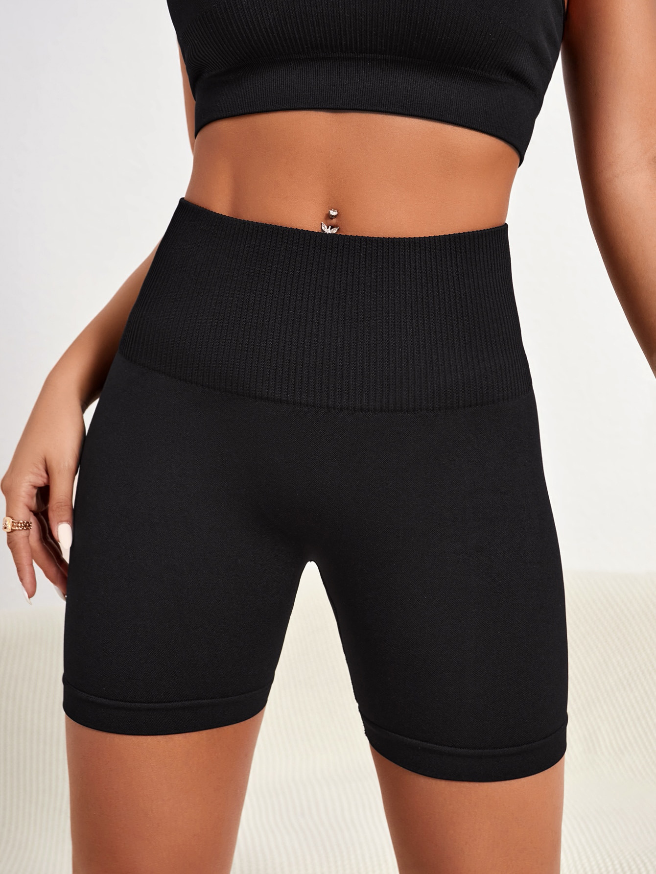 Europa y América de alta cintura transpirable levantamiento de la cadera vientre contracción quinto pantalones de punto sin costuras de secado rápido fitness yoga pantalones cortos para correr