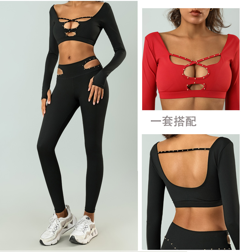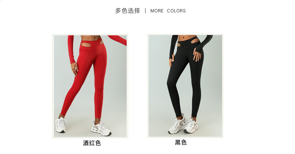 Pantalones de yoga transfronterizos de comercio exterior europeos y americanos pantalones de yoga de mujer huecos elásticos de secado rápido de cintura media-alta Reparación de piernas fitness deportes pantalones cortos