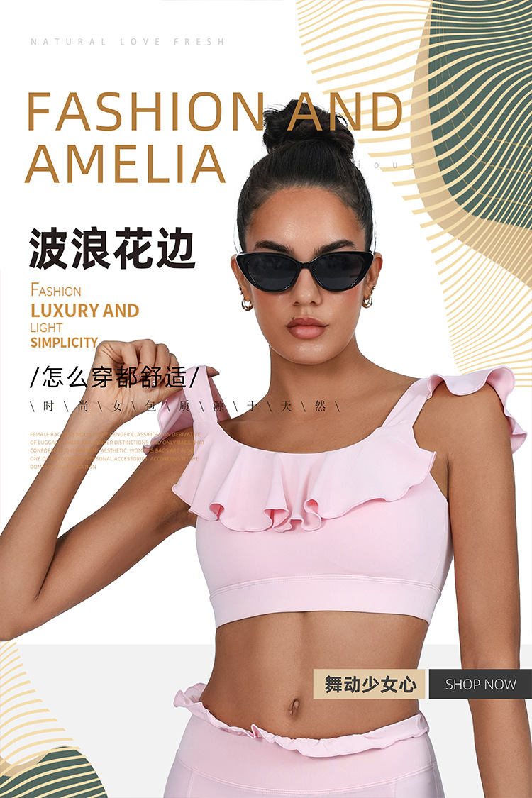 Top de yoga transfronterizo para mujeres envueltas en el pecho a prueba de choque, borde desnudo, secado rápido, chaleco de cintura alta, sujetador deportivo de fitness