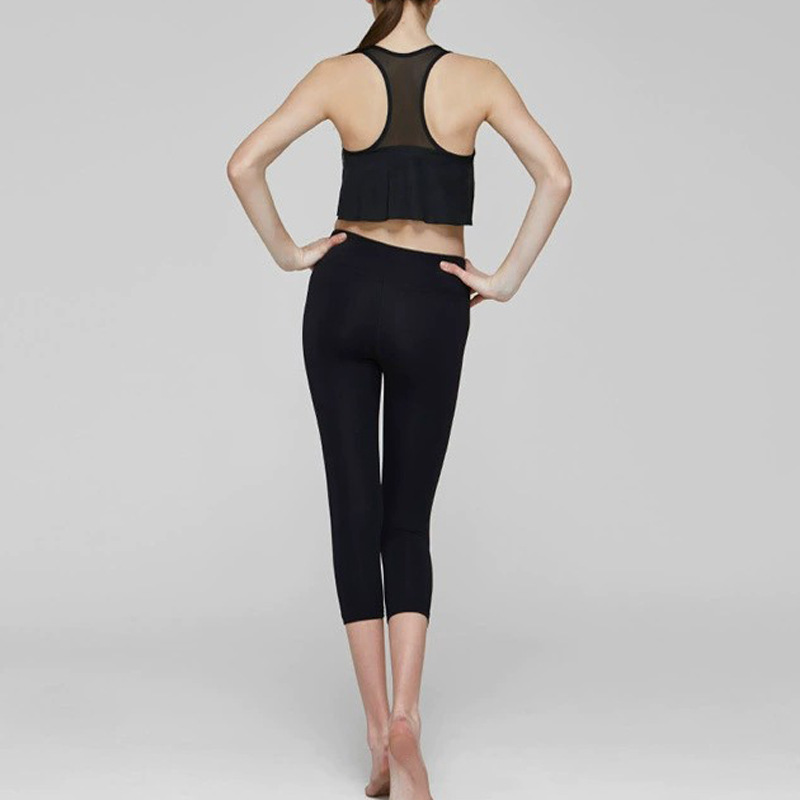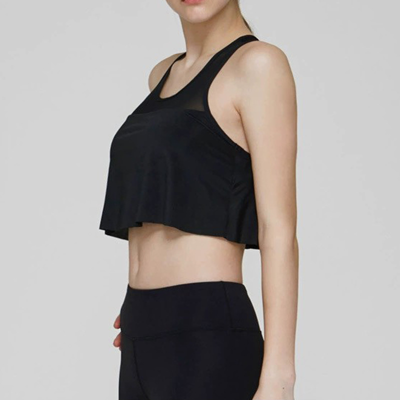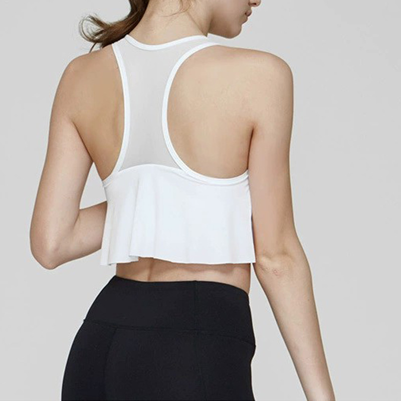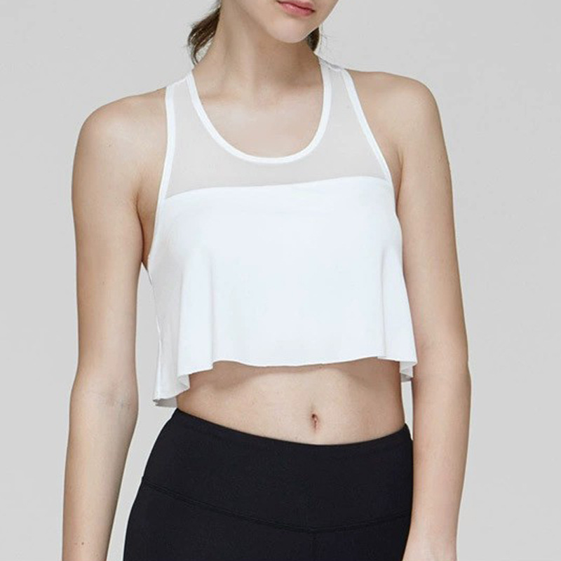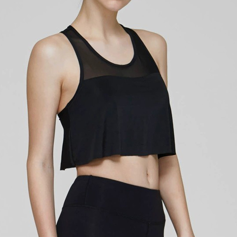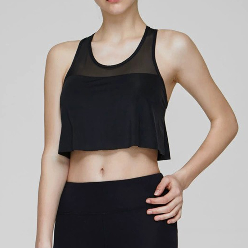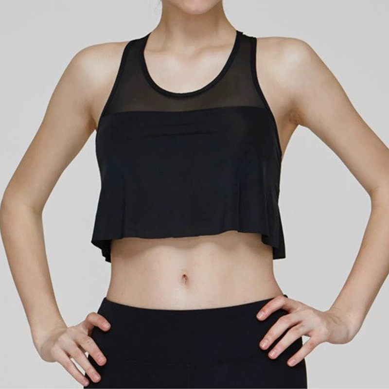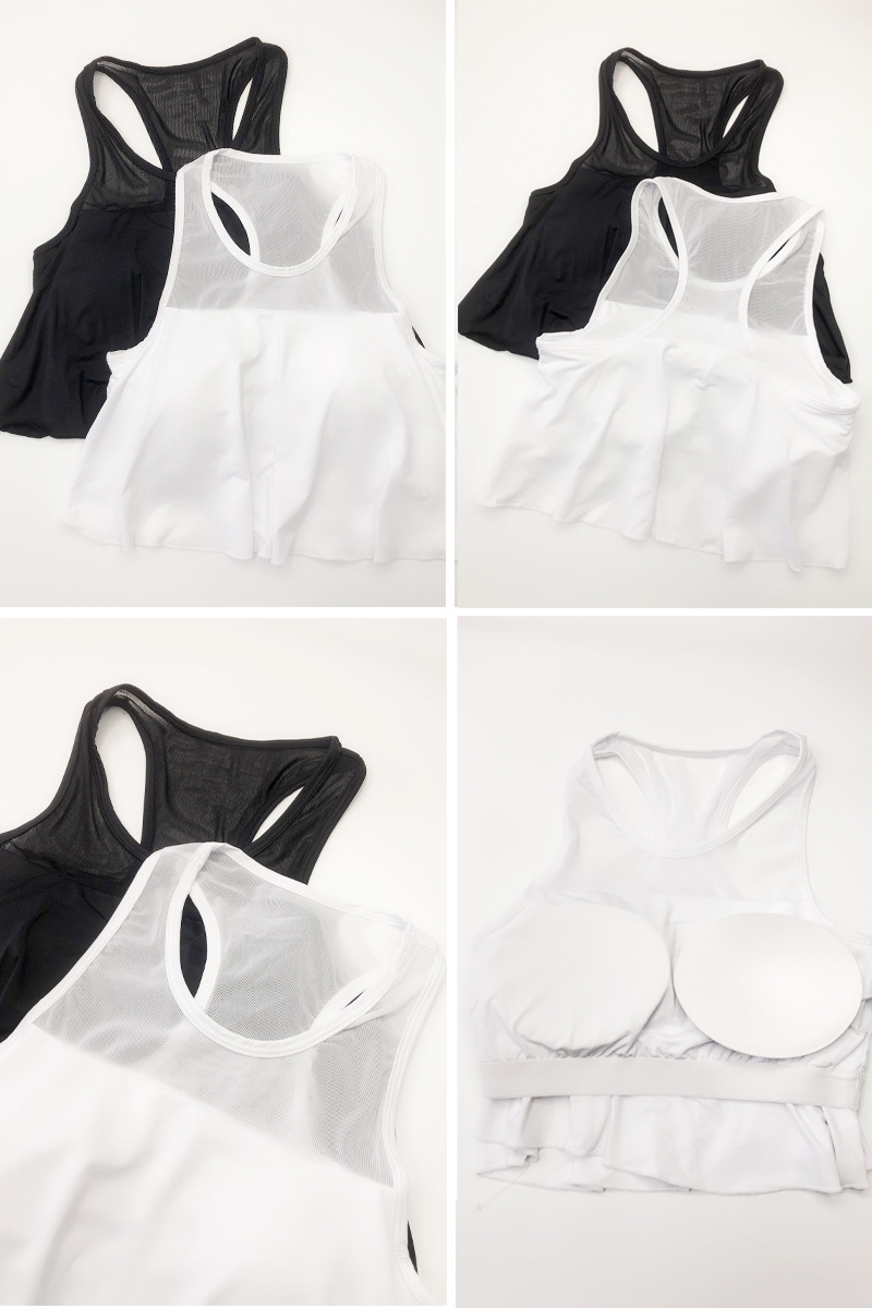 Chaleco de yoga de comercio exterior costura de malla para mujer alta elasticidad y secado rápido elegante con almohadilla para el pecho top de entrenamiento de baile de fitness deportivo