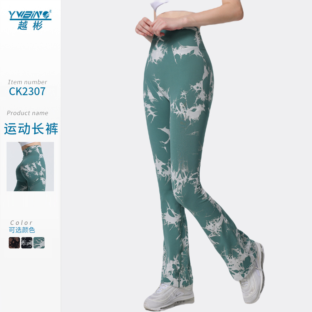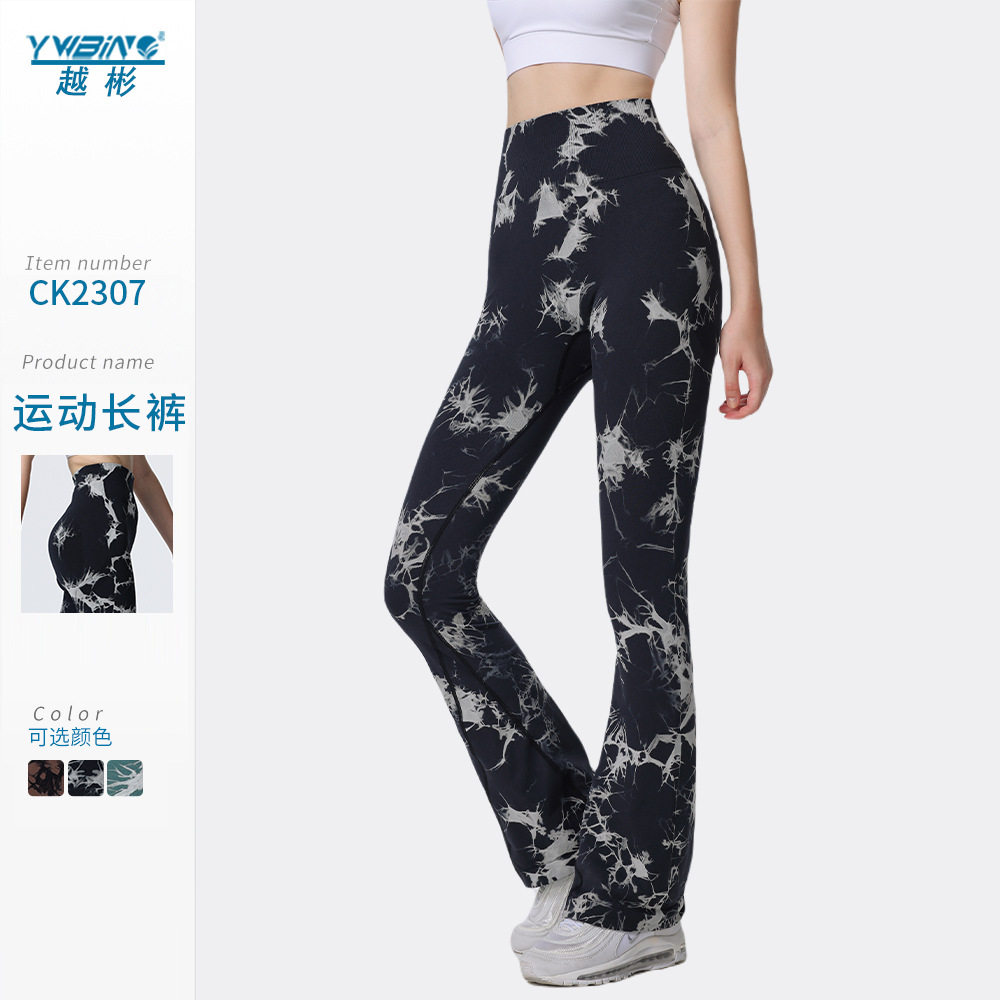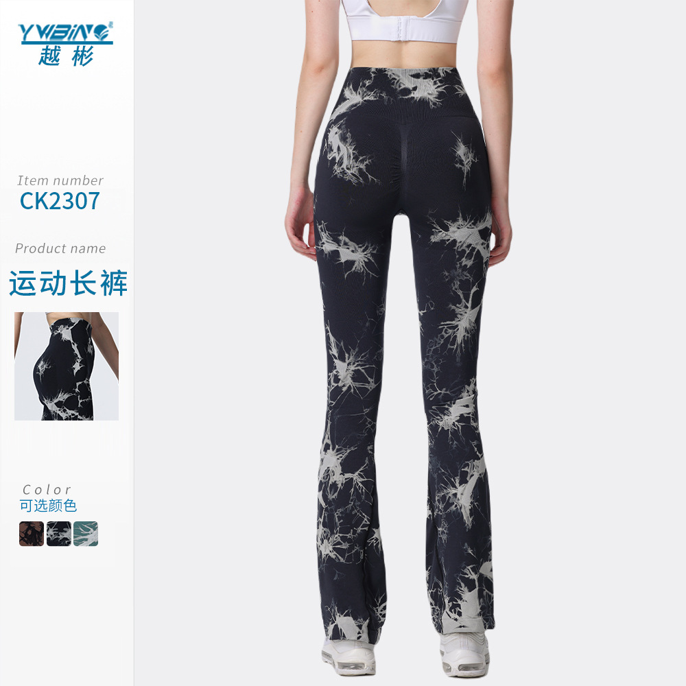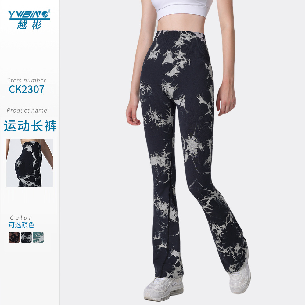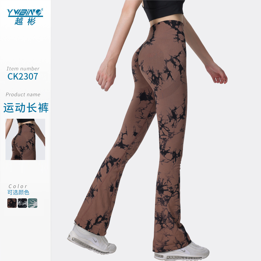 Nuevo en stock pantalones acampanados de deriva teñidos con lazo de punto sin costuras pantalones de fitness de levantamiento de cadera pantalones de yoga de alta elasticidad de secado rápido