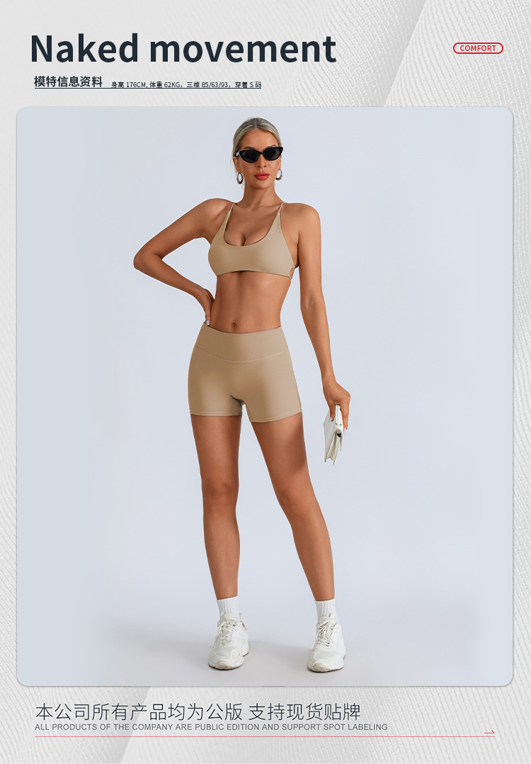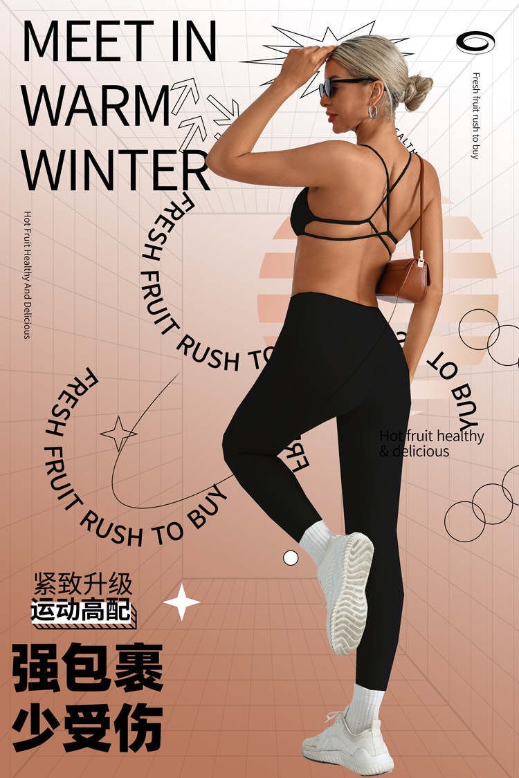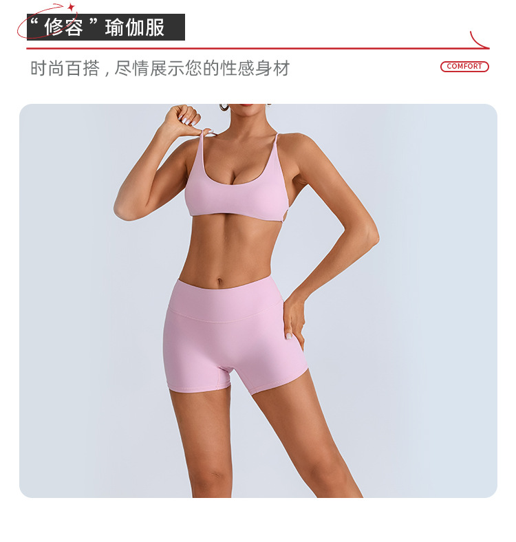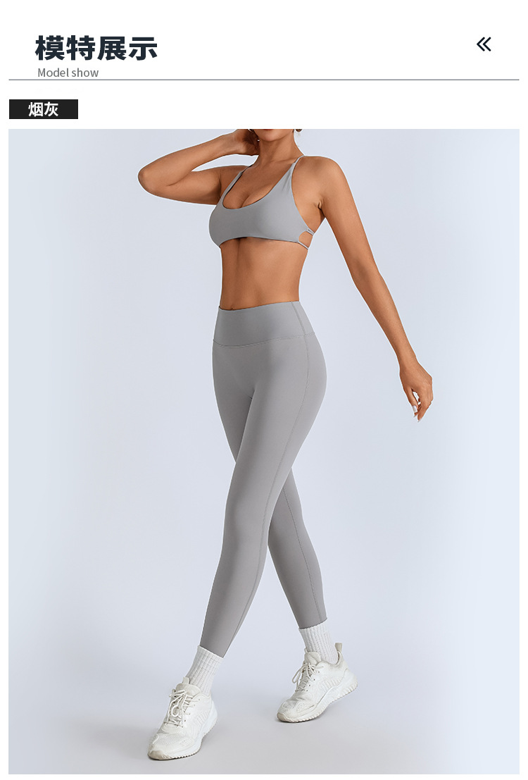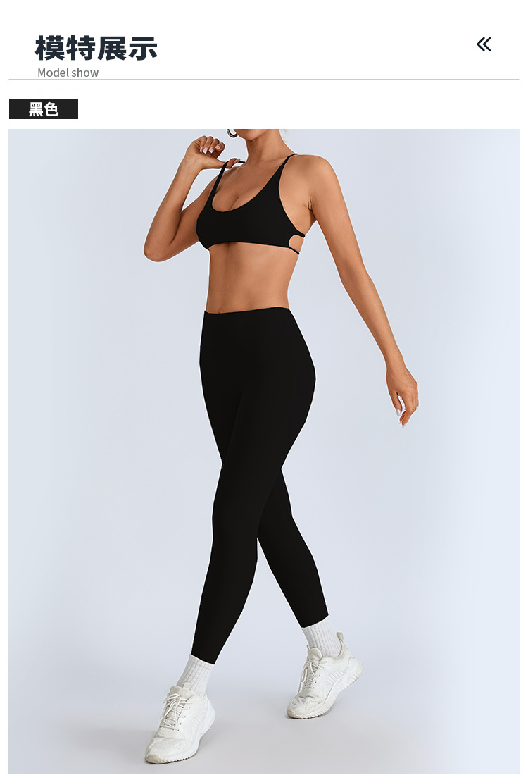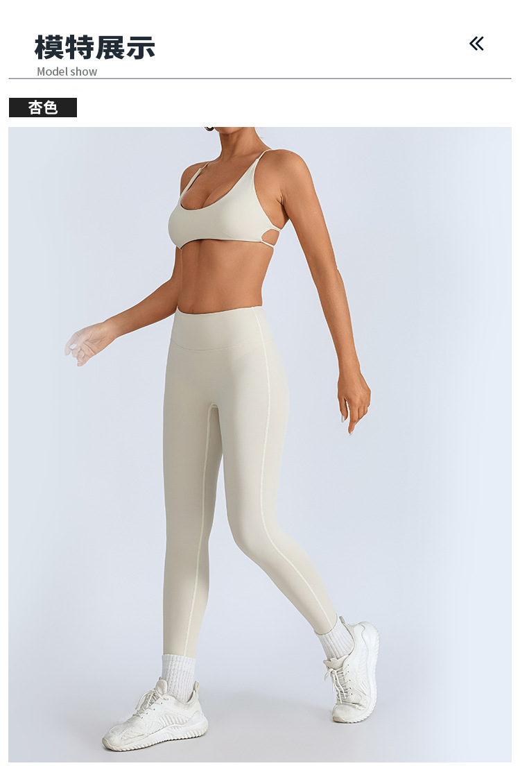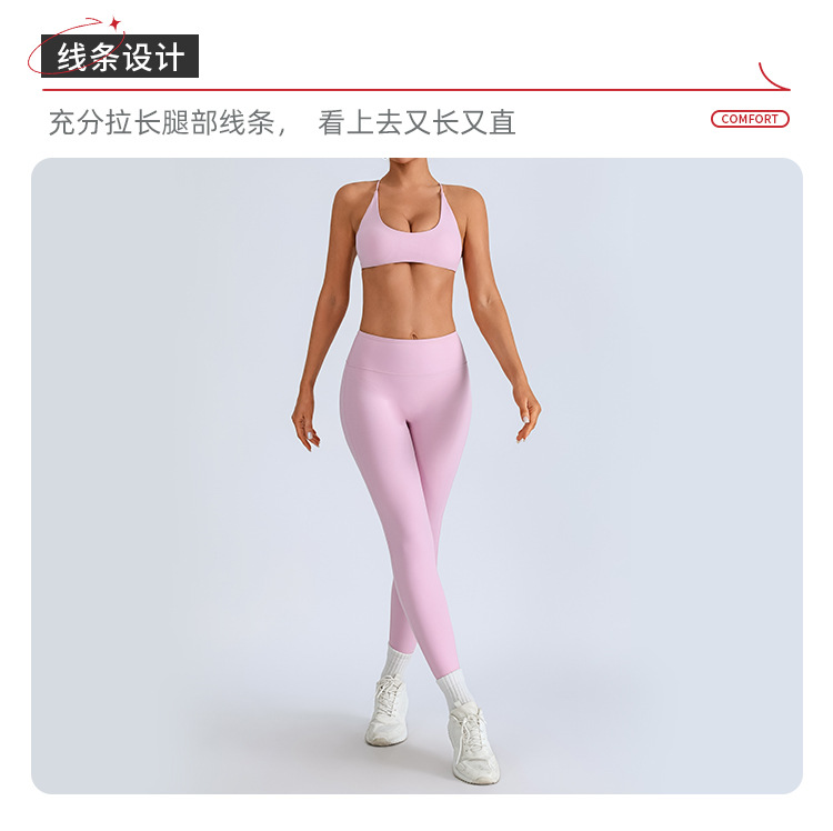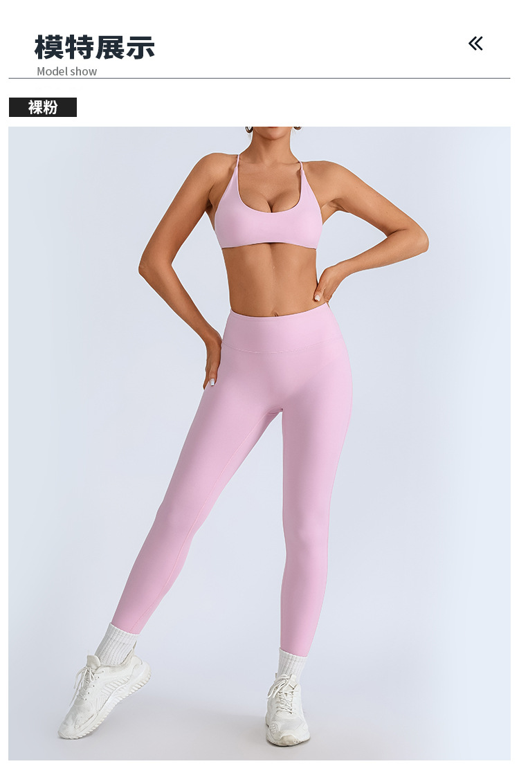 Traje de yoga europeo y americano transfronterizo, espalda hermosa con almohadilla para el pecho, sujetador con tirantes cruzados, pantalones deportivos de secado rápido de melocotón de cintura alta