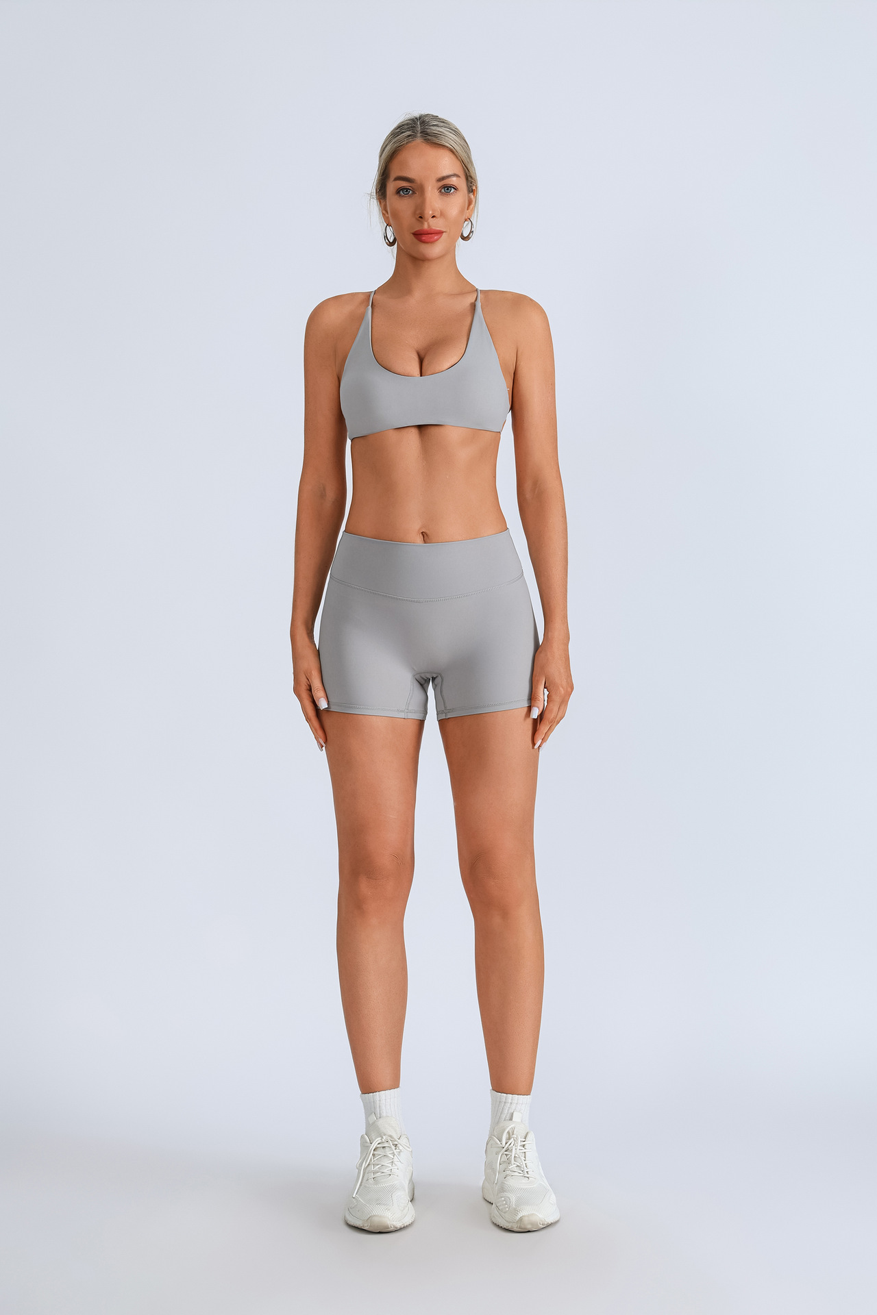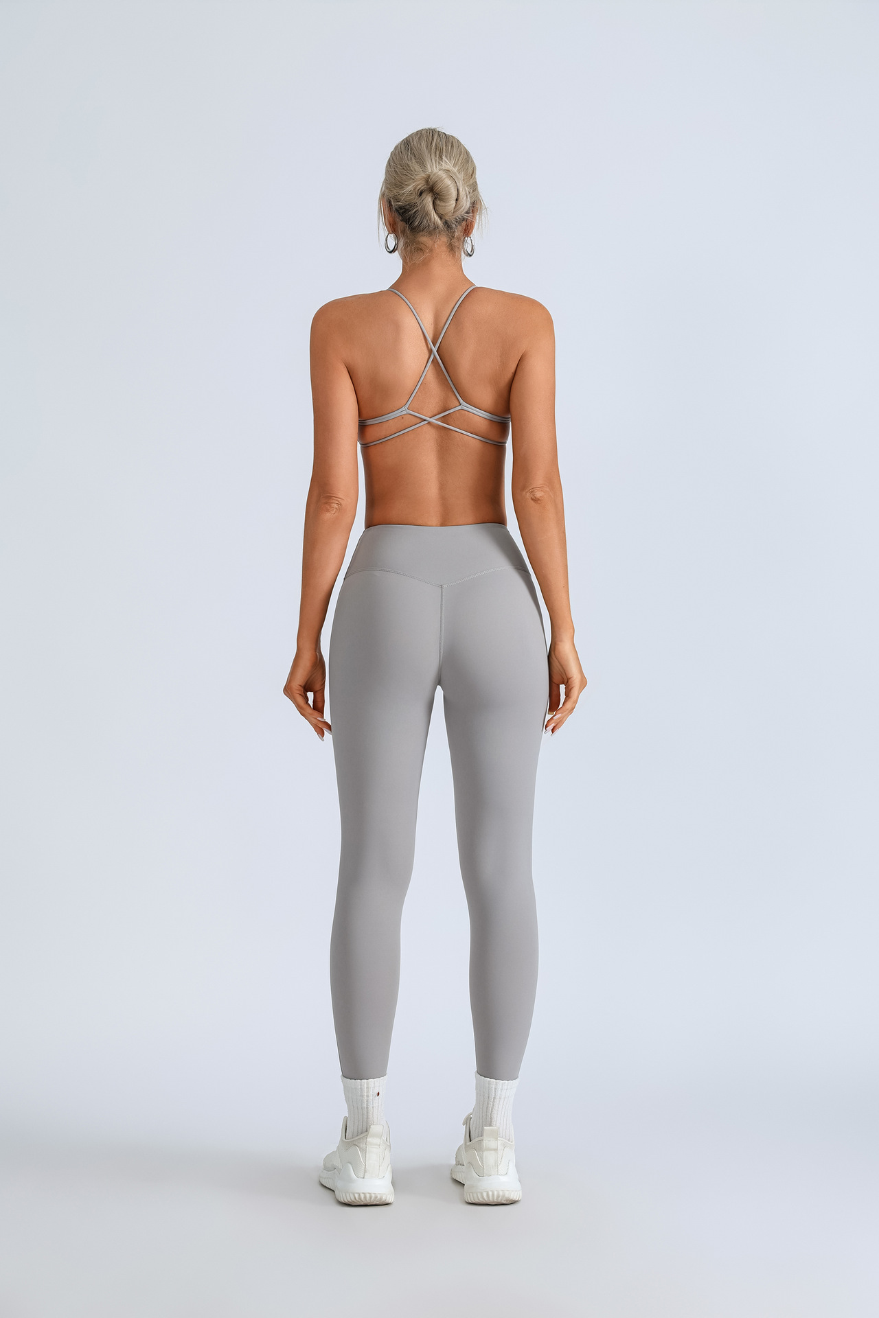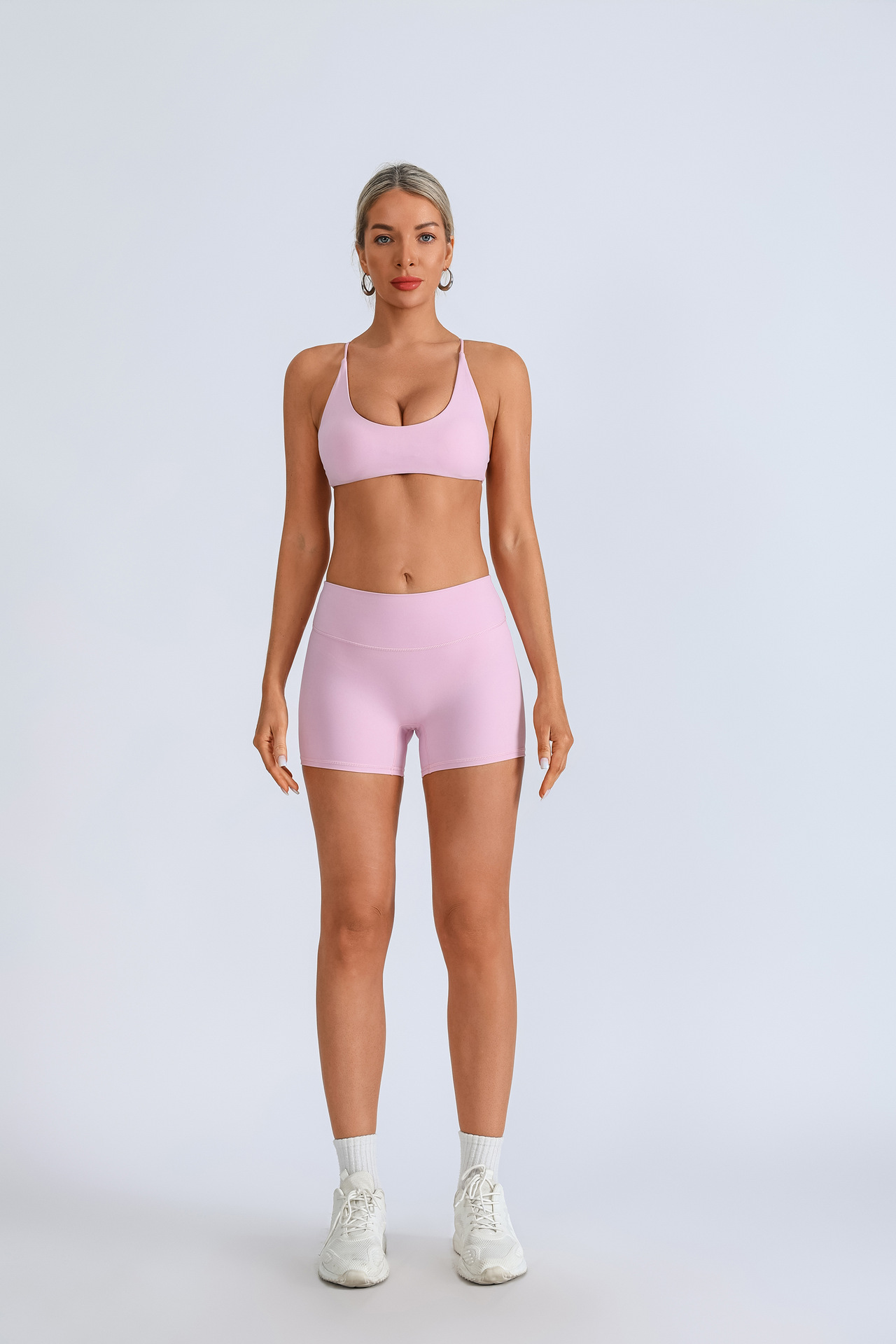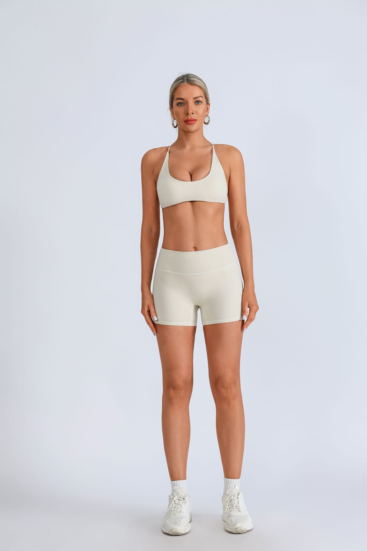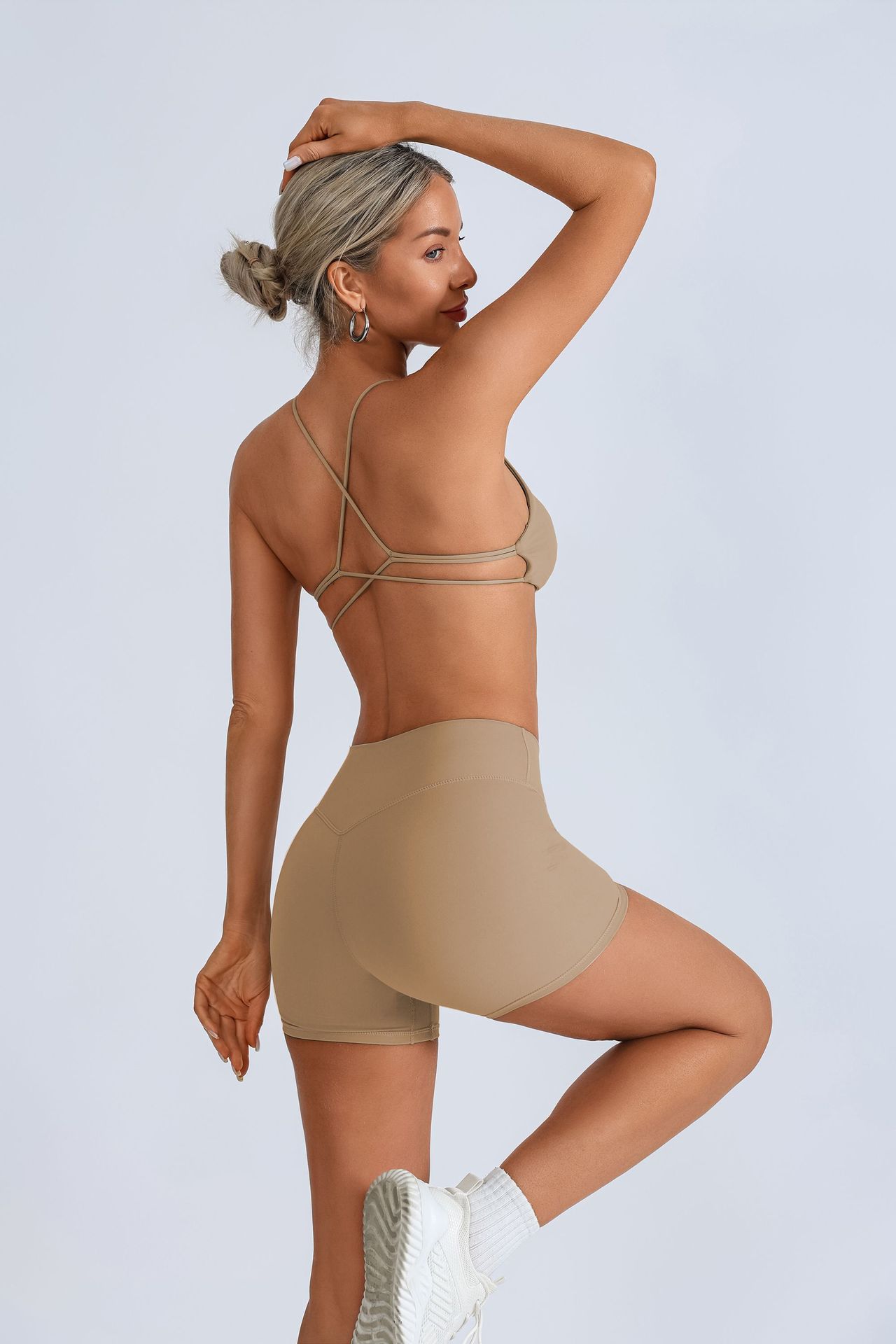 Traje de yoga europeo y americano transfronterizo, espalda hermosa con almohadilla para el pecho, sujetador con tirantes cruzados, pantalones deportivos de secado rápido de melocotón de cintura alta