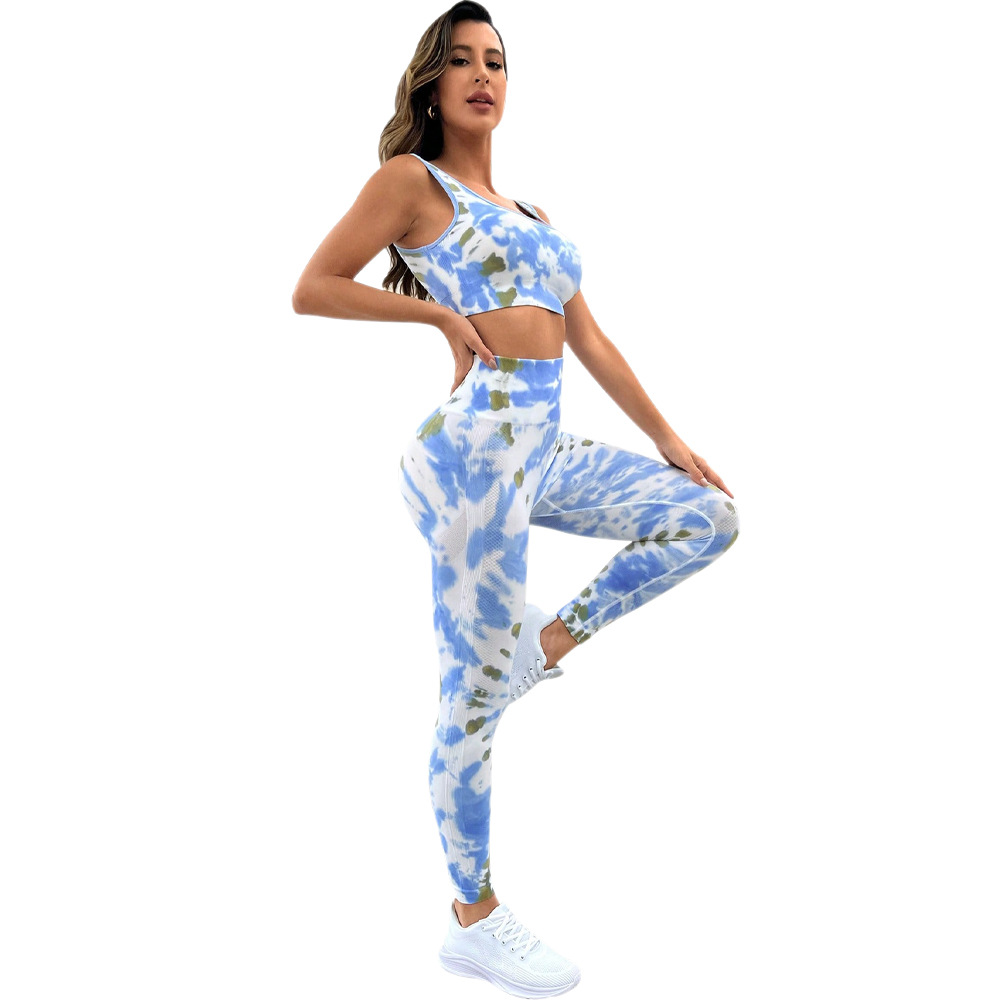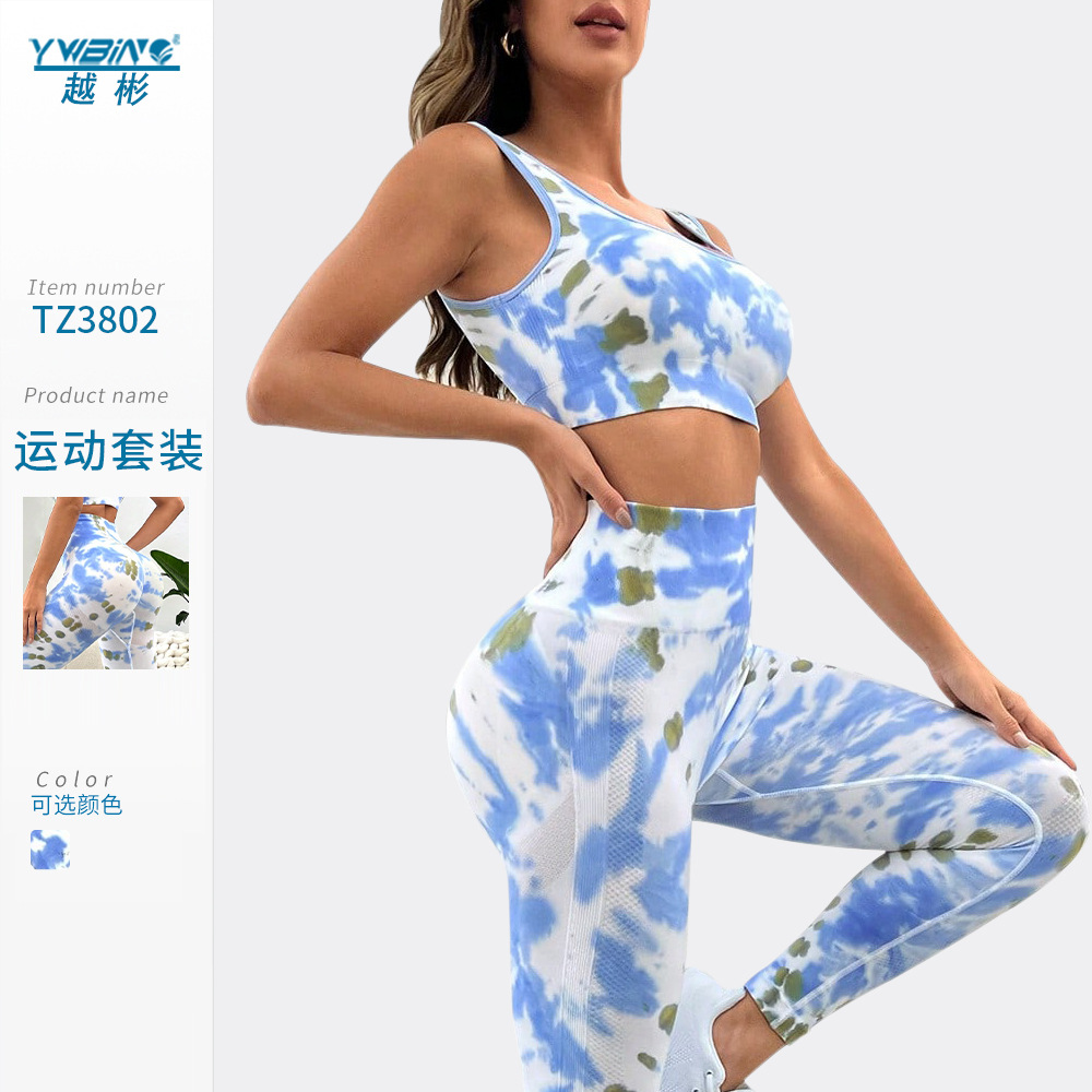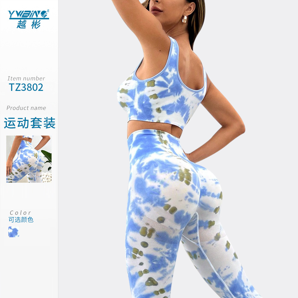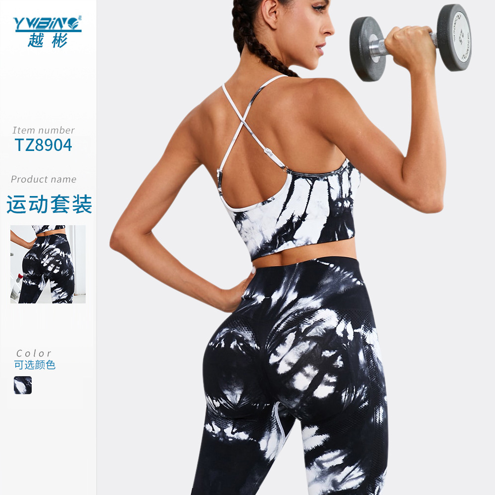 Corbata sin costuras flor ropa de yoga transfronteriza apretado traje de secado rápido de las mujeres sexy sujetador elástico alto levantamiento de la cadera fitness Pantalones deportivos