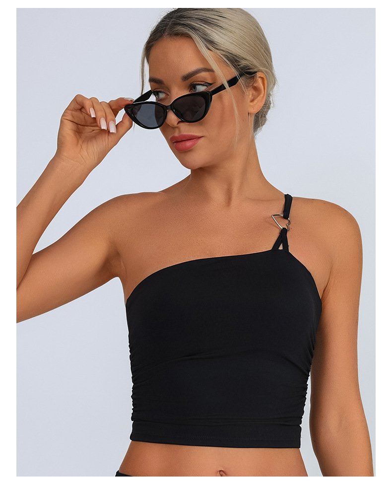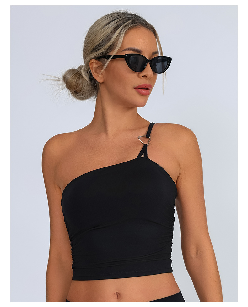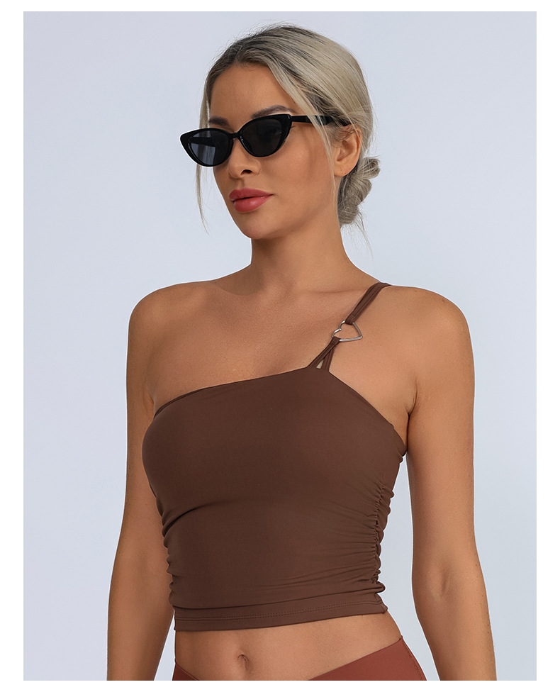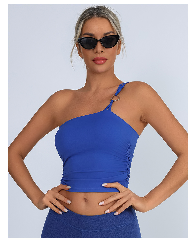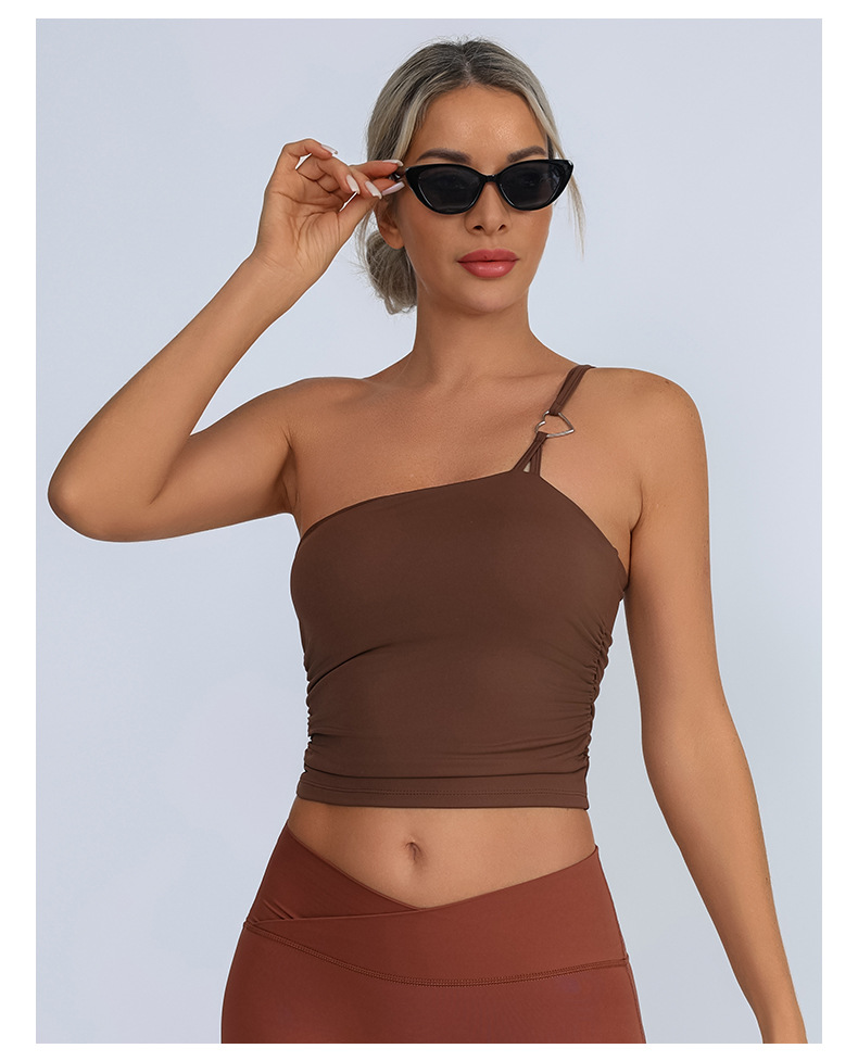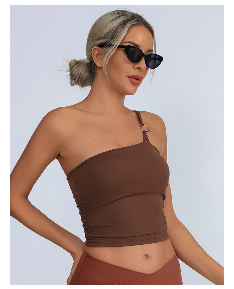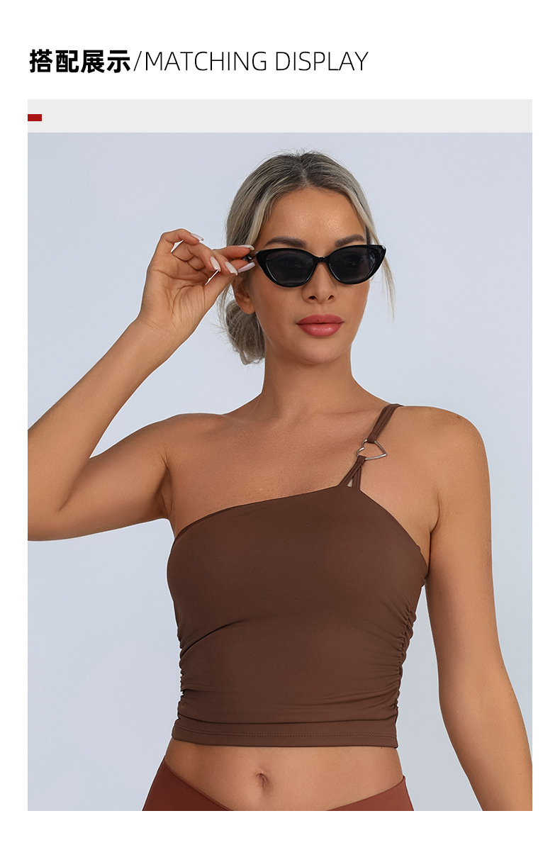 Europa y Estados Unidos comercio exterior transfronterizo nuevo chaleco deportivo de acondicionamiento físico mujer con almohadilla de pecho un hombro ropa de yoga de pecho