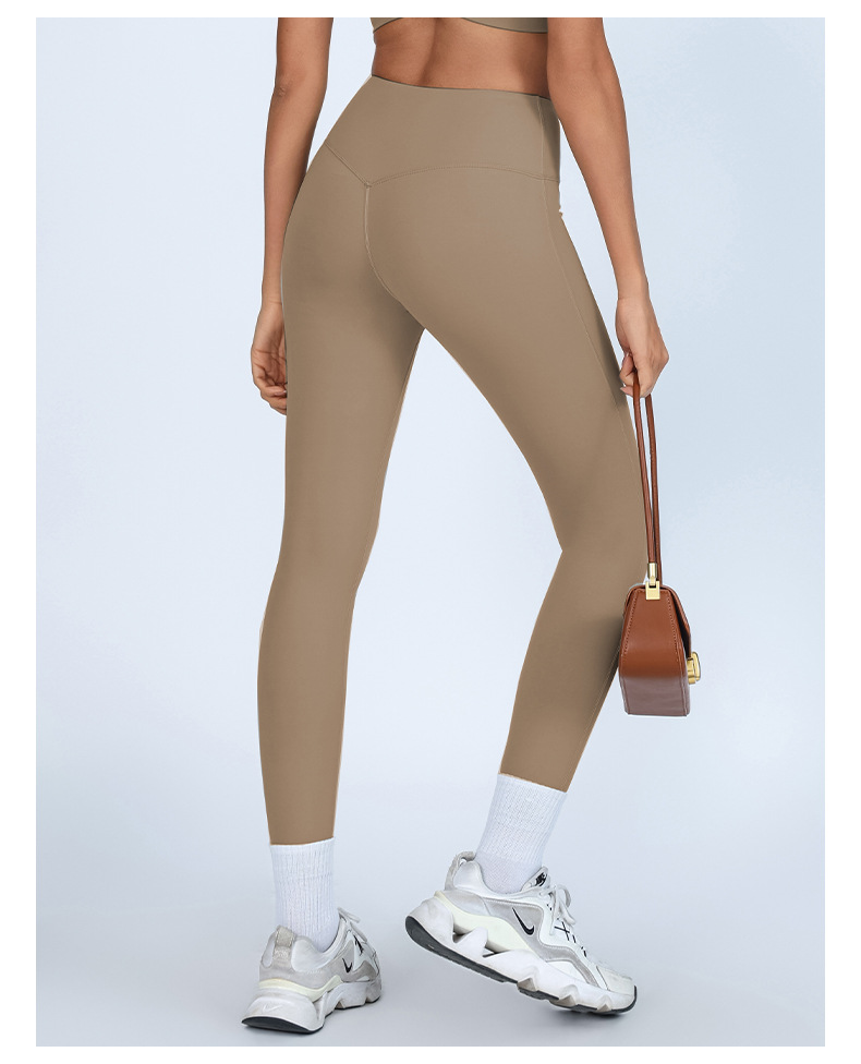 Pantalones básicos desnudos de yoga sin líneas avergonzadas, pantalones de gimnasio de cadera para correr, pantalones deportivos de secado rápido para mujeres