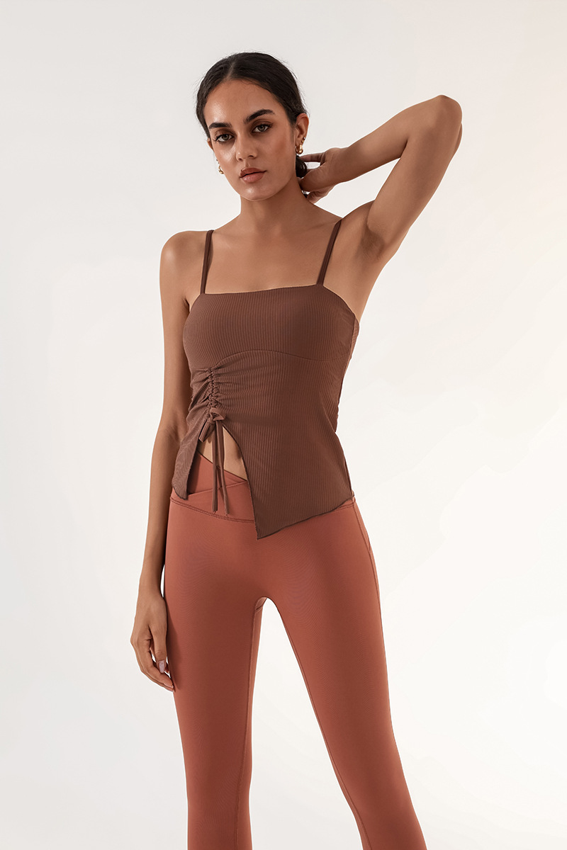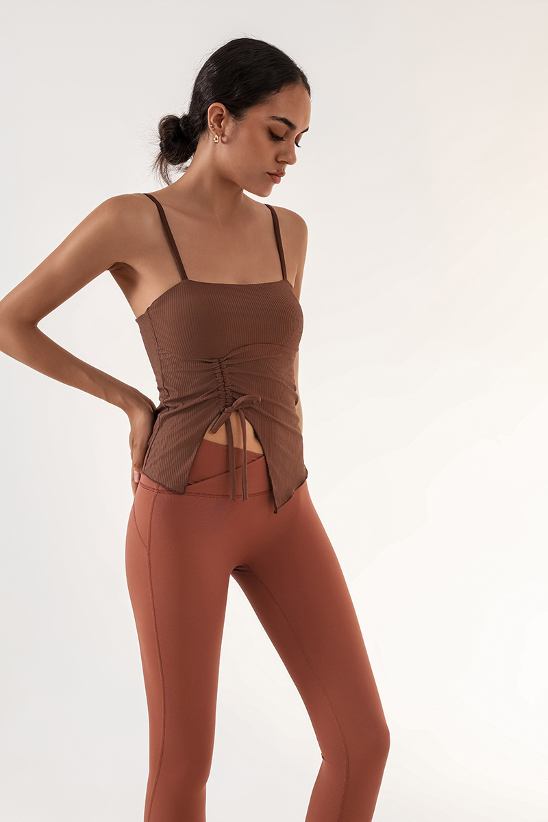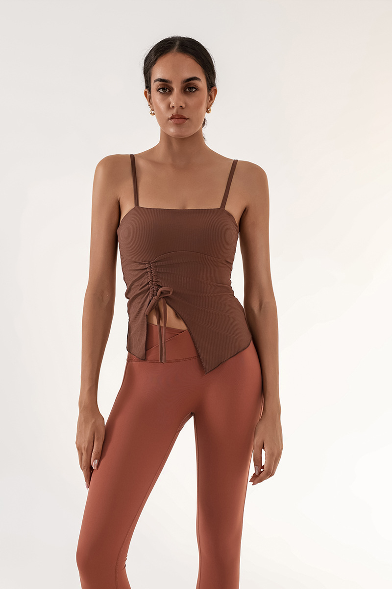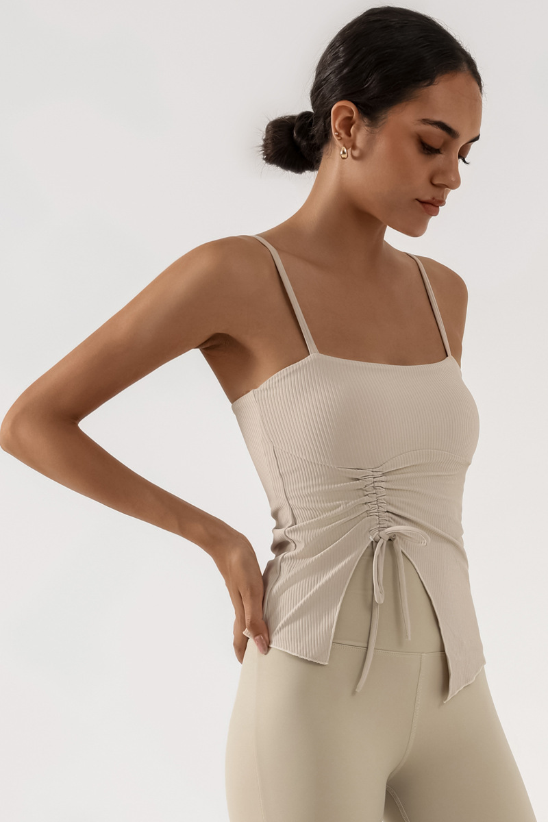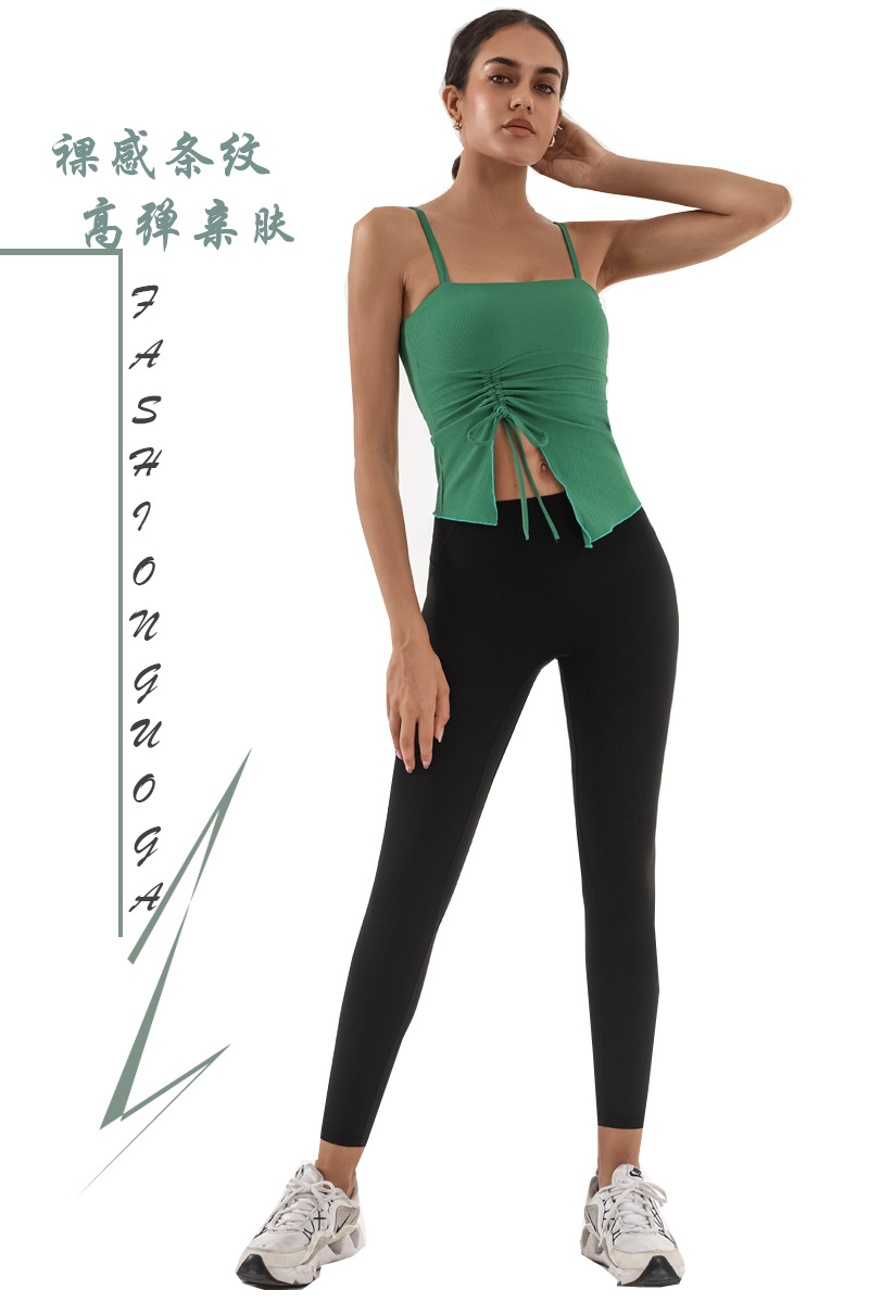Nuevo chaleco de yoga de cinturón de desnudez de mujer con estriado de tracción con cojín de pecho de entrenamiento deportivo de entrenamiento físico camisa de baile