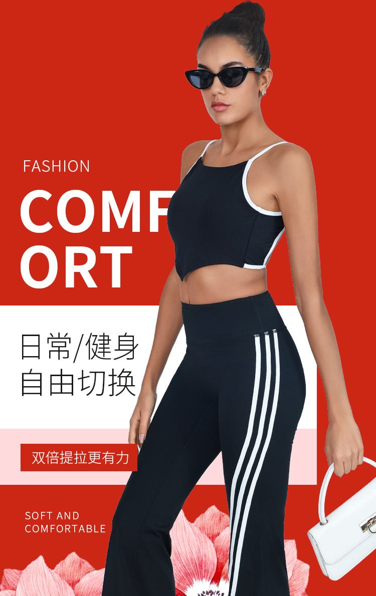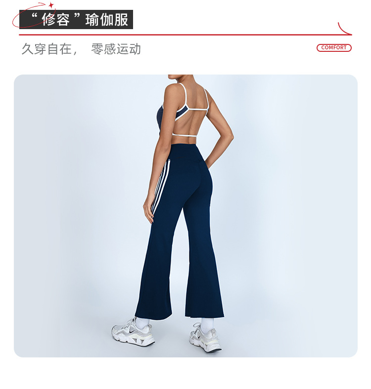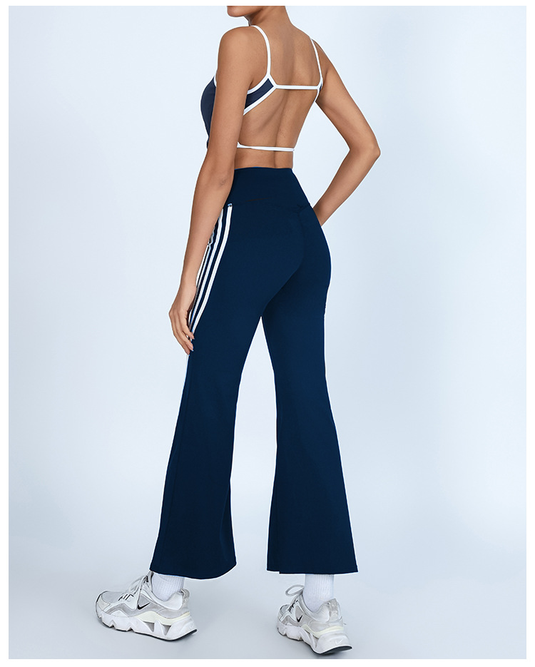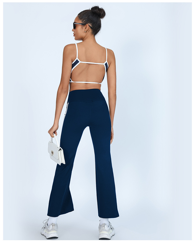 Yoga transfronterizo de comercio exterior, hermosa espalda con almohadilla para el pecho, chaleco deportivo y fitness, pantalón acampanado de secado rápido a juego de color de cintura alta, traje de dos piezas
