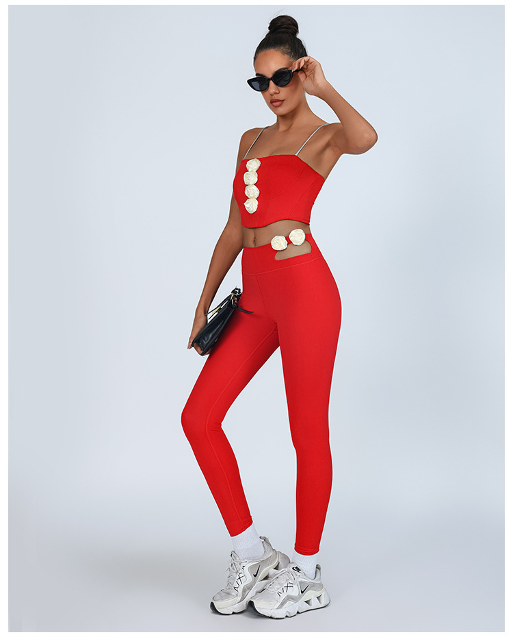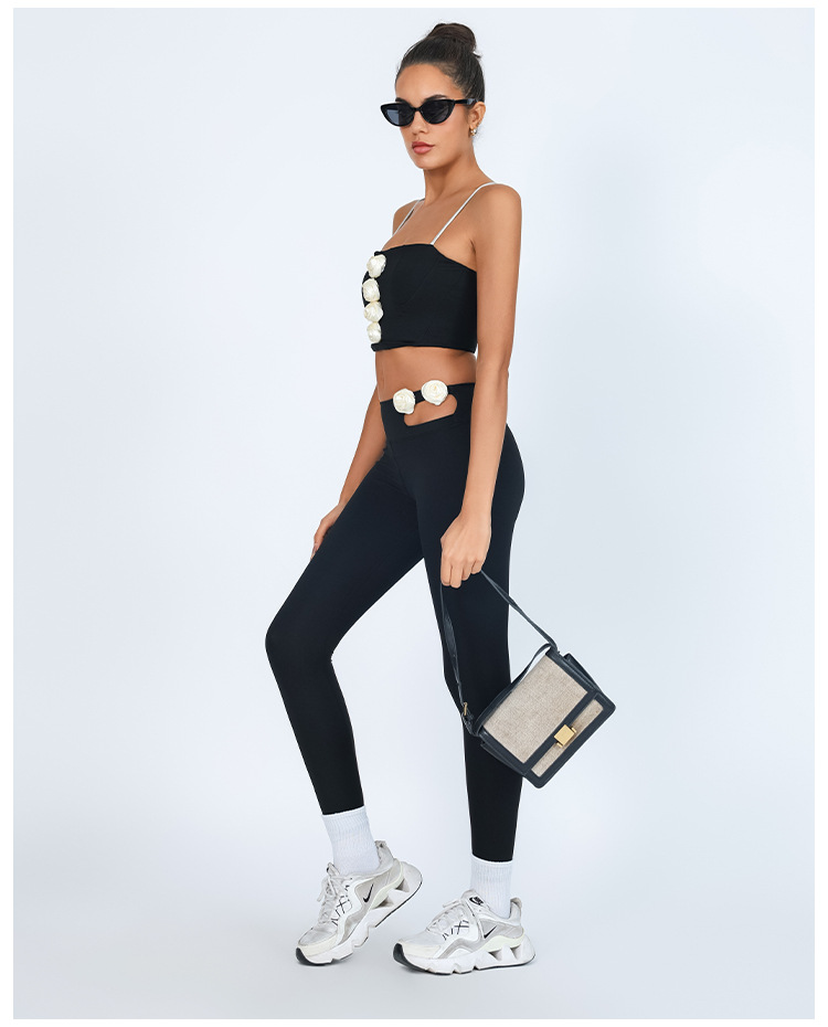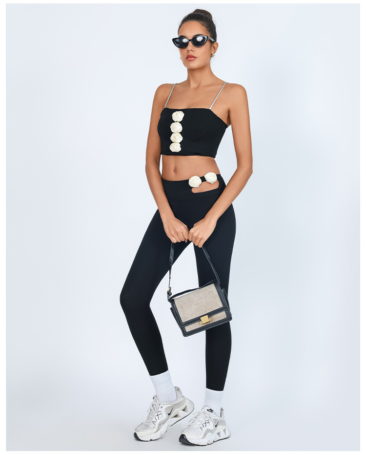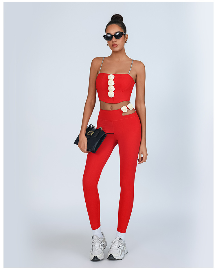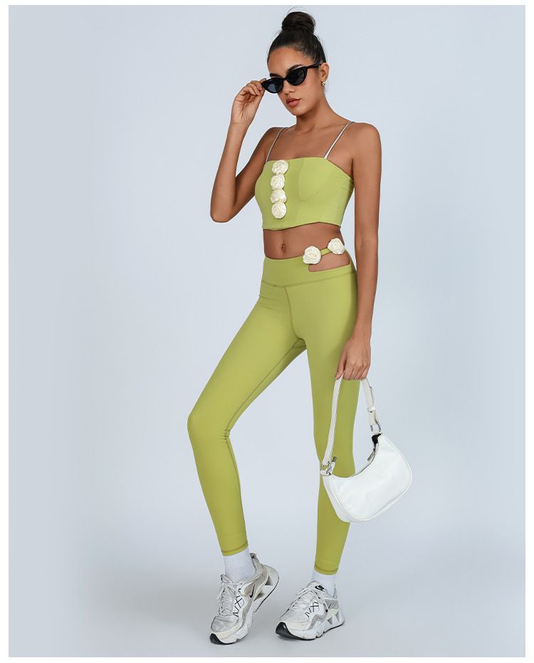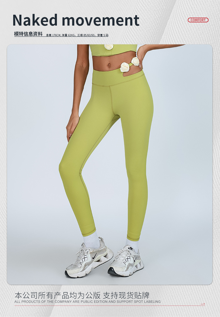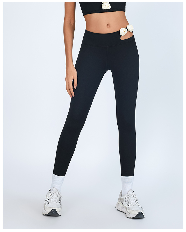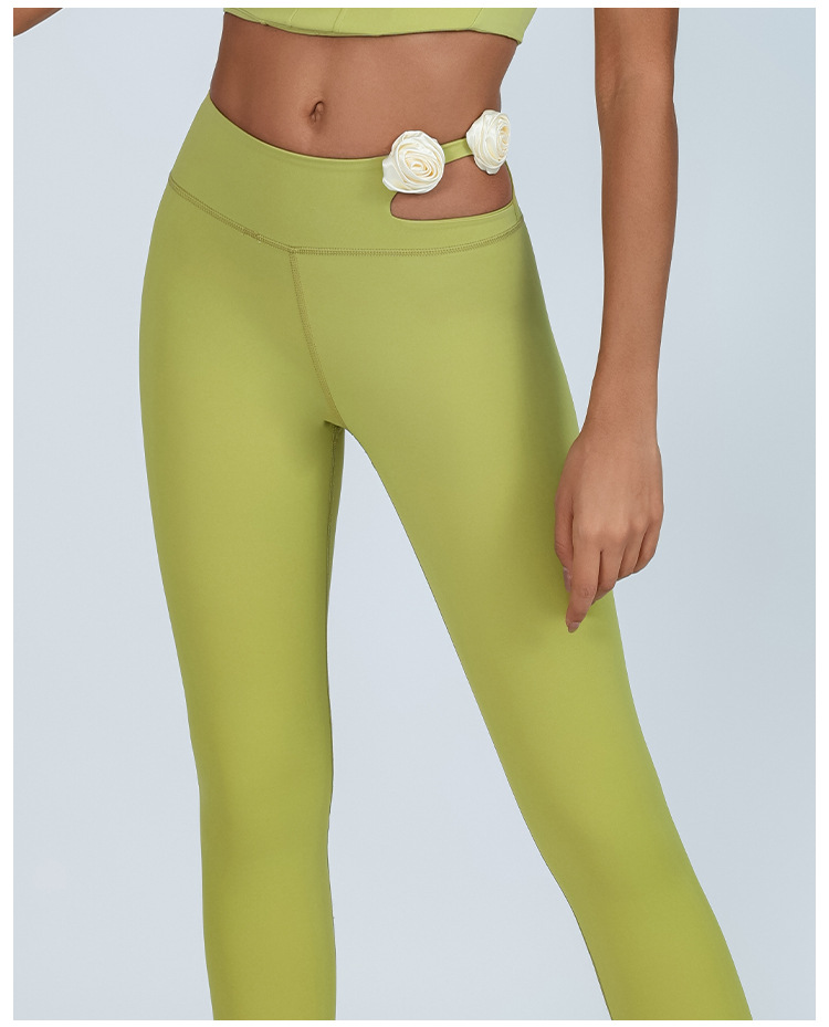 Nuevas flores tridimensionales de Europa y los Estados Unidos, cintura alta, abdomen, caderas, piernas largas, pantalones de yoga de fitness