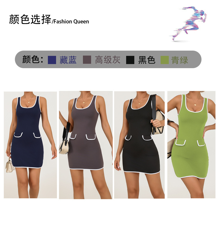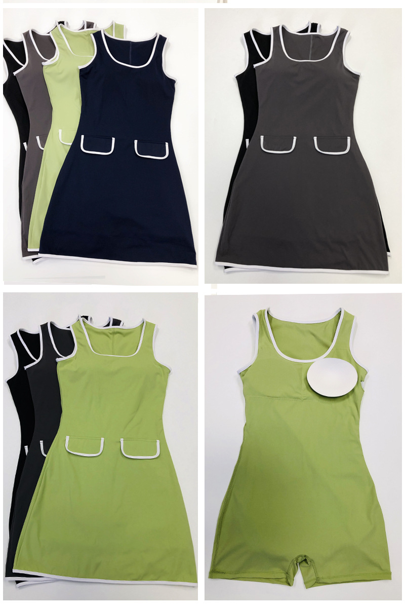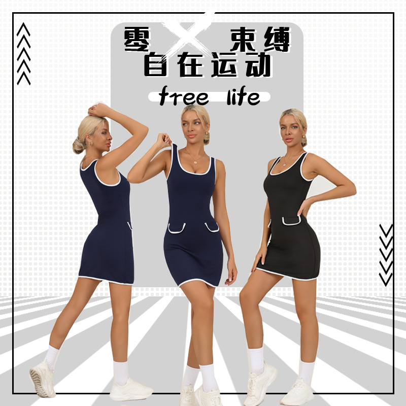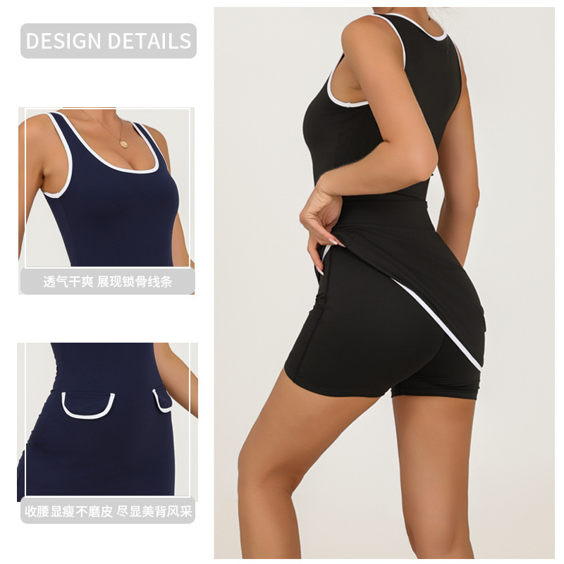 Vestido de una pieza de yoga transfronterizo para mujer, nuevo estilo de verano con solapa a juego, alta elasticidad, secado rápido, ejercicio anti-pérdida, falda de tenis de fitness