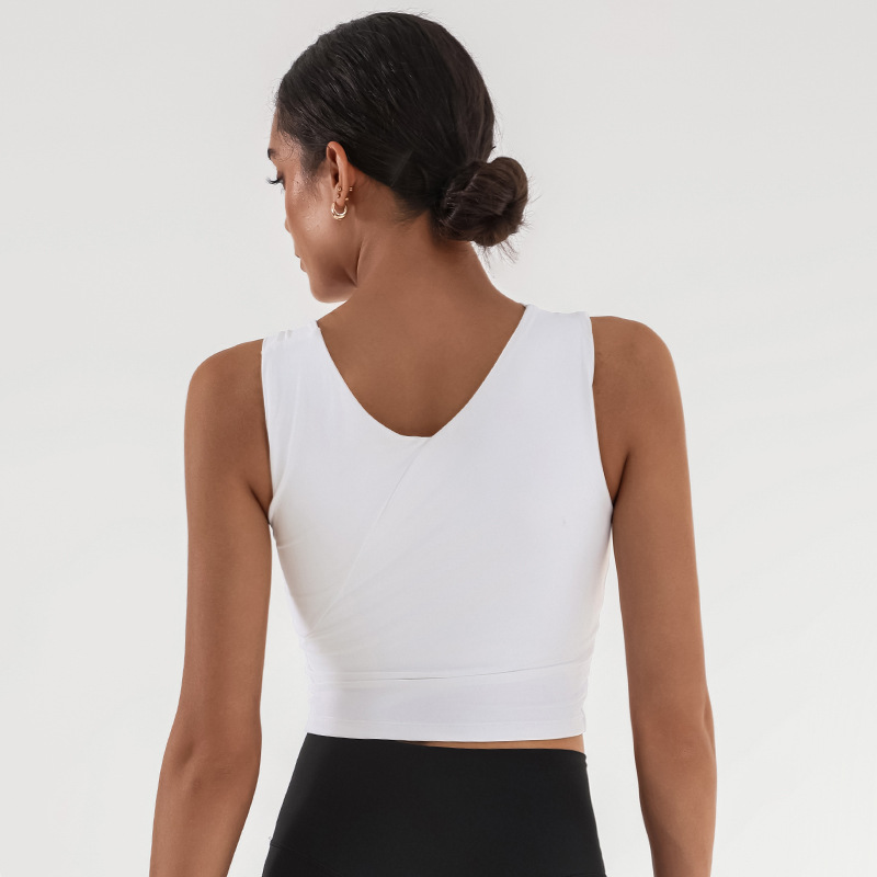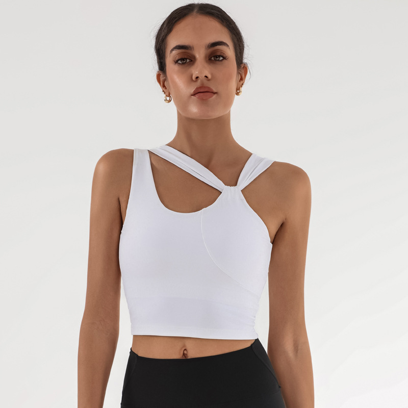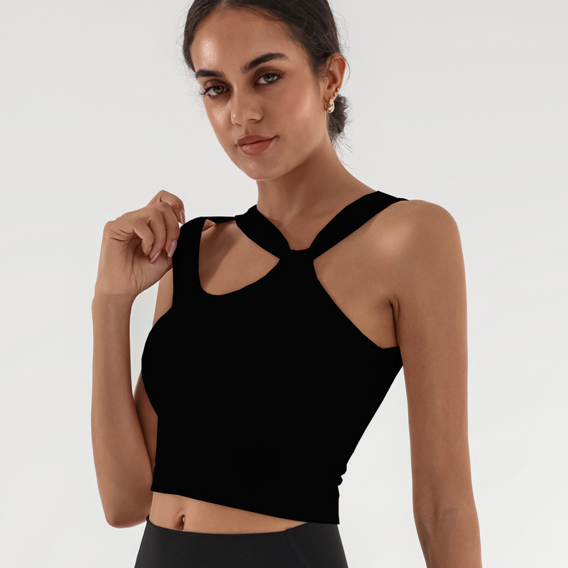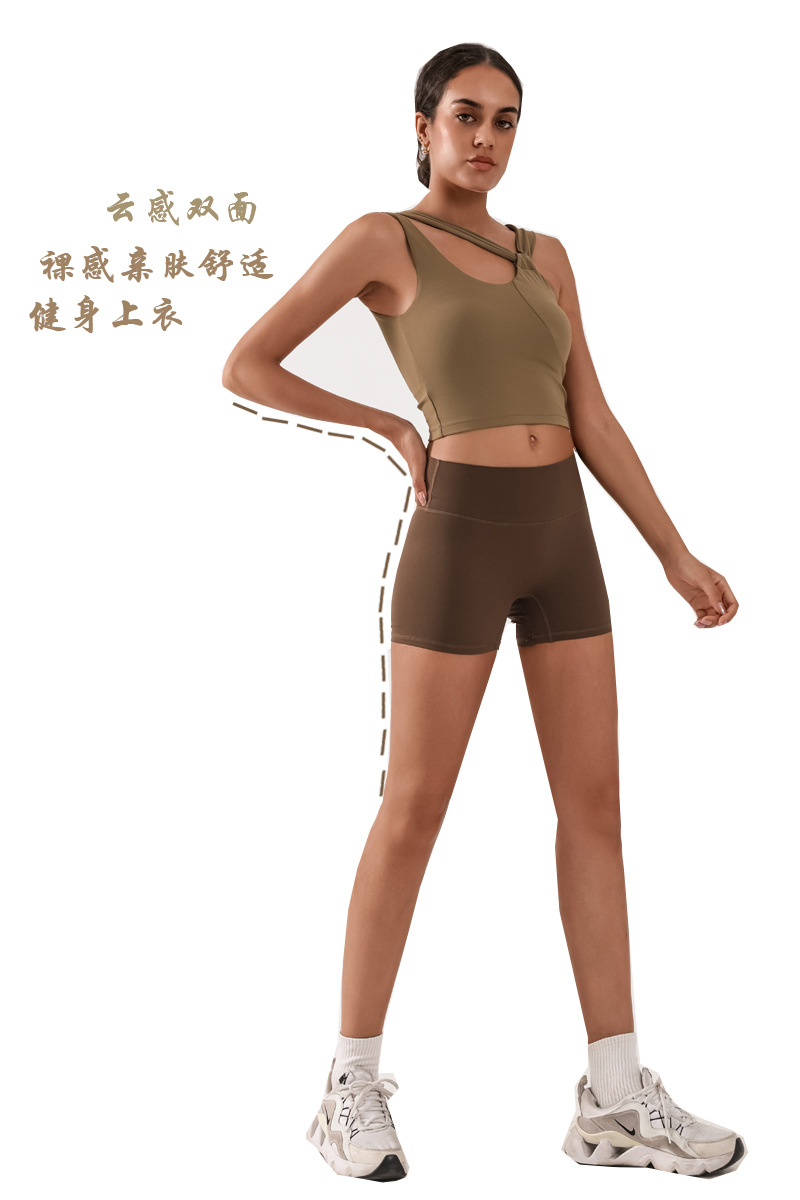 Nuevo chaleco de yoga mujer desnuda sensación de piel deportiva camisa de cintura alta ombligo envuelto pecho camisa de entrenamiento de acondicionamiento físico a prueba de choques