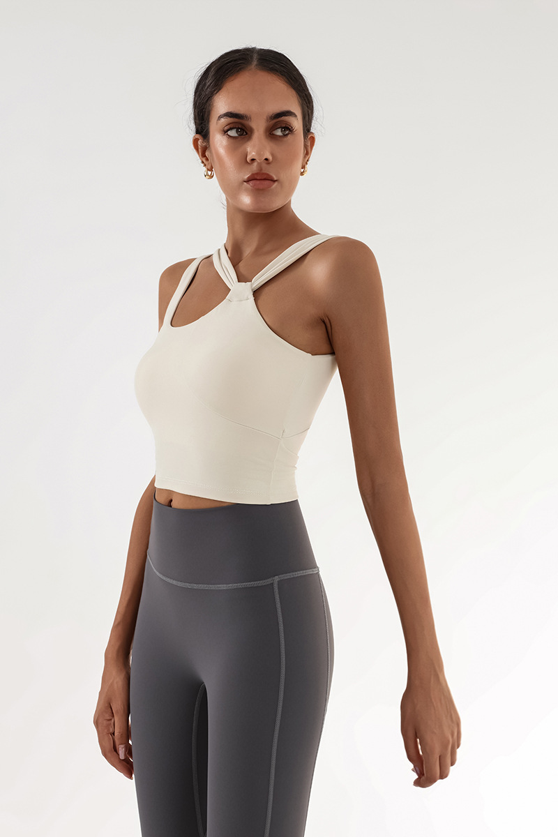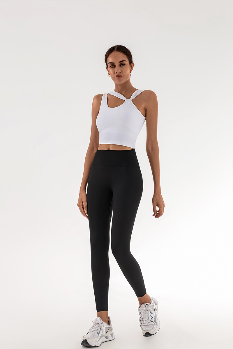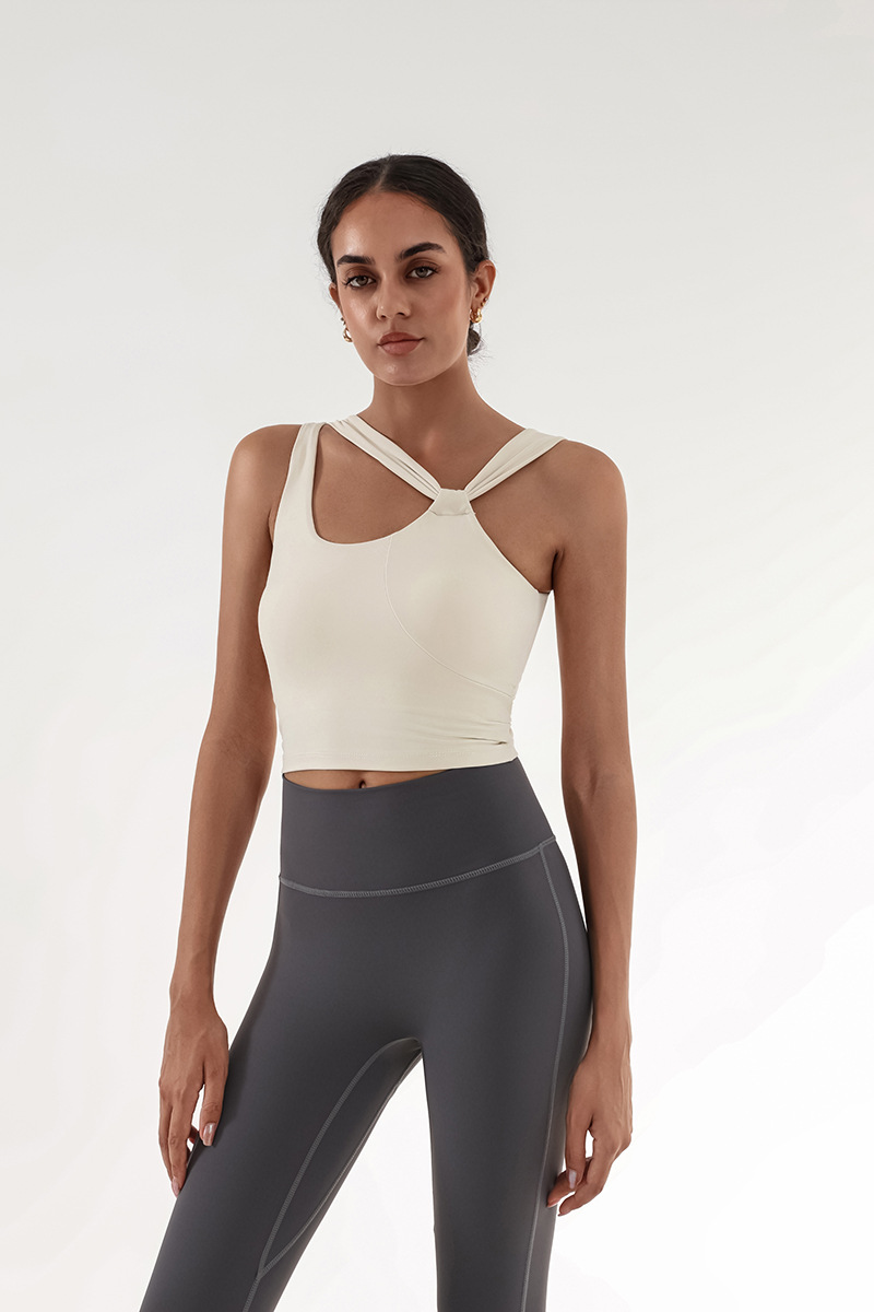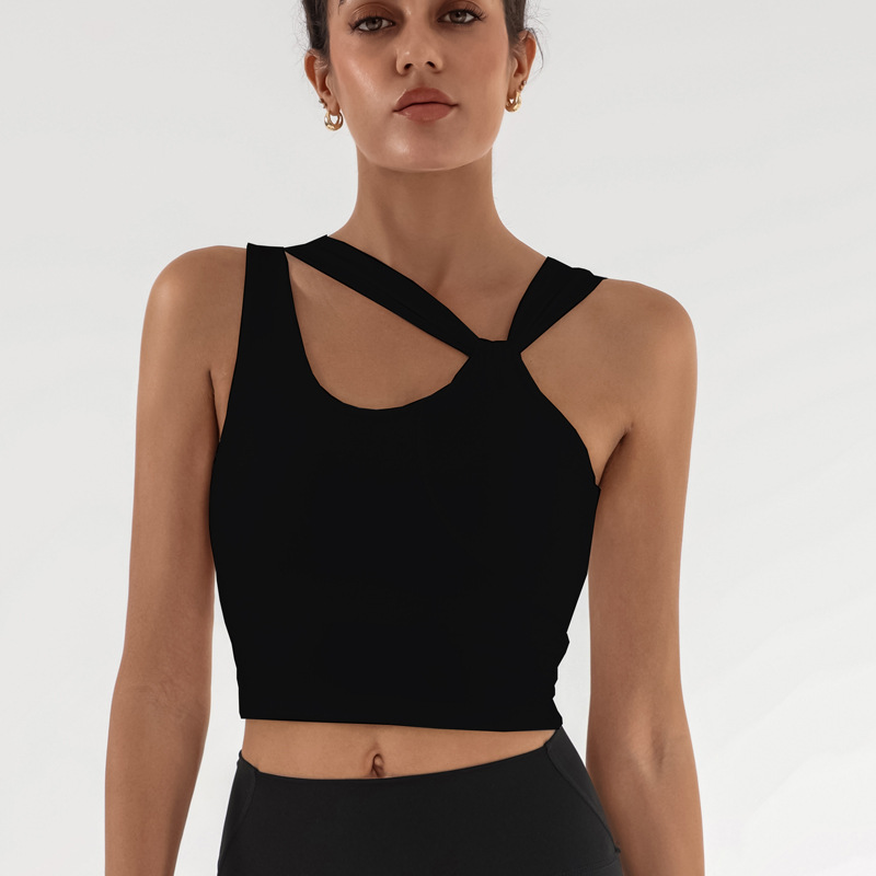 Nuevo chaleco de yoga mujer desnuda sensación de piel deportiva camisa de cintura alta ombligo envuelto pecho camisa de entrenamiento de acondicionamiento físico a prueba de choques