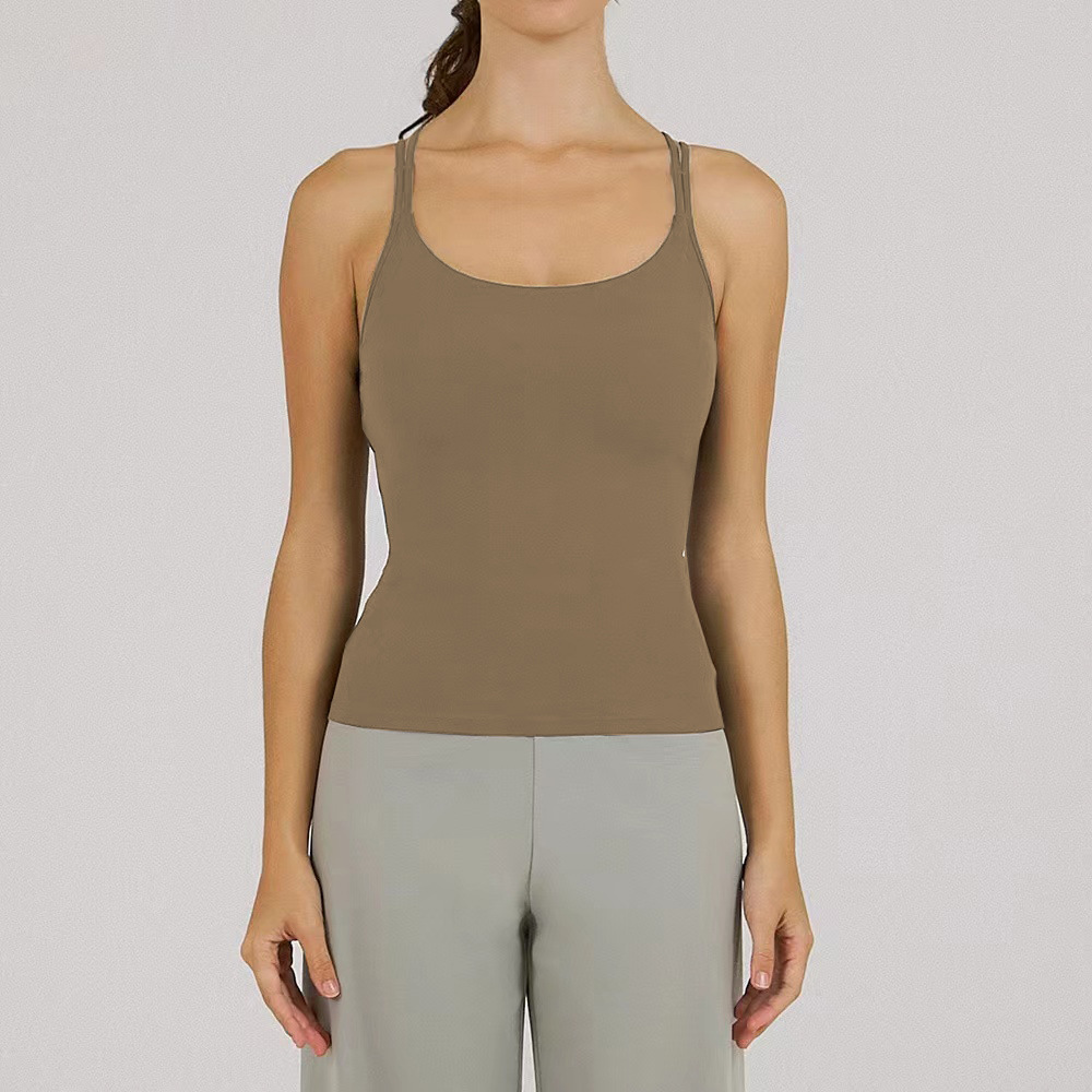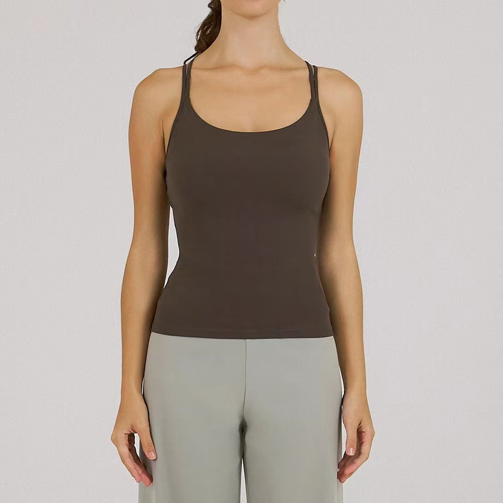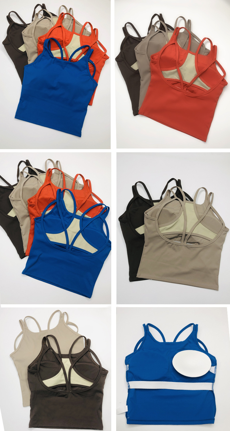 Nuevo chaleco de yoga para mujeres con almohadilla de pecho envuelto en el pecho a prueba de choque alta elástica secado rápido correr entrenamiento de danza camisa de fitness
