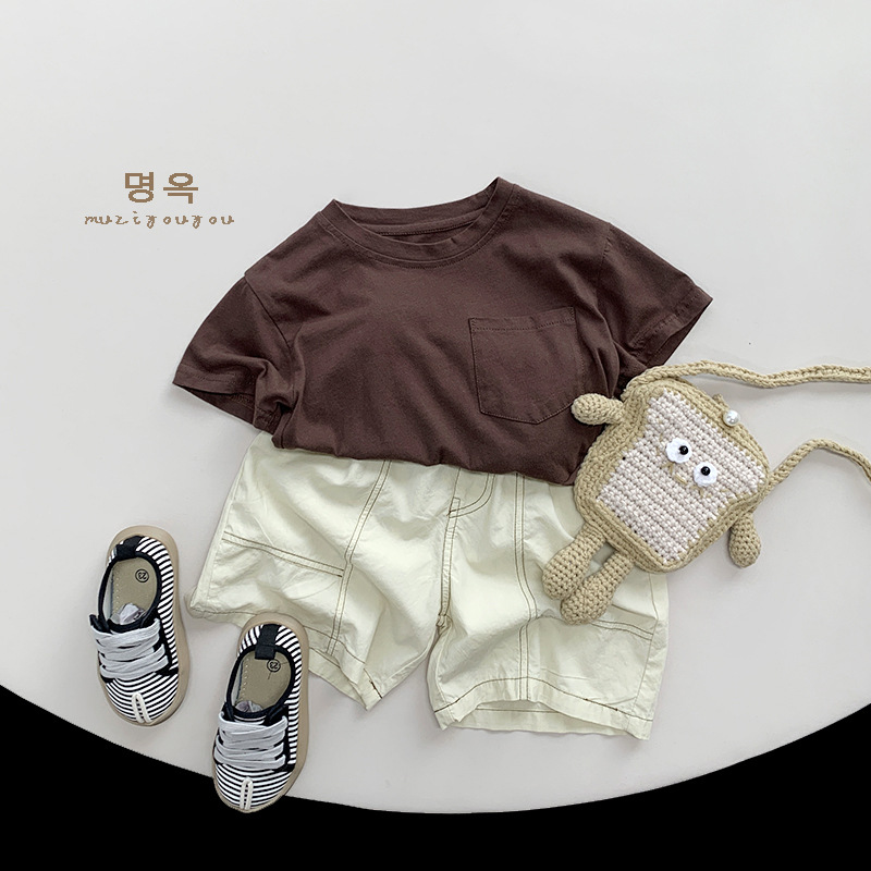 Color básico de todos los partidos ~ Camiseta de algodón de manga corta Camiseta casual simple para niños de verano