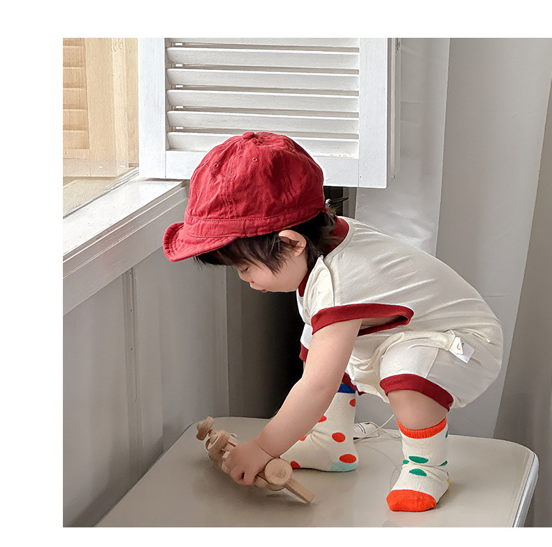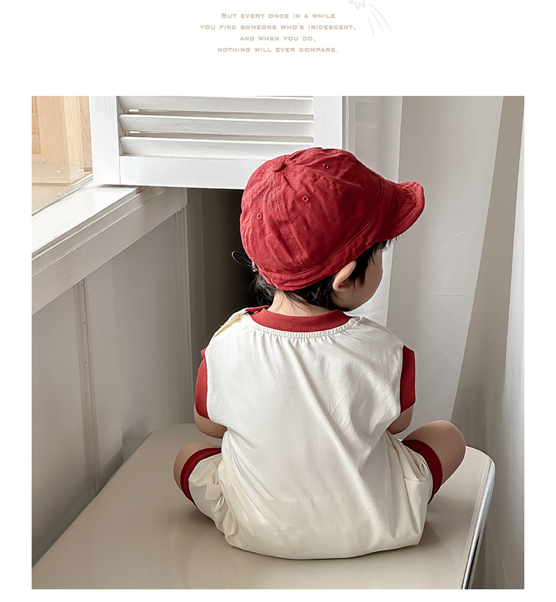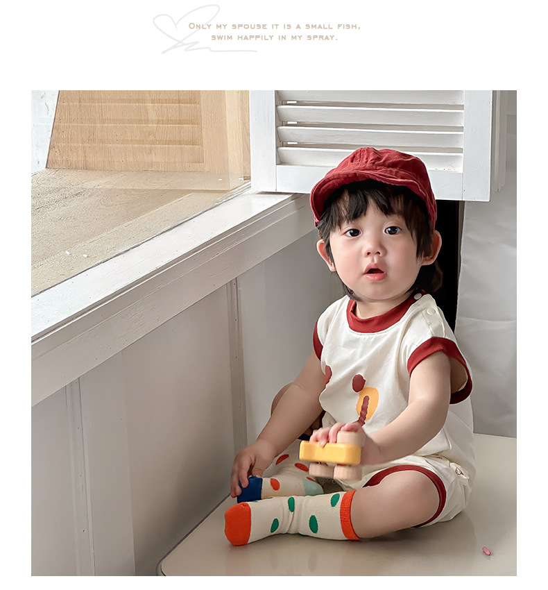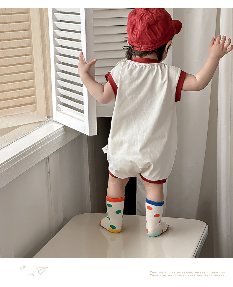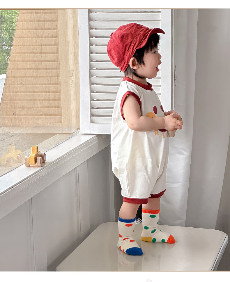 Estilo delgado de verano de estilo coreano, ropa de salida de clase, cara sonriente de dibujos animados, bebé de un año, cuello redondo sin mangas, mono casual