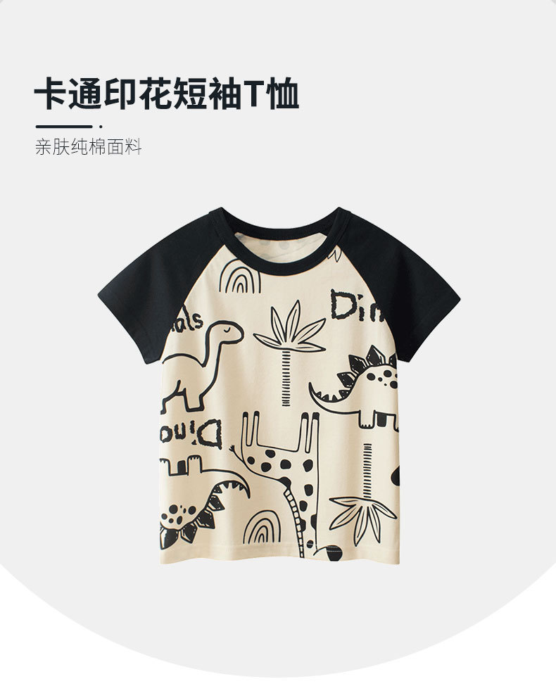 27kids ropa para niños manga corta para niños 2025 verano nueva camiseta de miedo de dibujos animados para niños top raglán fuente de Douyin