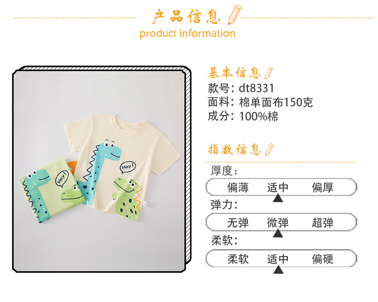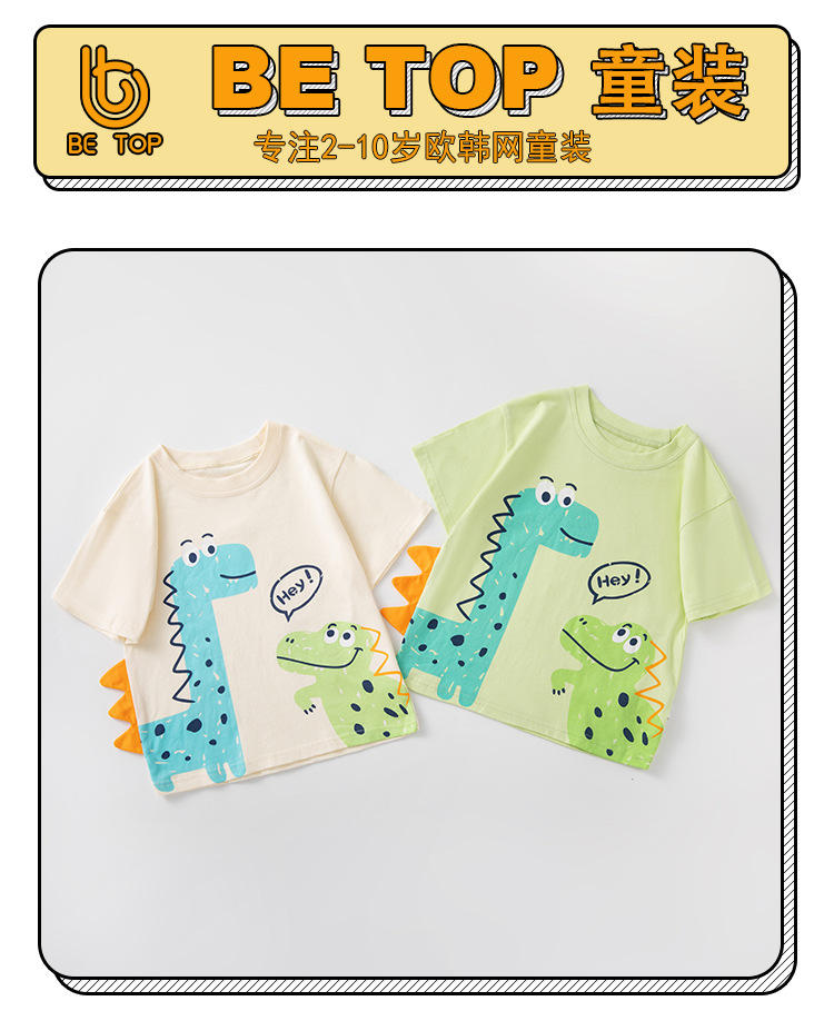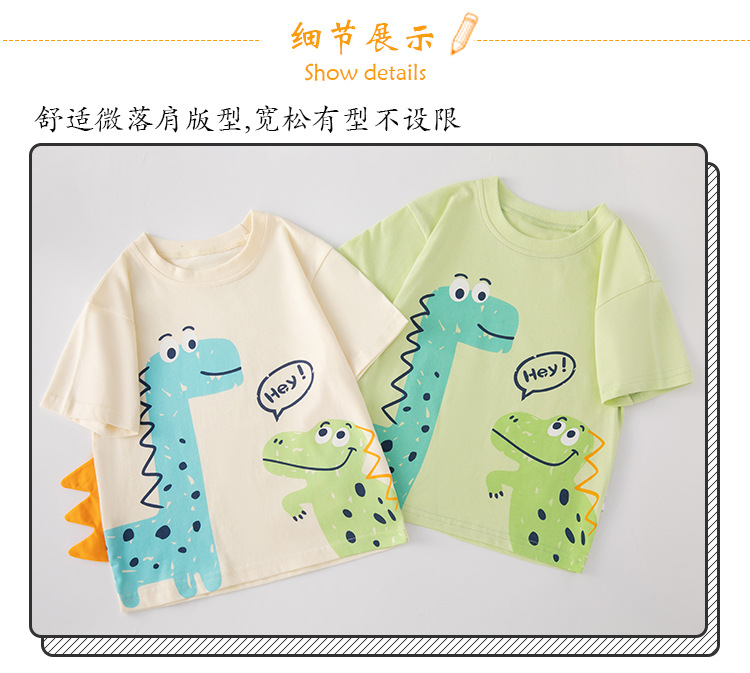 Suministro de marca Ropa para niños transfronteriza al por mayor Verano nuevos productos Camiseta de manga corta para niños Ropa para bebés Dibujos animados Dinosaurios INS