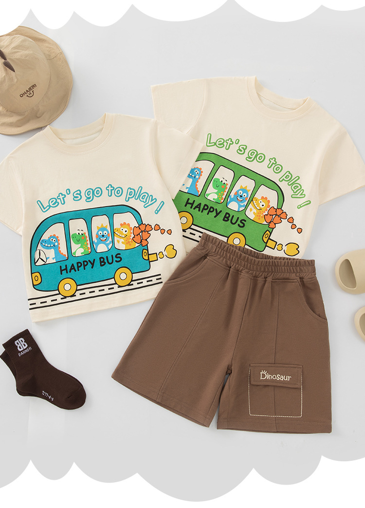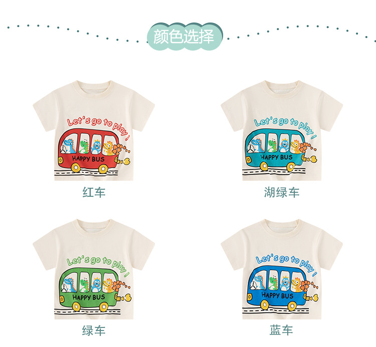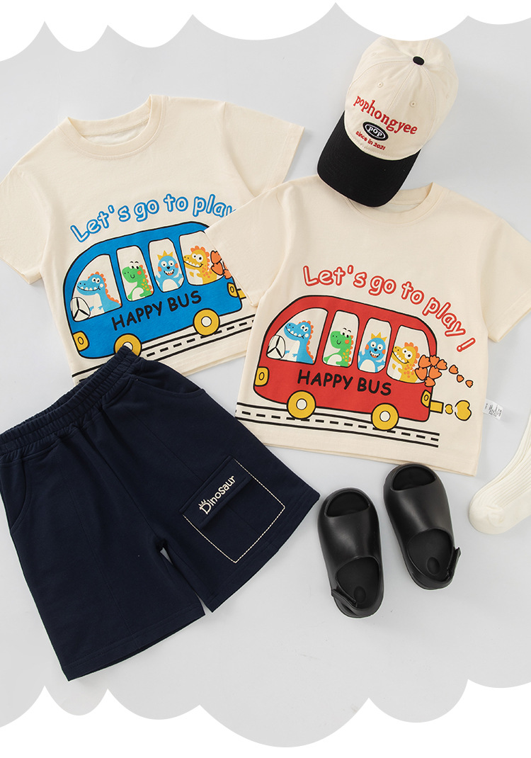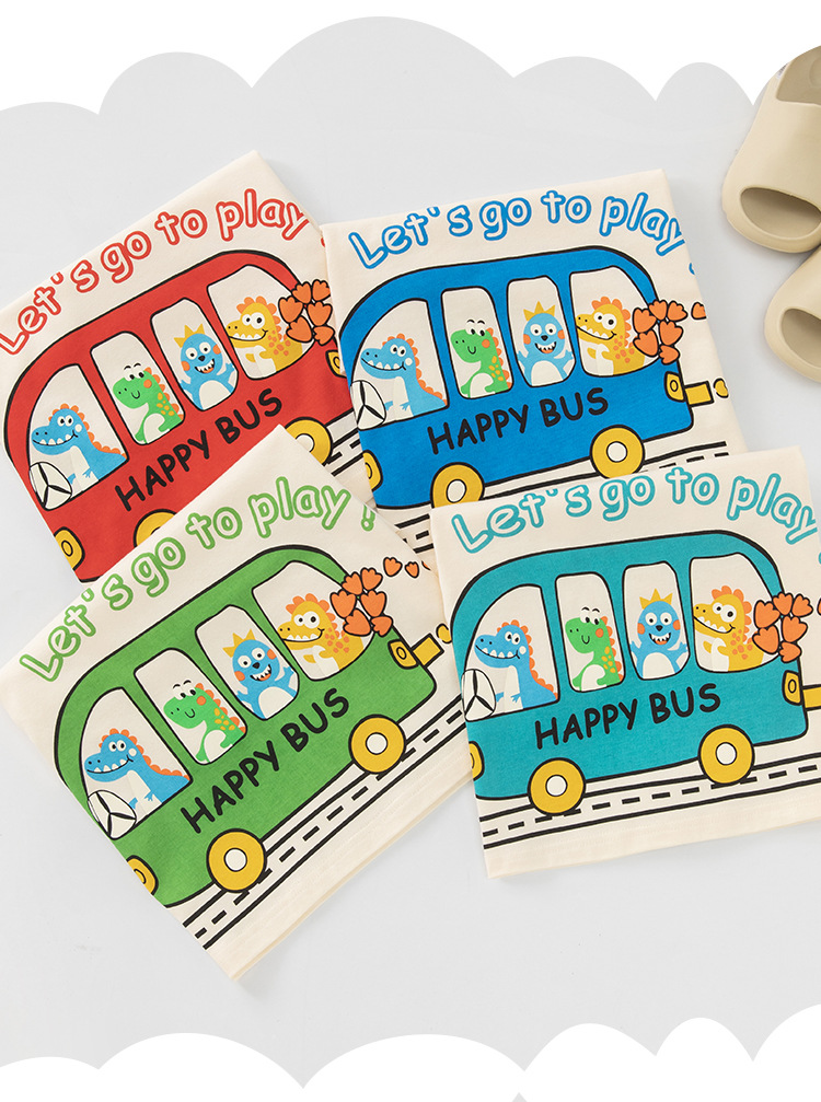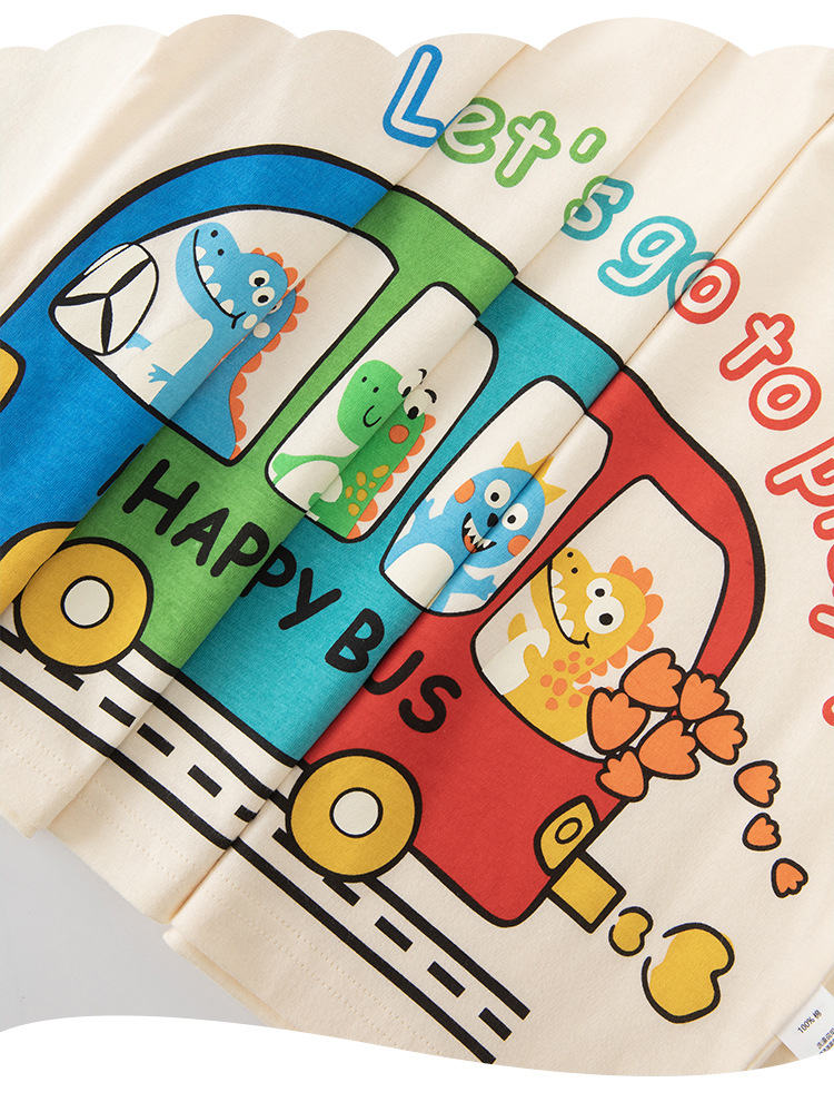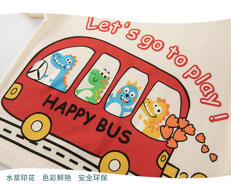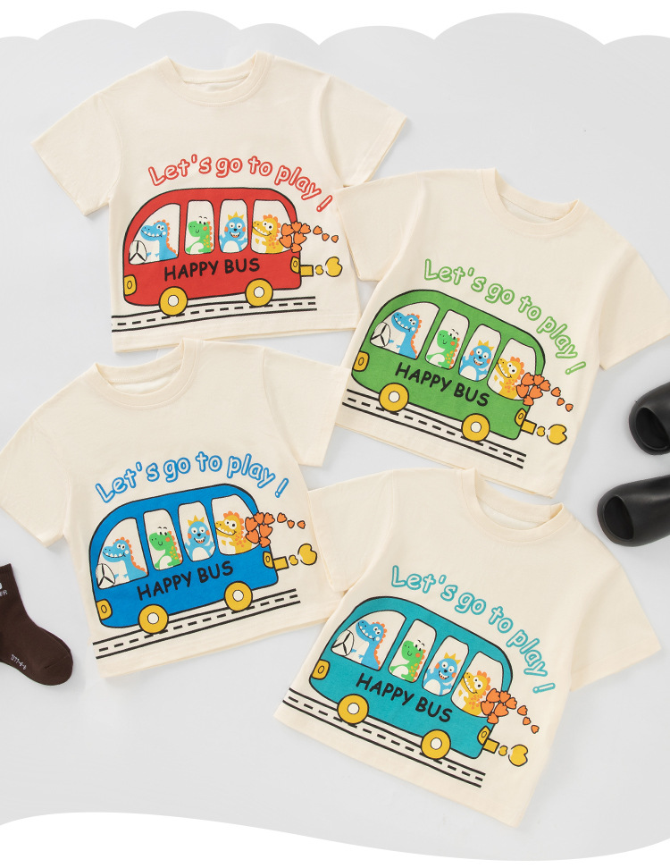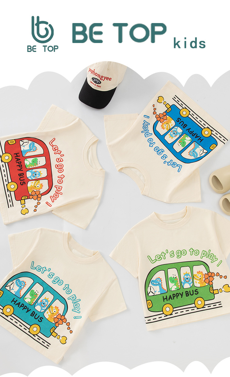 Betop nueva ropa para niños coreanos verano nuevo producto bus dinosaurio para hombres y bebés camiseta de manga corta al por mayor