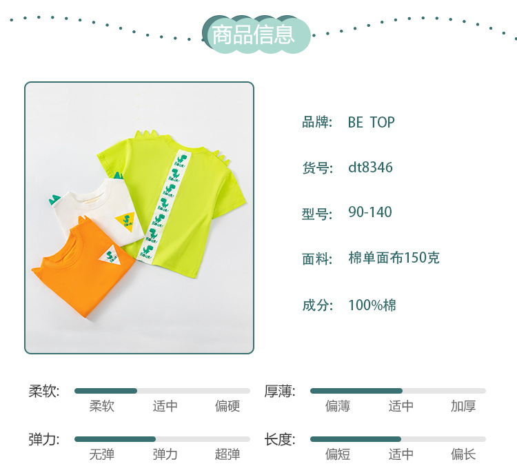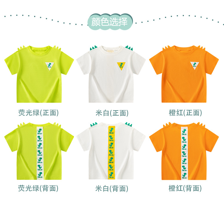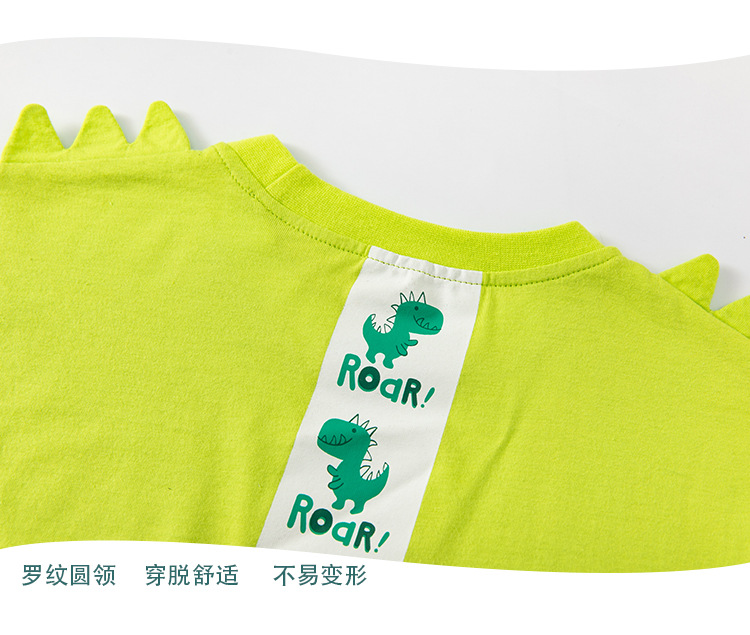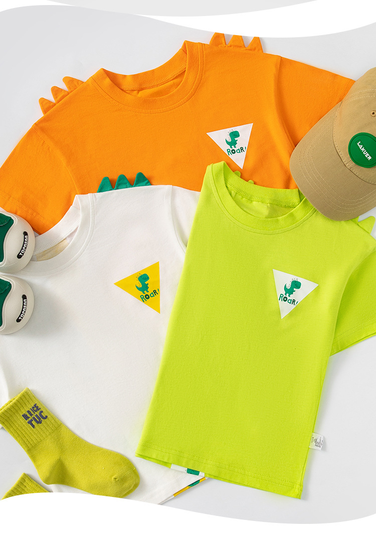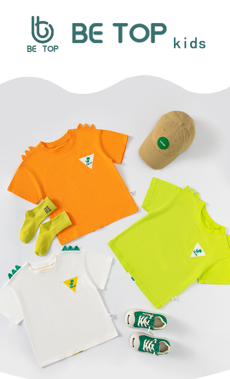 Betop ropa infantil transfronteriza al por mayor verano nuevo estilo niños camiseta de manga corta dibujos animados dinosaurio estampado delantero y trasero manga de hombro caído