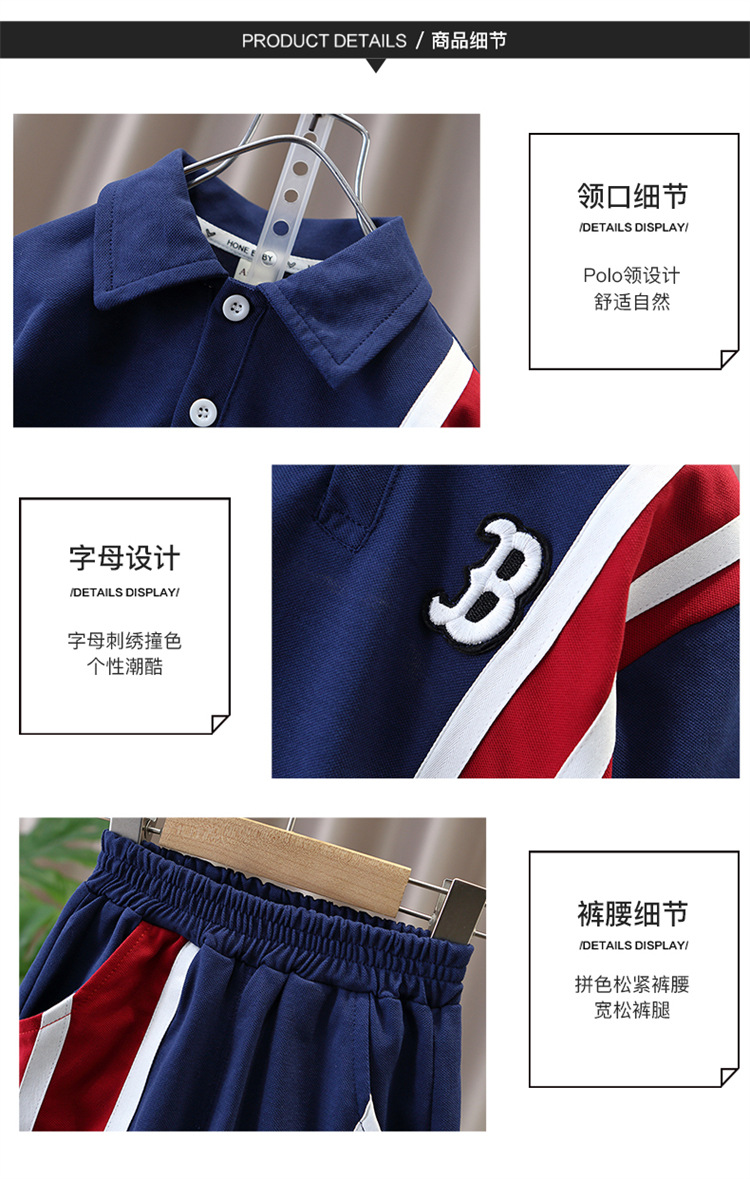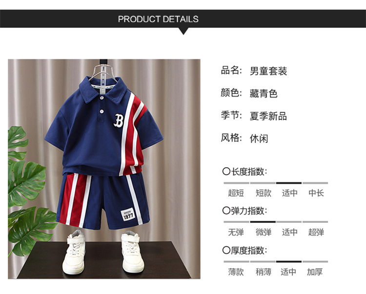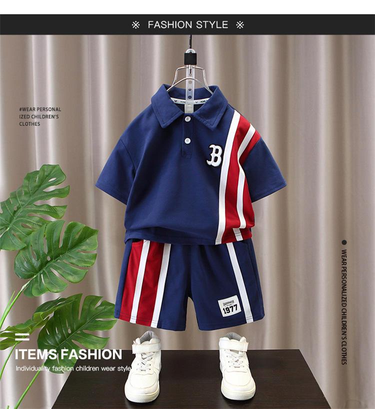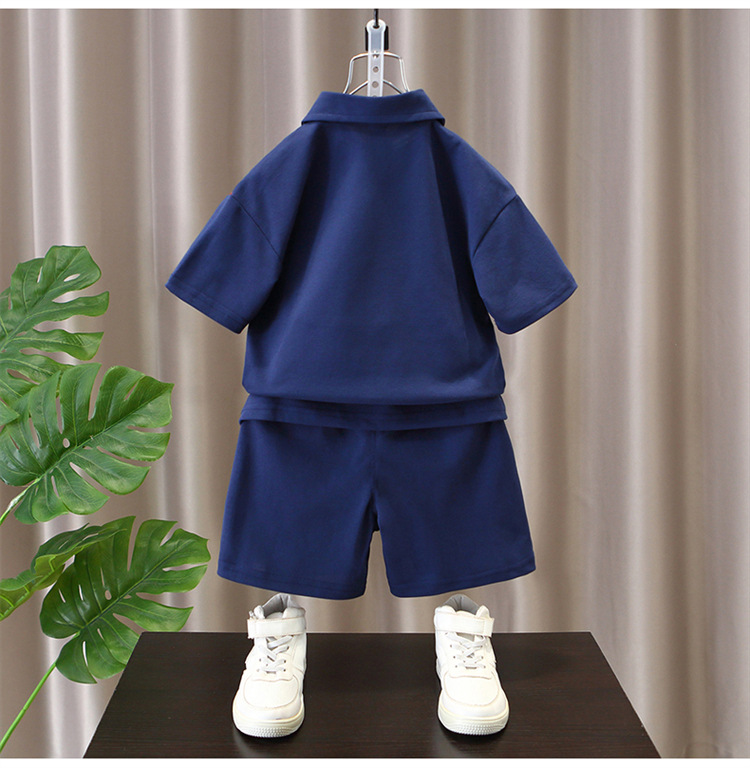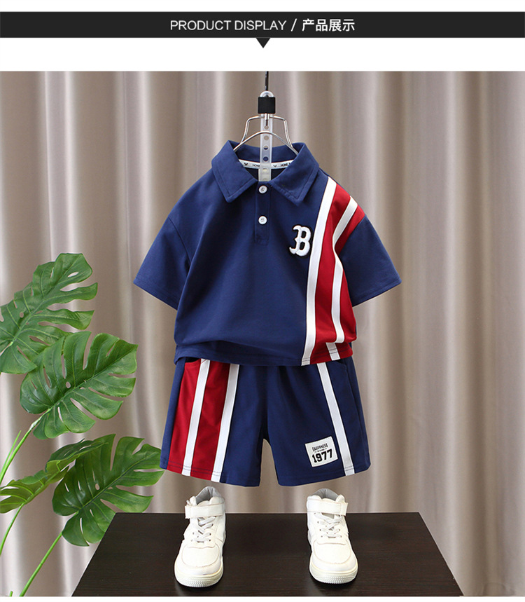 7211 Traje de verano para niños 2025 nueva ropa para niños, ropa delgada, camiseta de manga corta POLO de dos piezas 3