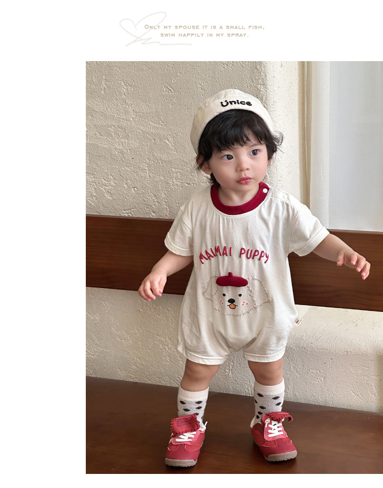 Mono de bebé con estampado de perro lindo 2025 verano nuevo bolso de bebé ligero y agradable para la piel