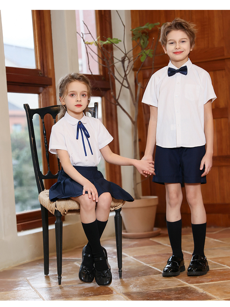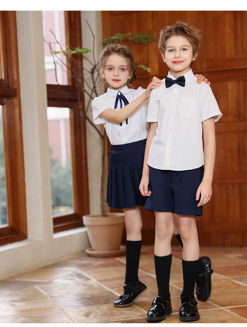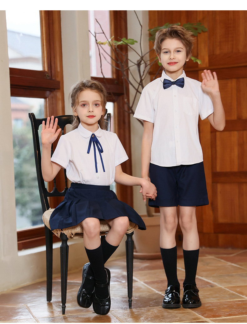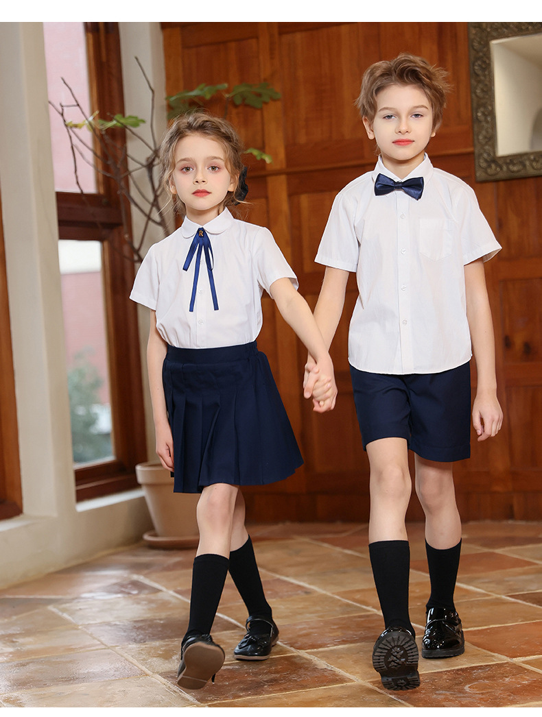Traje de actuación de coro para niños, traje de camisa blanca de manga corta para niños y niñas, uniforme escolar de escuela primaria y secundaria, uniforme de jardín de infantes, uniforme de clase