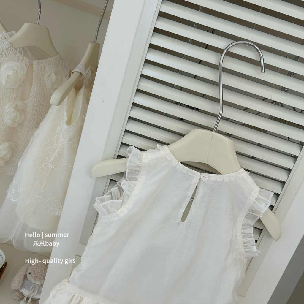 [Le En baby] Chaleco de encaje de temperamento francés de verano para niñas Vestido de princesa con falda de encaje a la luz de la luna blanca dulce