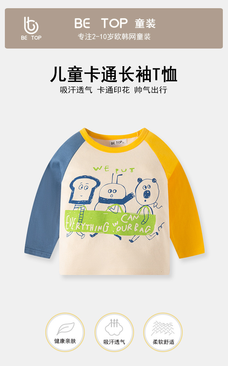Personalizado top ropa para niños camiseta de manga larga algodón primavera y otoño color a juego de dibujos animados versión coreana de la camisa de fondo de estilo occidental