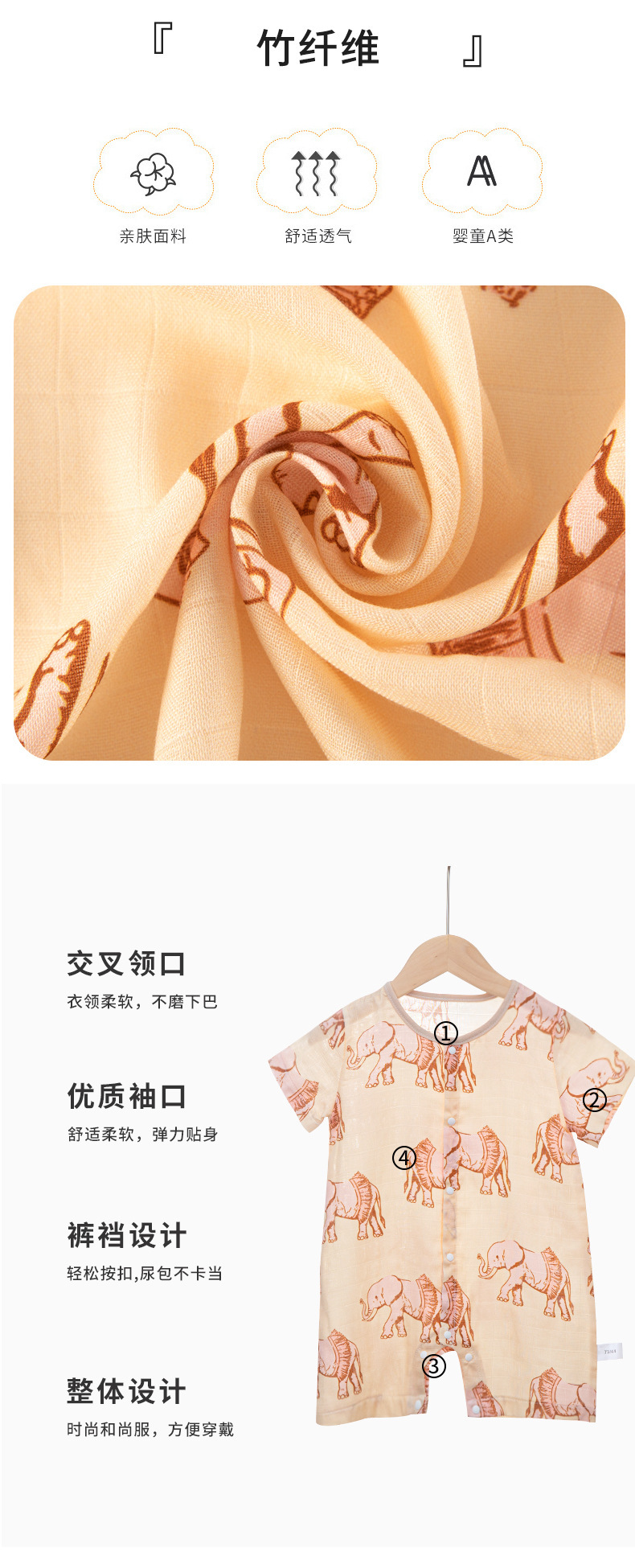 Mono de manga corta delgada para bebé muslin