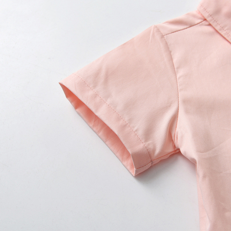 Cárdigan de solapa de manga corta de un solo pecho de verano para niños coreanos, corbata de estilo universitario para niños y niñas, camisa de color caramelo