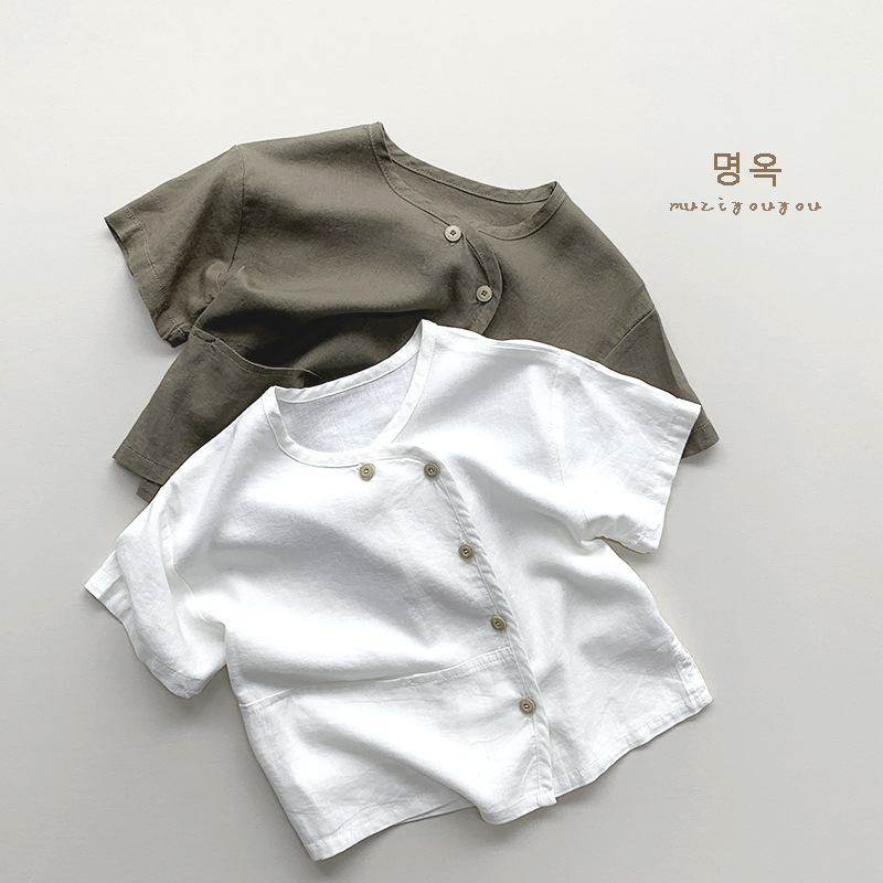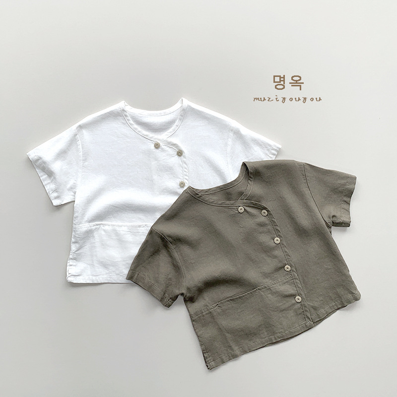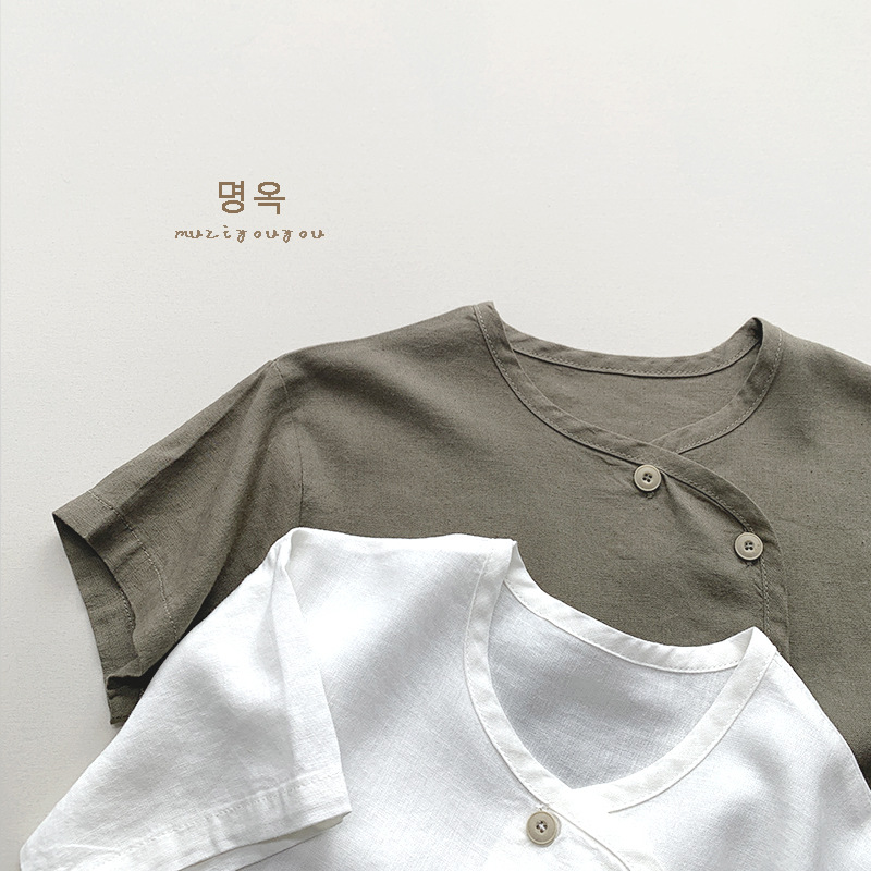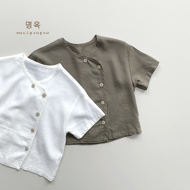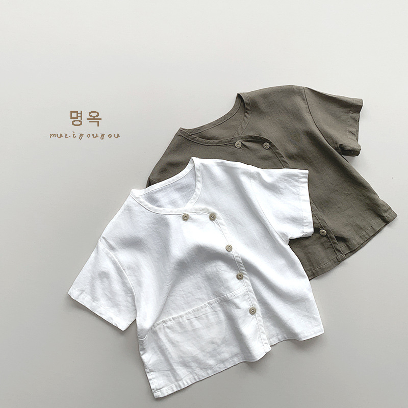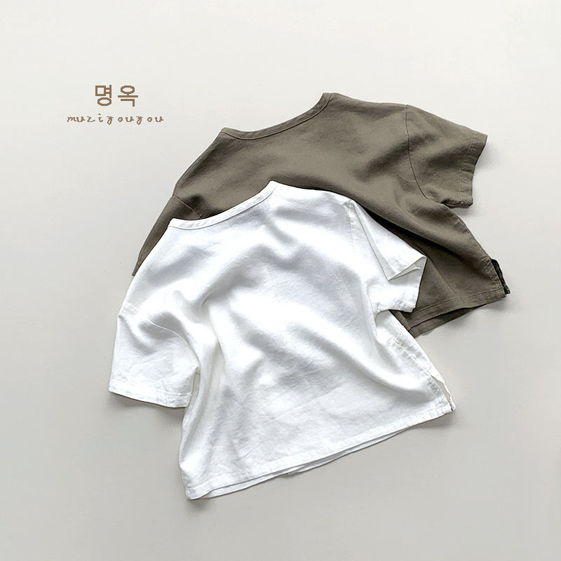 Estilo japonés de algodón y lino ~ Tops para niños y niñas Personalidad para niños Camiseta coreana de manga corta Camiseta pequeña Mori Retro Tendencia Ropa para niños